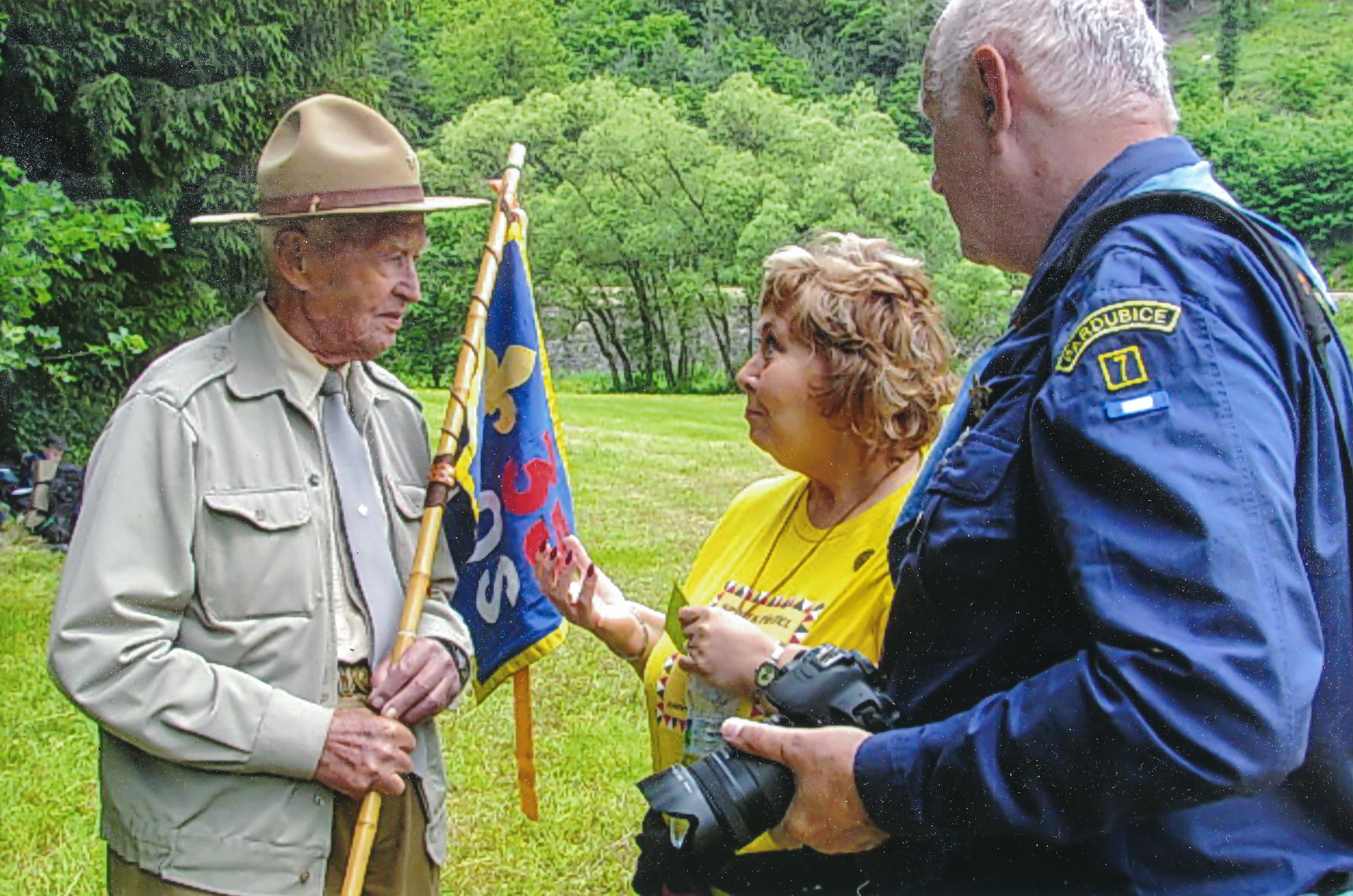 „To byl od nás z Uhříněvsi zájezd. Jen určitý počet lidí pozvali. Měli jsme tam všechno zajištěné. Prezident Beneš už byl tady v Československu, v Praze, a přijel na návštěvu Moravy do Opavy. Tam jsme jako skauti jeli, celý oddíl. Dělali jsme tam zátaras na chodníku a ulici, dělali jsme clonu, aby lidi nemohli proběhnout k němu. Prezident Beneš šel takhle kolem nás a každého pozdravil. A paní Benešová. Tyhle dva jsem krásně viděl a měl jsem čest s nimi promluvit.“