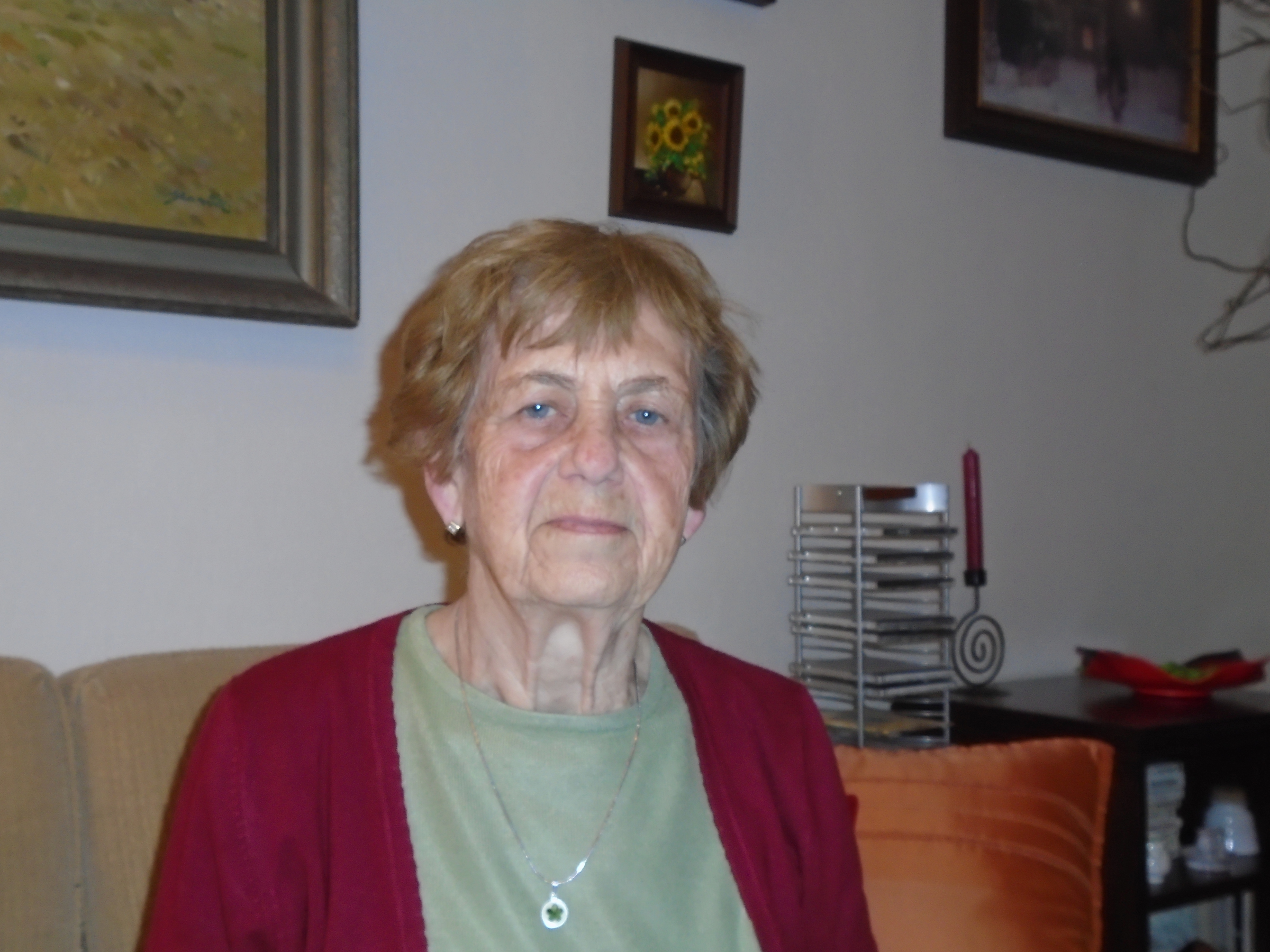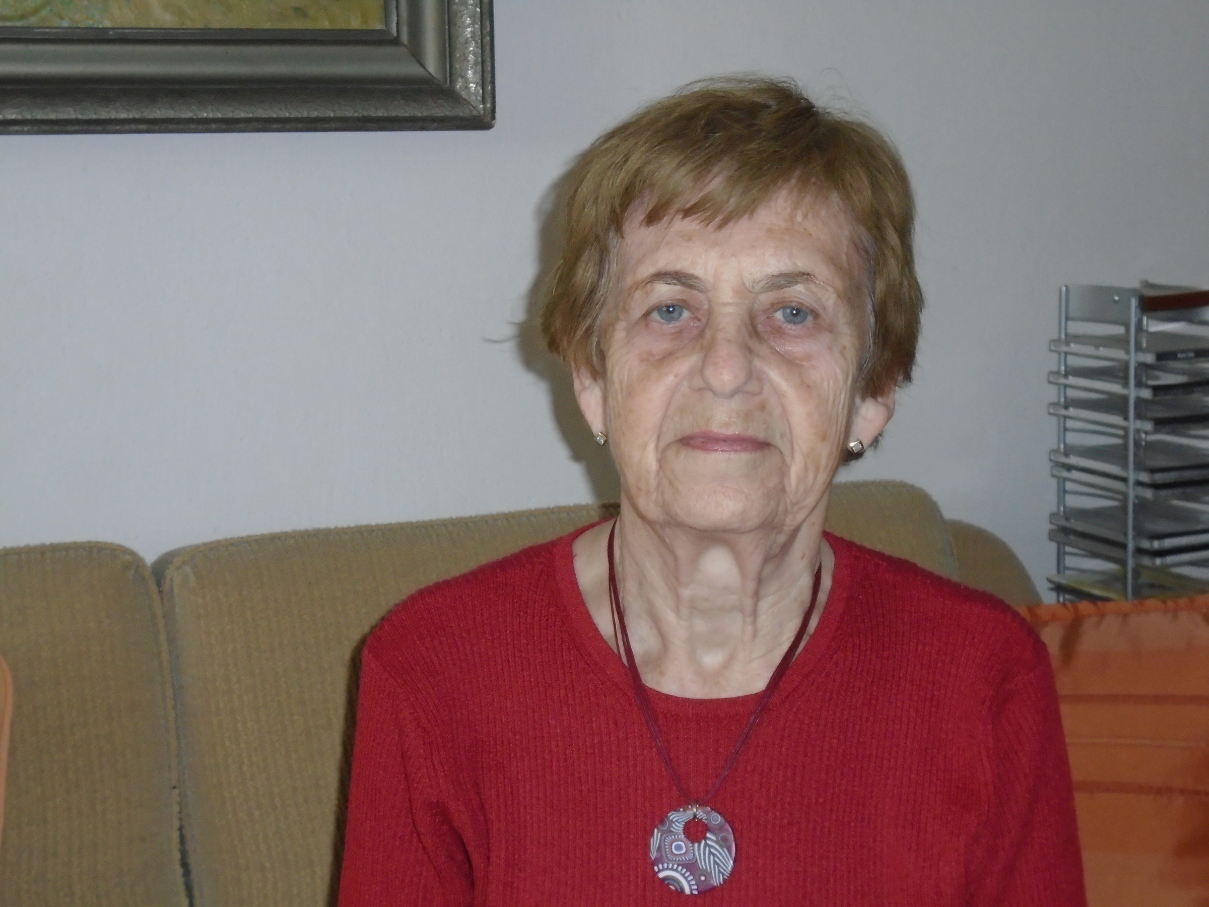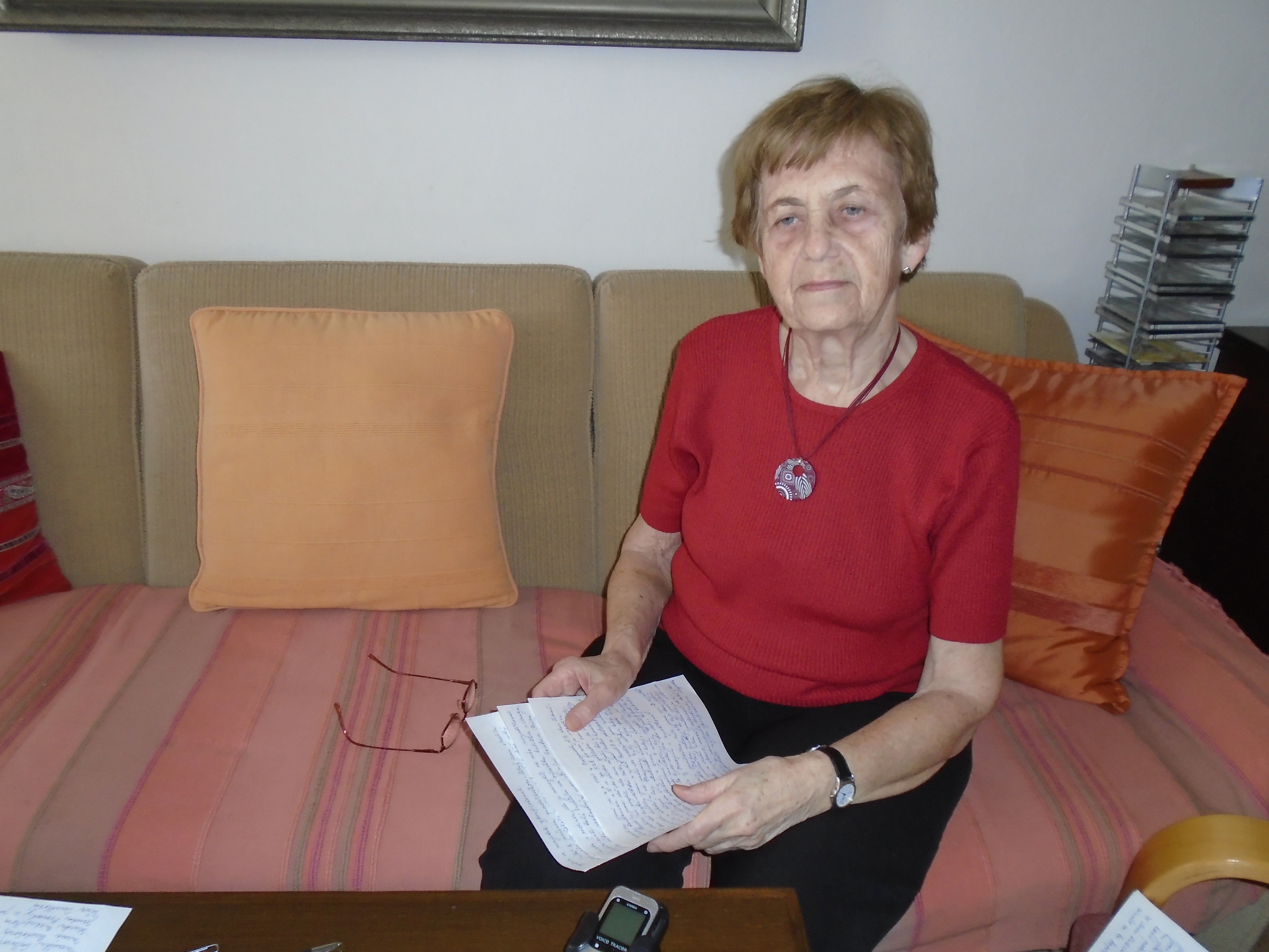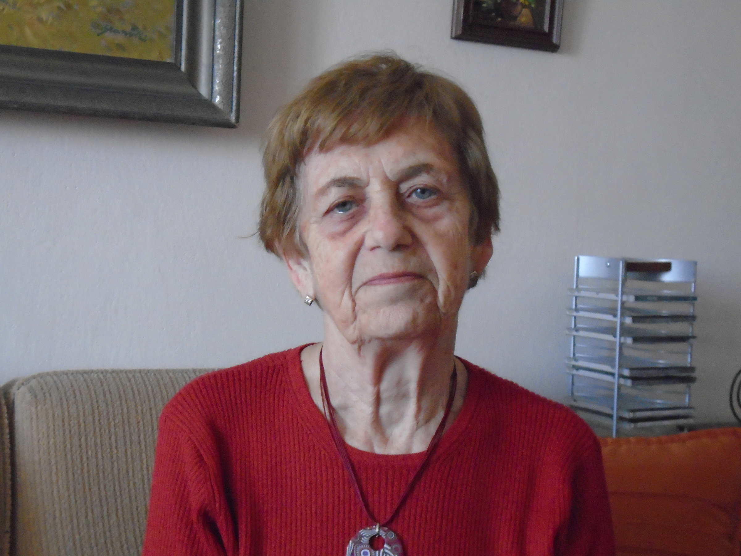 „Potom jsme (s matkou, pozn. ed.) přijely do toho místa, myslím, že to byl Ostrov u Karlových Varů anebo Loket, někde tam to bylo. Přijely jsme a tam byl takový dům, mám zafixováno, že byl dřevěný. Jestli byl celý dřevěný, už nevím. A ten dům, tam byla taková chodba, vpravo byla místnost, kde byl úředník, kde se mu odevzdávaly ty povolenky k návštěvě. Na druhé straně byla taková místnost, která byla odshora dolů přepažena prknem, a tam byly vyřezány (už nevím, kolik jich tam bylo) ve výši obličeje do té přepážky taková okna. Pamatuji si, že za tu stěnu přiváželi ty zavřené. My jsme šly z té strany, kde byl ten bachař a povolenky, a z té chodby jsme tam přišly. Vím, že tam před tím vyříznutým oknem byly takové dřevěné schůdky a ty byly pro děti, aby se dostaly do výše a aby na toho příbuzného (většinou na rodiče), aby na něj viděly.“