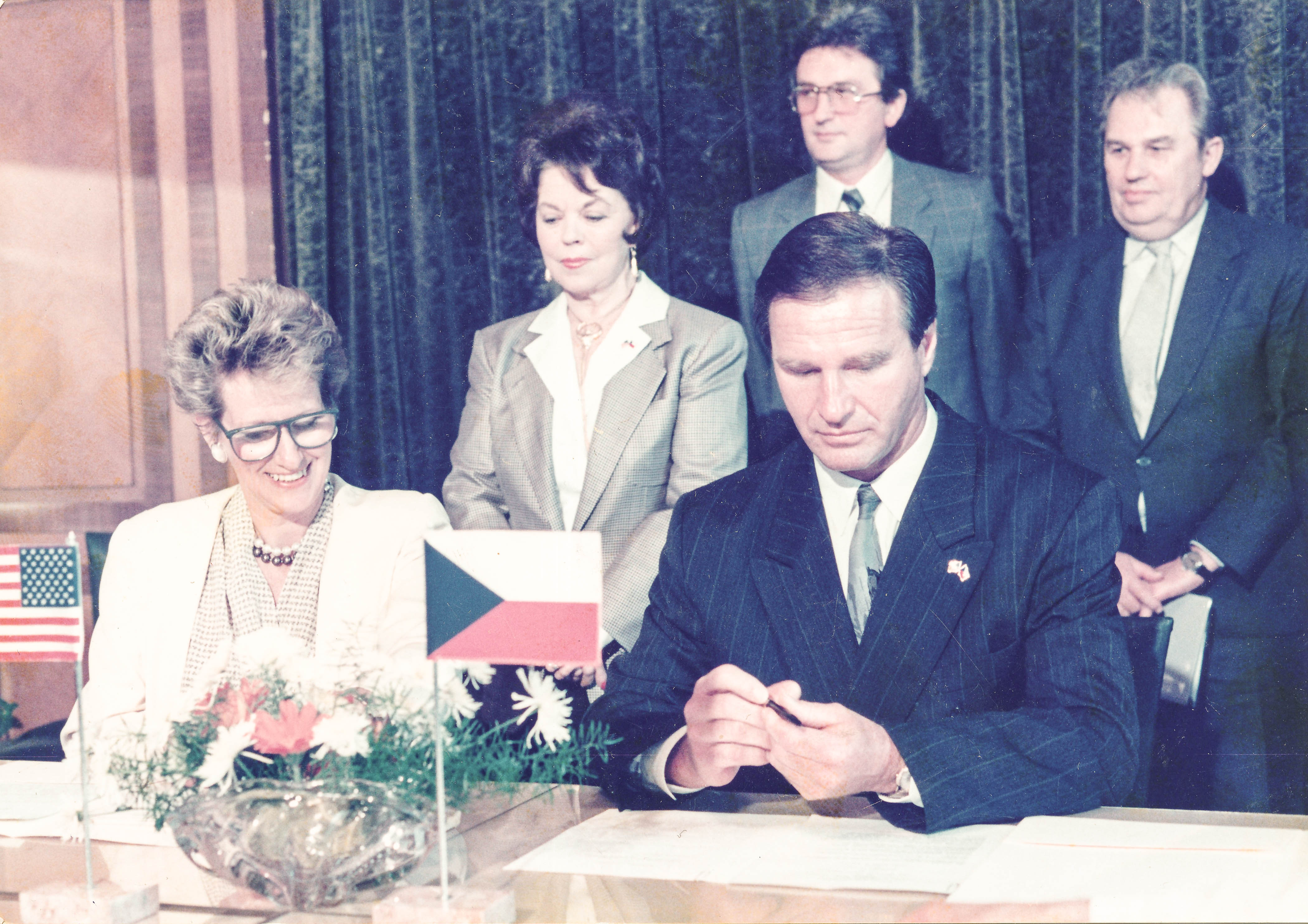 • „Následující den jsem byli pozváni na jednání do Strakovky, kterou vedl premiér Adamec, a proti nám byl Kučera ze strany socialistické, Marián Čalfa, Oskar Krejčí na té druhé straně. Na naší straně Václav Havel, Václav Malý, Michael Kocáb, já a myslím, že ještě někdo. Ta situace byla nejasná. Myslím, že Michael Kocáb, když v té své knize popisuje tyhle děje, nemluví pravdu. Říká, že před každým jednáním jsme měli jasnou představu, co budeme chtít, co budeme dělat. To není pravda. Šli jsme na řadu jednání a vůbec jsme netušili, co se tam bude dít. Měli jsme základní směr, ze kterého nesmíme uhnout, ale nevěděli jsme, s čím přijde druhá strana. Tady na jednání v té Strakovce… Věděli jsme, že Adamec pro sebe bude chtít uhrát nějakou pozici, možná prezidenta. A že by se pokusil navrhnout Václava Havla jako premiéra. Kdo zna Václava Havla, jistě si nedovede představit, že by mohl být premiérem, to bylo absurdní. Přišli jsme na to jednání, bylo to takové otrkávání. Ani jedna strana nechtěla vytáhnout karty. Už to trvalo nějakou chvilku. Pak bylo vidět, že Adamec ztratil nervy. Měl takový brunátnější, masivnější obličej. Zrudnul, bouchnul pěstí do stolu, v ostravském dialektu se obrátil k Václavu Malém a teď to začalo: ,A vám pane Malý, chcu říci, že si ze měnebude nikdo dělat srandu, já su premiérem tochto státu.’ To bylo samozřejmě překvapení. K takové emoci na žádném předcházejícím jednání nedošlo. Já jsem seděl proti němu, vedle Havla. A zase, intuice. Kdy on praštil pěstí do stolu, tak já jsem taky praštil pěstí do stolu a povídám: ,Pane premiérem, musíte pochopit, že tohle je výjimečná situace, ale není potřeba z toho dělat drama.’ Nevím, jestli to bylo přesně takhle řečeno… Načež Adamec řekl, dobře, a žádal pět minut přestávku. Celá ta jeho doprovodná kamarila se zvedla a odešli. Havel do mě strčil, povídá, pojď ven. Vyšli jsme na chodbu, přímo proti dveřím salonku byly dveře na WC. Otevřel je: ,Pojď dovnitř.’ Tehdy bratři Jáklové, kteří nám dělali ochranku, chtěli jít s námi na ten záchod. Havel říkal: ,Jsem tady s kovářem, ten mě cohrání.’ Bylo krásně vidět takový to typický naučený , chování mukla, který ví, že na některé věci si musí dávat pozor. Vtrhl na záchod, zatáhl za splachovadla, roztočil kohoutky a říká: ,Co uděláme?’ Já říkám: ,Já bych to nenatahoval, já bych mu řek, ať podá demisi.’ A Havel na to povídá: ,Víš, jak to řekneš? '