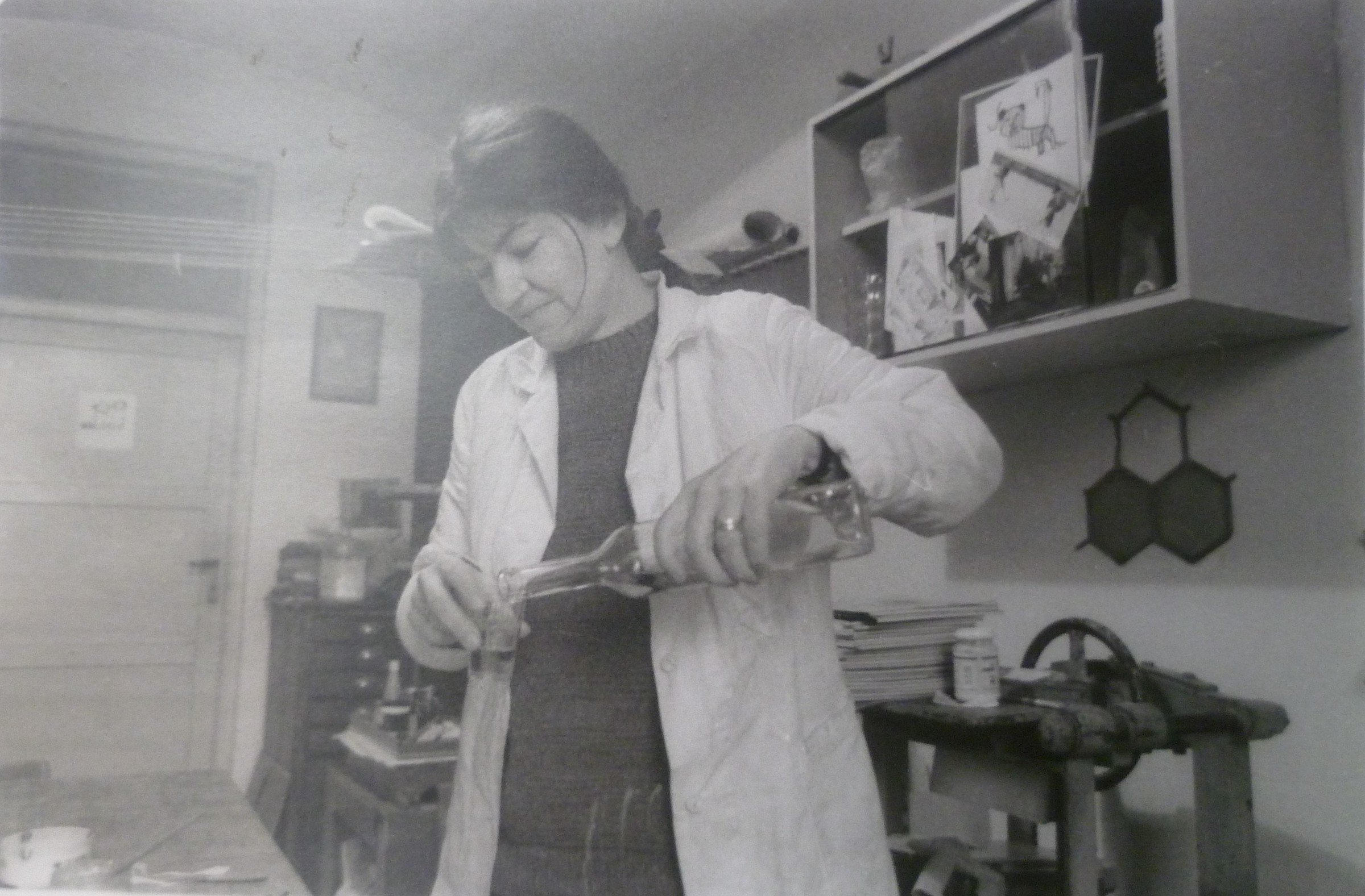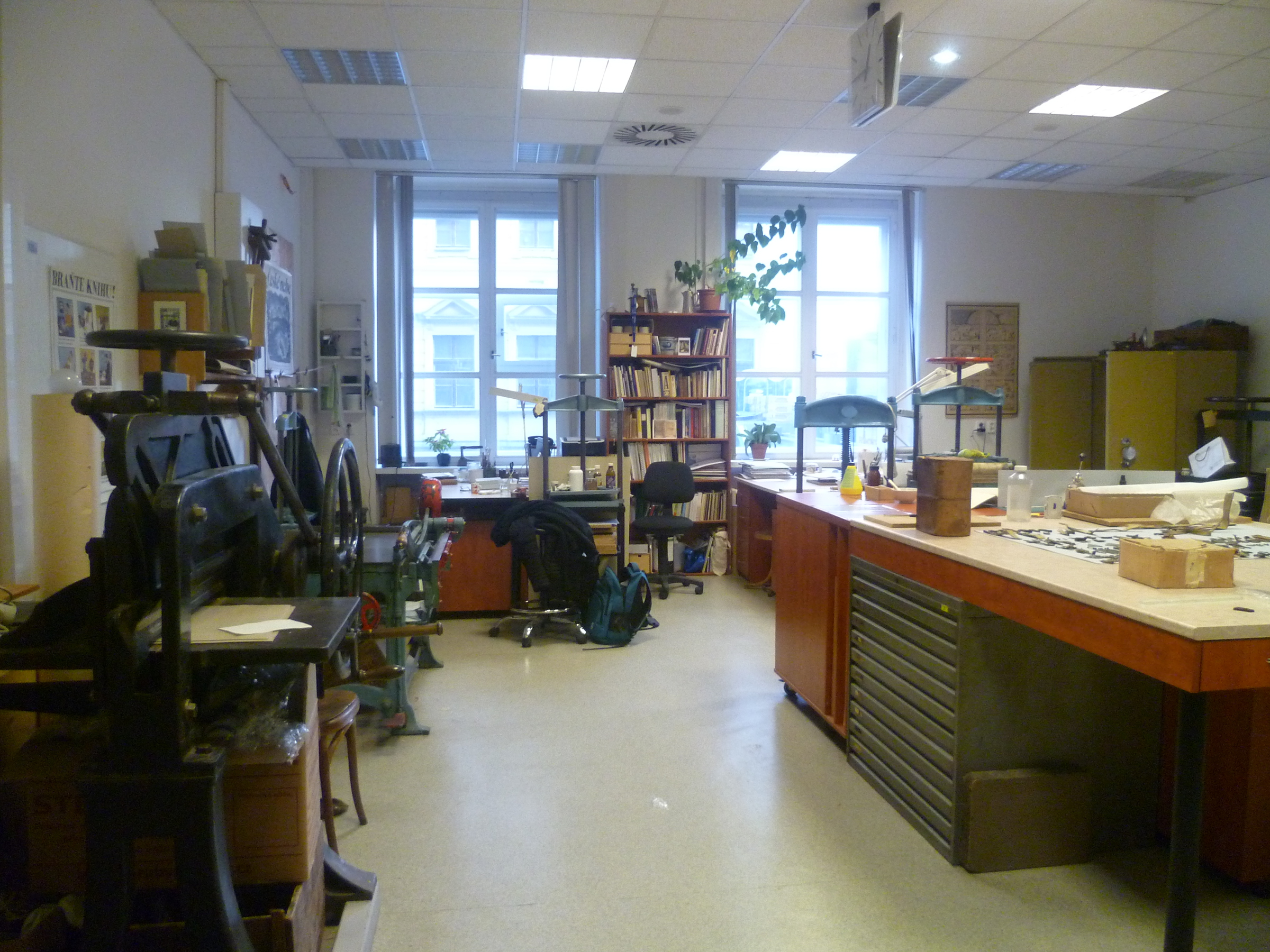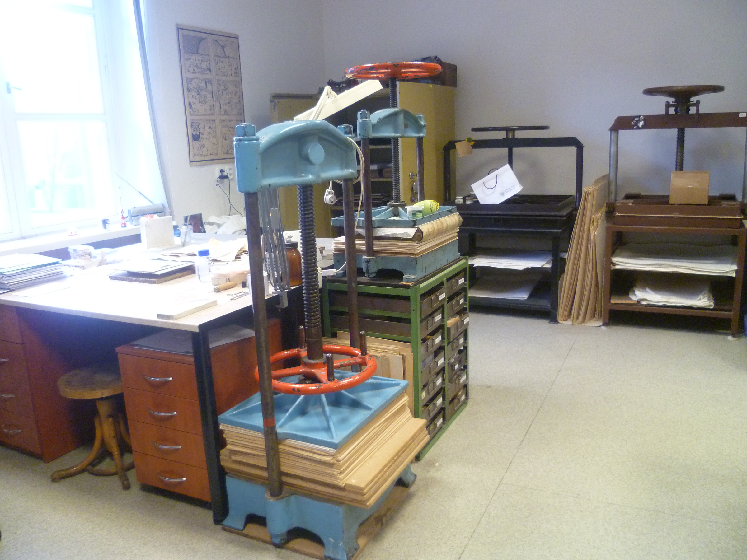 „Pro mě bylo hrozně důležité, abych měla, pokud to bylo na nějaký materiál, který byl v té době docela laciný... Je pravda, že spoustu materiálu jsem odčerpala od Národního muzea, co si budeme namlouvat. Ale nebylo tak nijak moc významné, bála jsem se, bylo to nepříjemné. A pak když jsem zjistila, že se dají přes různé instituce koupit lepenky, plátno, papíry, tak už mě vůbec nepálilo, že by mě mohli nachytat na to, že rozkrádám socialistický majetek. Toho jsem se bála úplně nejvíc, to vím.“ (Takže jste je potom sháněla bokem, ty materiály?) „Ne bokem. Když jsme objednávali pro muzeum plátna nebo papíry, hlavně tedy ty lepenky… Kůže ani ne, protože v tom byl výjimečný ten Binar… A ten mi přinesl takové skopovice, které se nedaly vytenčit, bylo to strašné... Já mám dokonce pocit, že jednu takovou knížku mám někde doma. Že mi jednu, protože jsem za to nic nechtěla, nechal. Ale nejsem si jistá, to se musím zeptat ještě té kolegyně, která ho taky znala, to jsme dělaly dokonce myslím spolu… Takže když jsme objednávali přes ty Ospapy a tak – protože jsme to vyřizovali my, jako lidi z dílny, tak jsem se vždycky ptala, jestli mají nějaký odpadový materiál nebo jestli si můžu já jako soukromník něco objednat. To bylo hrozně důležité. Oni mi vždycky říkali: Celou paletu. A paleta je třeba sto padesát lepenek, a vy jste potřebovala deset, že jo. Takže se tam dalo vždycky něco domluvit nebo dohodnout. A na to jsem se strašně upnula... protože jsem nechtěla, kdyby… i když oni mohli samozřejmě všechno, možná, nebo určitě. Ale vždycky jsem pro své vlastní svědomí chtěla mít tohle v pořádku. Tehdy ta lepenka stála snad tři koruny, to byla sranda."