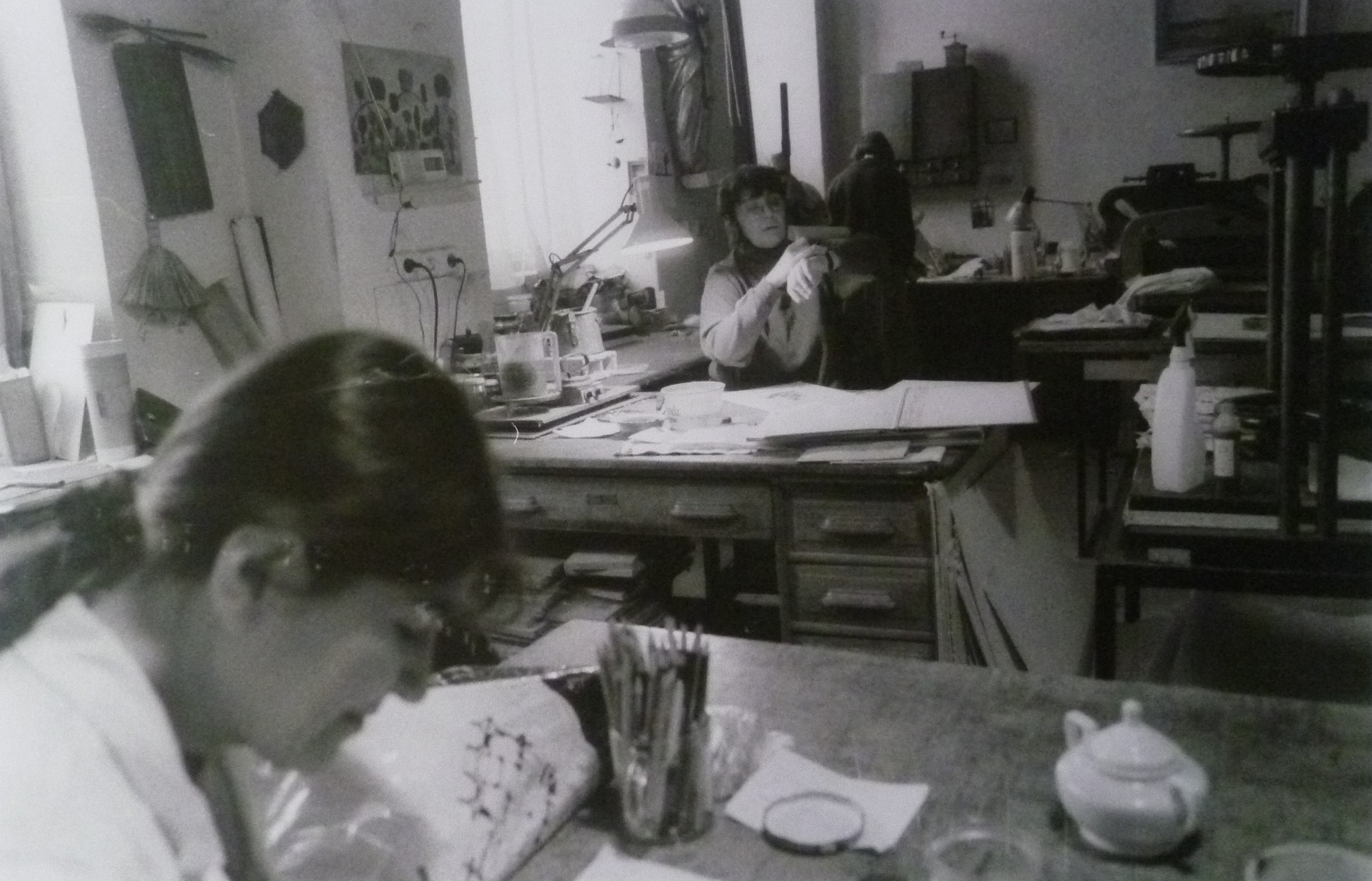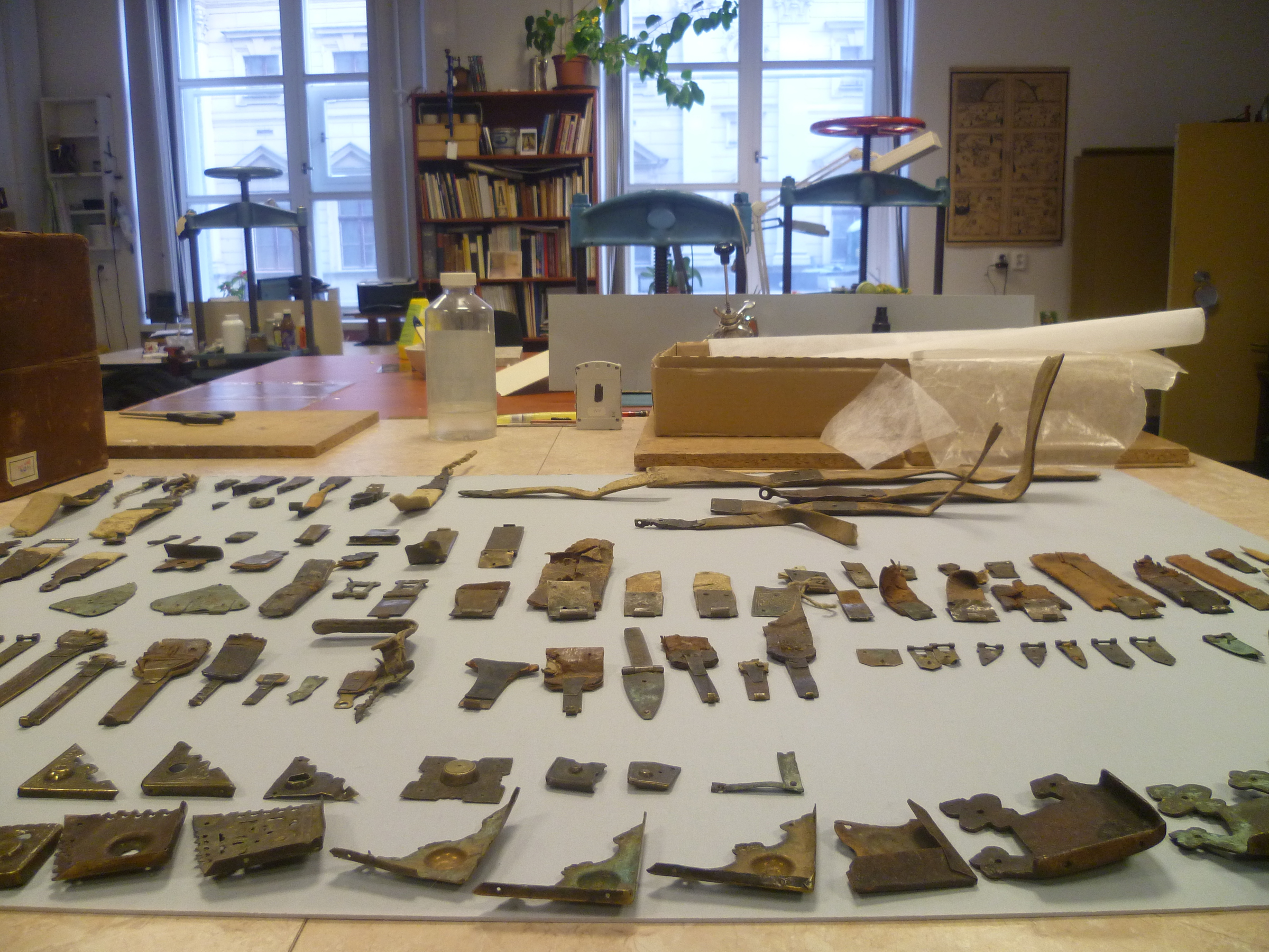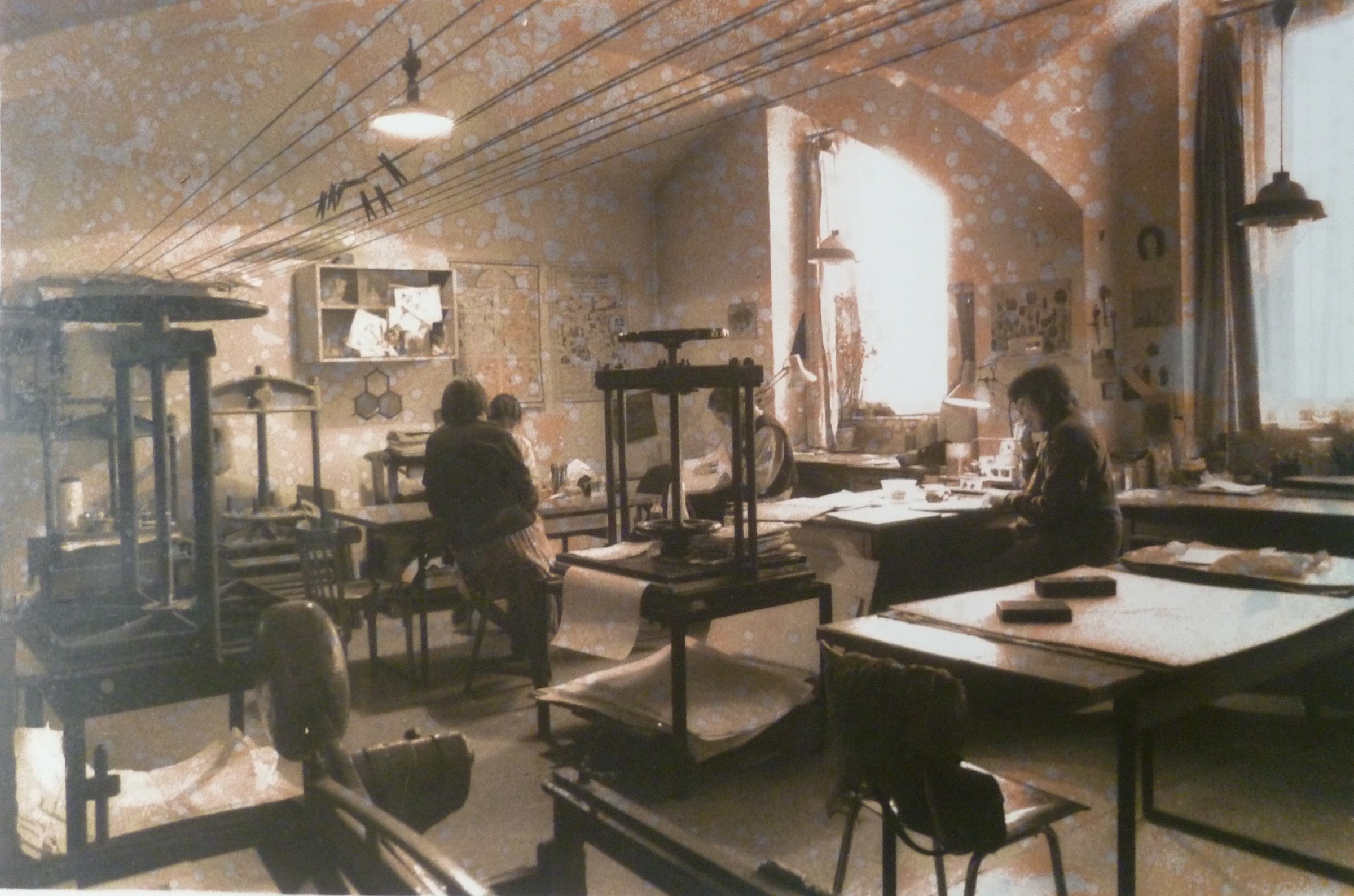 „Pro mě bylo hrozně důležité, abych měla, pokud to bylo na nějaký materiál, který byl v té době docela laciný... Je pravda, že spoustu materiálu jsem odčerpala od Národního muzea, co si budeme namlouvat. Ale nebylo tak nijak moc významné, bála jsem se, bylo to nepříjemné. A pak když jsem zjistila, že se dají přes různé instituce koupit lepenky, plátno, papíry, tak už mě vůbec nepálilo, že by mě mohli nachytat na to, že rozkrádám socialistický majetek. Toho jsem se bála úplně nejvíc, to vím.“ (Takže jste je potom sháněla bokem, ty materiály?) „Ne bokem. Když jsme objednávali pro muzeum plátna nebo papíry, hlavně tedy ty lepenky… Kůže ani ne, protože v tom byl výjimečný ten Binar… A ten mi přinesl takové skopovice, které se nedaly vytenčit, bylo to strašné... Já mám dokonce pocit, že jednu takovou knížku mám někde doma. Že mi jednu, protože jsem za to nic nechtěla, nechal. Ale nejsem si jistá, to se musím zeptat ještě té kolegyně, která ho taky znala, to jsme dělaly dokonce myslím spolu… Takže když jsme objednávali přes ty Ospapy a tak – protože jsme to vyřizovali my, jako lidi z dílny, tak jsem se vždycky ptala, jestli mají nějaký odpadový materiál nebo jestli si můžu já jako soukromník něco objednat. To bylo hrozně důležité. Oni mi vždycky říkali: Celou paletu. A paleta je třeba sto padesát lepenek, a vy jste potřebovala deset, že jo. Takže se tam dalo vždycky něco domluvit nebo dohodnout. A na to jsem se strašně upnula... protože jsem nechtěla, kdyby… i když oni mohli samozřejmě všechno, možná, nebo určitě. Ale vždycky jsem pro své vlastní svědomí chtěla mít tohle v pořádku. Tehdy ta lepenka stála snad tři koruny, to byla sranda."