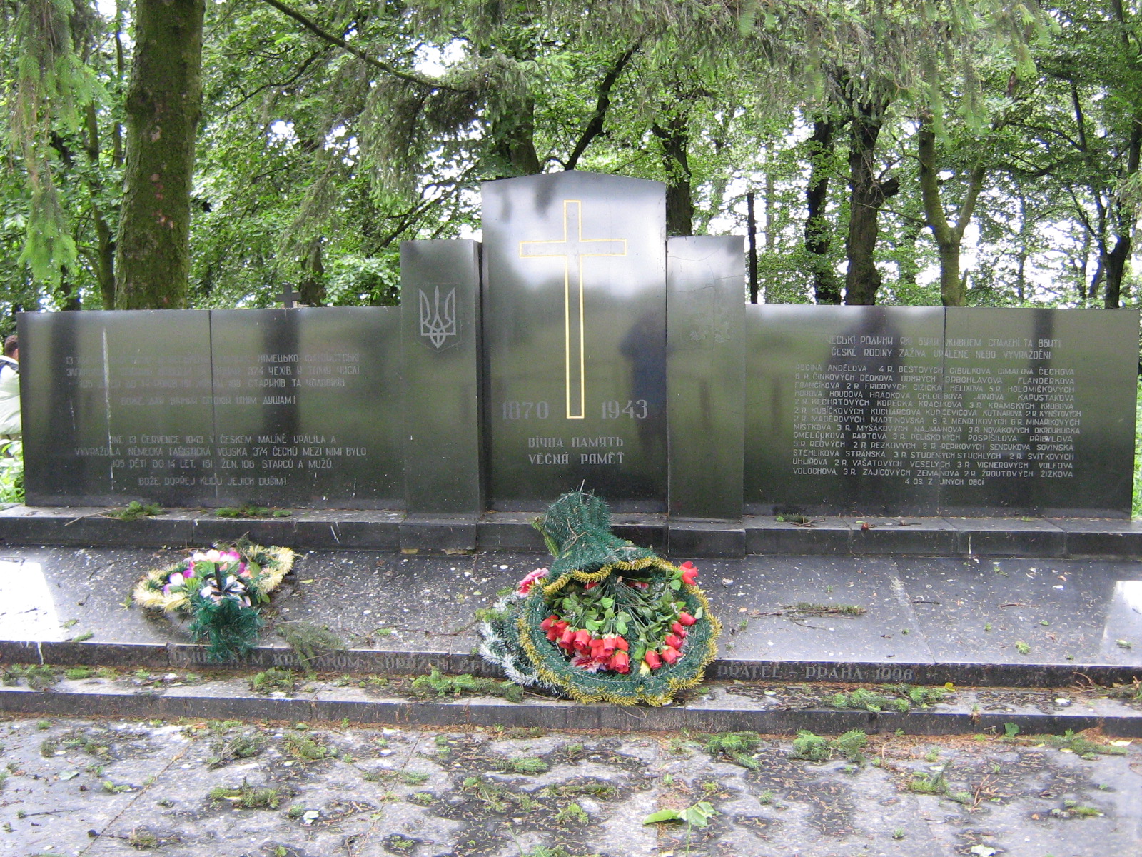 „Nic neprovedli. Odevzdávali dodávky, jaké se tehdy odevzdávat měly. Nějaké obilí, nějaká drůbež a tak dále. Takže vyhověli Němcům a neměli důvod se bát, proto většina z nich zůstala doma, ale Němci je vyhnali z domů na náměstí a potom je rozdělili na ženy a děti a muže. Děti a ženský hnali do Ukrajinského Malína, do kostela je zavřeli, polili to benzinem a zapálili. Muže hnali do Ukrajinského Malína. Zavřeli je do školy, polili benzinem, zapálili a hodili tam granáty. Ale muži, kteří byli trochu fyzicky schopní, tak roztřískali okna a utekli. Hned za školou byl veliký lán pšenice, kde byly vysoké třešňové stromy. Nějaký pan Uhlíř byl těžce zraněný a simuloval smrt. Pomazal se krví, Němci u něj byli, kopali do něj a mysleli si, že je mrtvý. Nějak se mu podařilo, nevím jakým způsobem, ale zachránil se. Můj brácha, protože měl osmnáct roků, tak byl šikovnej kluk, tak utekl taky tím oknem. Plazil se v té pšenici. Jenomže Němci seděli s kulometama i na stromech, viděli ho, jak se plazí, tak stříleli. Dostal ránu do zátylku a vytrhlo mu to tady kousek čela, takže mu byl vidět mozek. To si pamatuju, to jsem totiž viděla.“