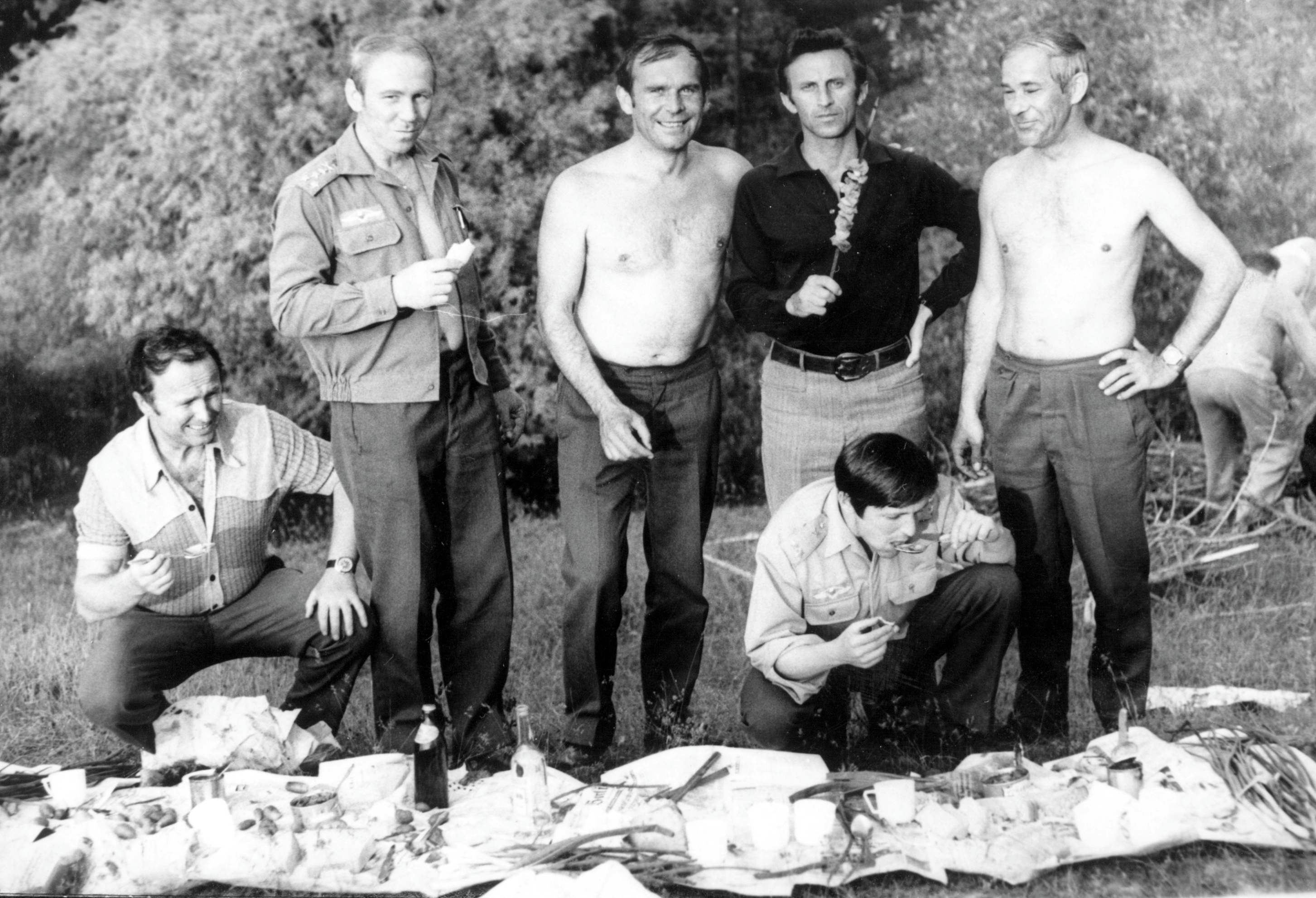 Výlet do stepi, vlevo velitel letky České Budějovice František Skalický, vpravo Vítězslav Nohel. Přeškolení pilotů na letouny MIG 23, výcvikové středisko SSSR Kazachstán, druhá polovina 70. let