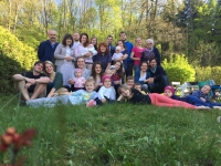 Iva Ondráčková, oslava 80. narozenin, na zahradě u svého domu (je zde dcera Andrea s manželem Pavlem a jejich děti: Ariela se svým manželem Matoušem a třemi dětmi, Kamil se svou manželkou Marií a dvěma dětmi a nejmladší Miriam, chybí nejstarší Bianka a čtvrtý Viktor; dcera Noela a její děti: Daniel s manželkou a dvěma dětmi, Laura se čtyřmi dětmi, Marcel s manželkou a první dcerou, Olivie s manželem, Natálie a Eliana, chybí čtvrtý Roman), Zlín, květen 2017