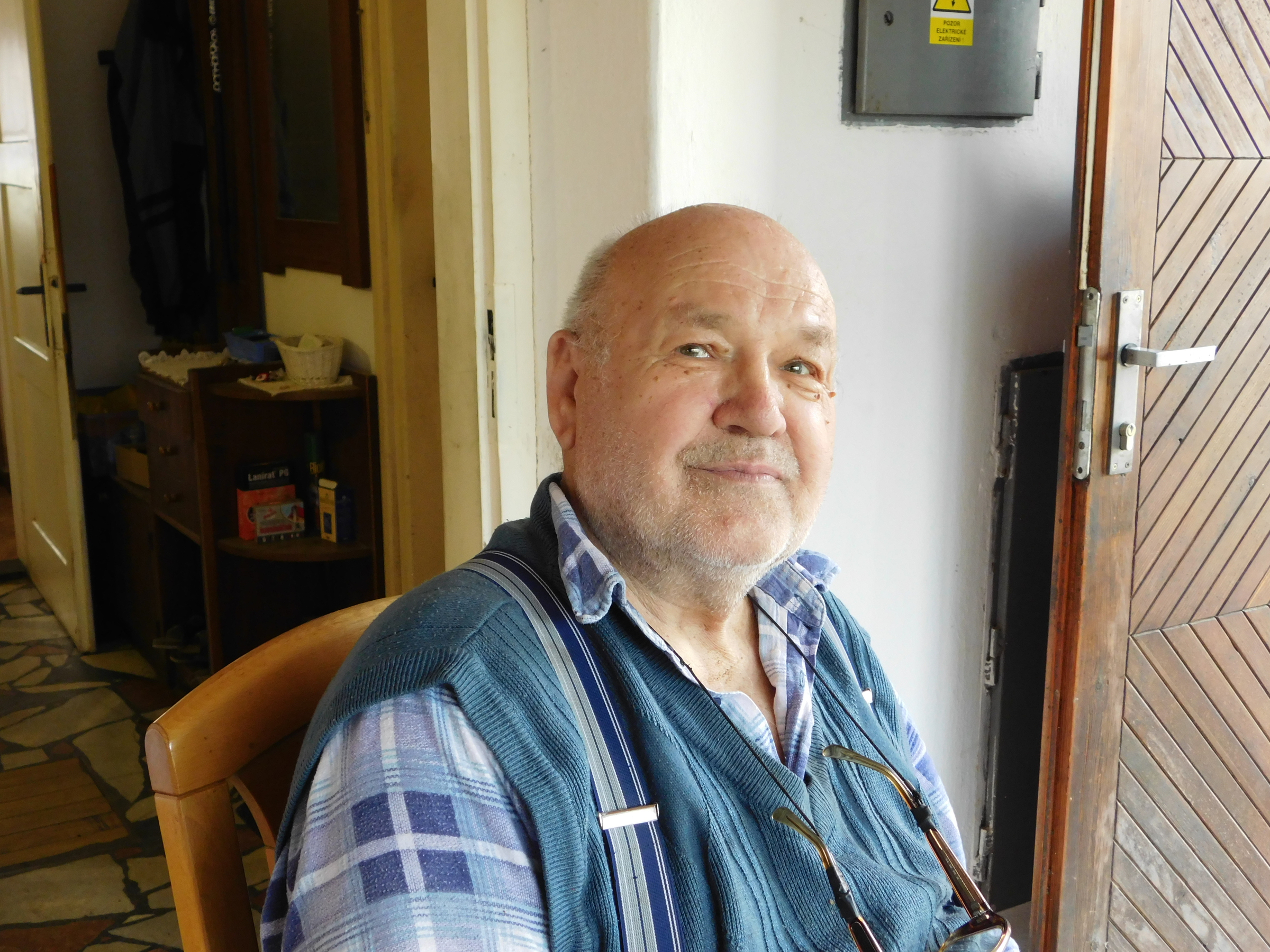 „Pamatuji si, že mě tatínek seznamoval s českou historií. Uměl jsem česky, ale v roce 1944, rok před nástupem do školy, jsem musel do školky. Takže jsem byl v čtyřicátým čtvrtým a čtyřicátým pátým ve školce. Když jsem byl mezi německými dětmi, tak jsem se naučil pořádně německy a češtinu jsem zapomněl. Takže jsem v pětačtyřicátém přišel do školy a neuměl jsem česky. Tenkrát to nebylo jako dnes, že by u každého takového dítěte stál nějaký asistent. To neexistovalo. Tady byli Slováci, Maďaři, Rumuni a nakonec přišli Řekové. Tady bylo prý devět nebo kolik národností. Děti byly prostě hozené do rybníka a plavte.“