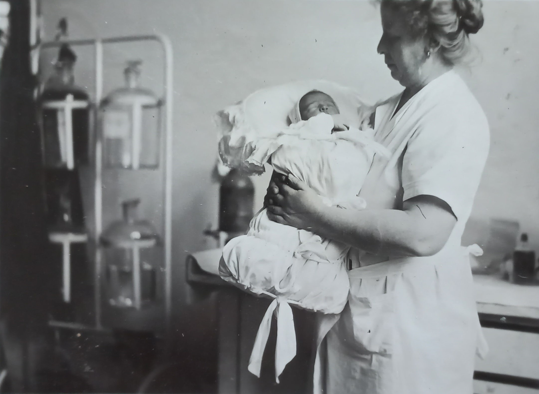 Libuše Paukertová-Leharová se narodila 11. ledna 1933 ve středu ve 2 hod. 10 min. v Praze v dejvické vojenské nemocnici. Na fotce s asistentkou paní Dlouhou