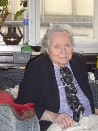 • „No zaprvé protektorát. No napřed jsme doufali, že to dlouho nebude trvat. To bylo zrovna jako za komunistů, lidi taky čekali a doufali, no a tak já jsem si myslela, že budu furt chodit do nějaký školy. Tak mě naši zapsali, teda mamička už zapsala do soukromý školy pro sekretářky. Nebyl konec války, ona trvala akorát rok, ta škola. Potom ještě někam mě zapsala a ono pořád nic a najednou přišlo z pracovního úřadu předvolání a tam stál německej voják nebo důstojník a tak se na nás díval a ukazoval vlevo vpravo vlevo vpravo, a tak jsem se dostala do kuratoria pro výchovu mládeže. Což mělo hroznou pověst. Ale byla jsem šťastná, že nemusim do Německa, protože brali do Německa na ty práce. A dostala jsem se do oddělení tělovýchova, kde to bylo opravdu krásný, protože to nebylo politický. Tam s náma byli profesoři tělovýchovy, sokolové, no naši lidi, takže to bylo vlastně skoro království v tý nepříjemný branži jinak.“ - Tazatel: „A co jste tam vlastně dělala?“ - „No sekretářku.“ - Tazatel: „A vzpomínáte si třeba na vašeho vedoucího nebo šéfa?“ - „Vy myslíte toho českýho, nebo německýho?“ - Tazatel: „No německýho, případně na koho vzpomínáte víc.“ - „Já musim říct, že jsem znala velice dobře doktora Theunera. Doktor Theuner byl lékař, kterej ošetřoval mýho strýce na srdce, byl tam tady na Karlově náměstí ve špitále a doktor Theuner byl jeho ošetřujícím lékařem. Jednoho dne si na mě počkal před nemocnicí, že mě doprovodí domů, no a o čem jsme mluvili – o politice. A já mu vyprávěla, jak moje teta, která má hotel ve Dvoře Králové, pronajala nějakou společenskou místnost určitý společnosti a pak se od číšníka dozvěděla, že jsou to vlajkaři. ,A představte si, pane doktore,‘ řekla jsem tomu doktorovi Theunerovi, ,že ty vlajkaři nosej pod klopou odznaky.‘ A abych mu to ukázala, tak jsem takhle mu tu klopu odklopila a von tam měl odznak. No tu hrůzu vám nemůžu popsat, protože já myslela, že rovnou jdu do žaláře. On se začervenal strašně, to se tak dobře na to pamatuju, já asi zbledla, on mě neudal, ba naopak doprovodil mě slušně, no a jednoho dne se ukázalo, když jsem byla odvedena do kuratoria přes pracovní úřad, že je muj nejvyšší šéf českej. On byl, já už nepamatuju tu šarži, kterou on měl, ale zkrátka byl to pan šéf.“