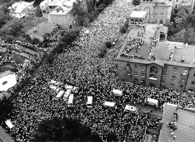 • But that earthquake was really a terrible thing, because for me that whole movement was a kind of joy. I remember going there in the morning, and I remember not eating all day [laughs], because it was getting dark and I was going home. And for me it was kind of an incredible feast, yes, it was something of joy. And suddenly the earthquake happened. I didn’t believe in those rumors that the [earthquake] was artificially made and so on, but there was something really ominous about that earthquake. Well, then they [the “Karabakh” Committee] were arrested, etc. For a moment I really wondered if everything could really end. But I vividly remember like it was today when the “Karabakh” Committee came back. I don’t remember now after how many months, but I remember that. It was not in the square. Where did they gather? […] But I can’t remember why they have gathered somewhere else. But as far as I remember it was not the Freedom Square, it was a different place. And I remember how it became clear to me that it was not over, it was just a break. And after that the opposite was clear: if they were set free, they were out of prison, then we had won, something had actually changed. And after that the Movement was much more victorious, because it was clear... even though back then no one thought that the Soviet Union would collapse, i.e. would completely collapse as a state. So, the return of the “Karabakh” Committee showed that the Committee had won, i.e. not the Committee… After the movements started in the Baltics etc., it was already clear the changes were irreversible, i.e. there was no going back to the old ways.