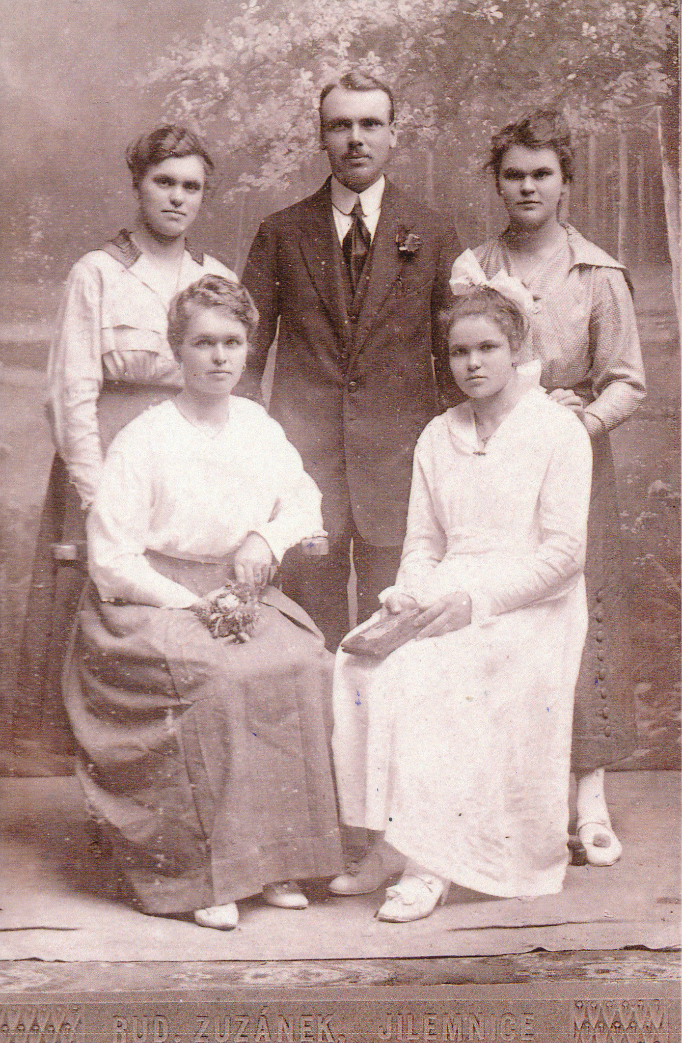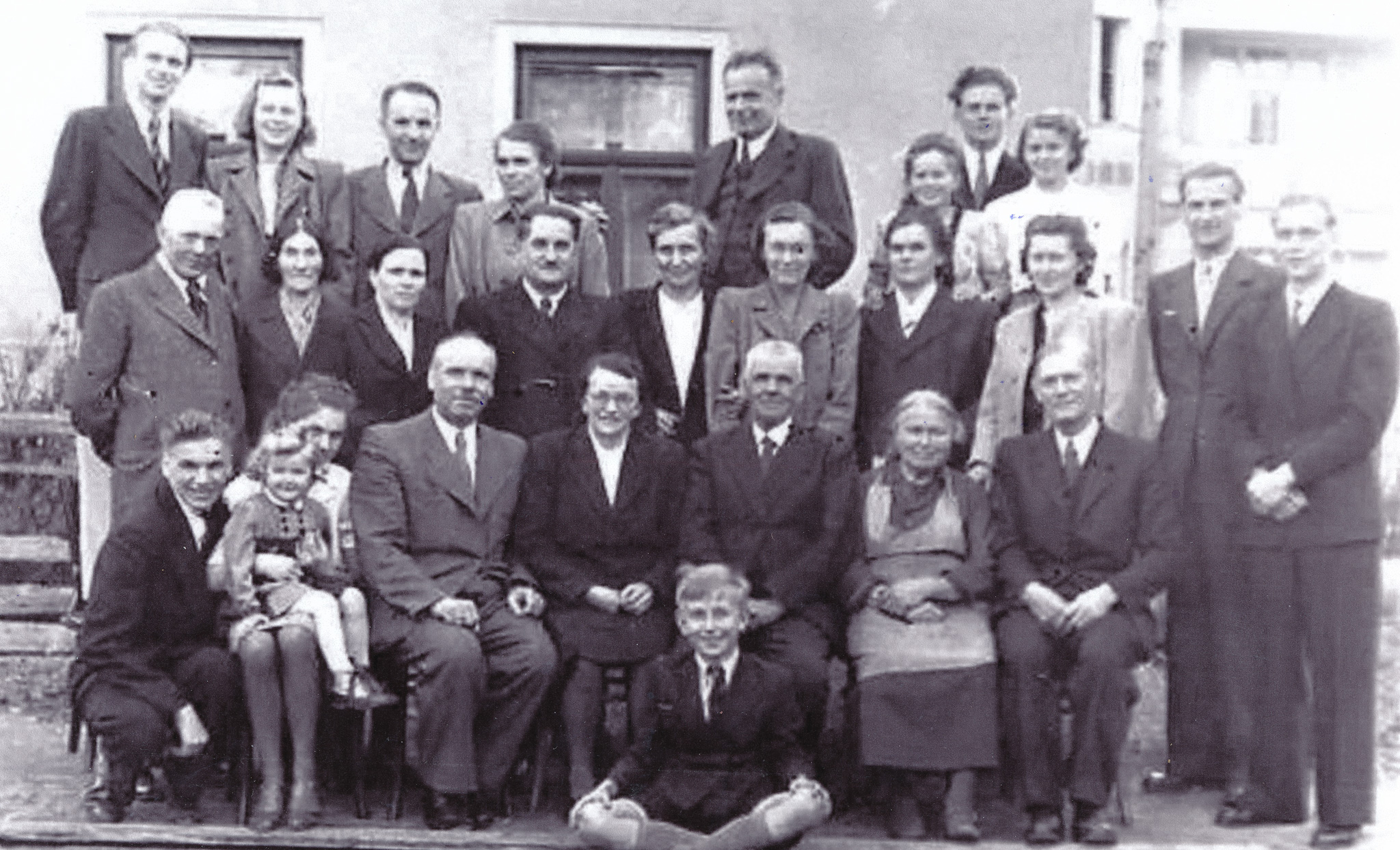 Řada dole zleva: Vladimír Sucharda, Věra Suchardová s dítětem na klíně, Josef Václavík, Zdenka Václavíková, Josef Václavík st., Marie Václavíková, JUDr. Jan Konopáč, Jan Konopáč
