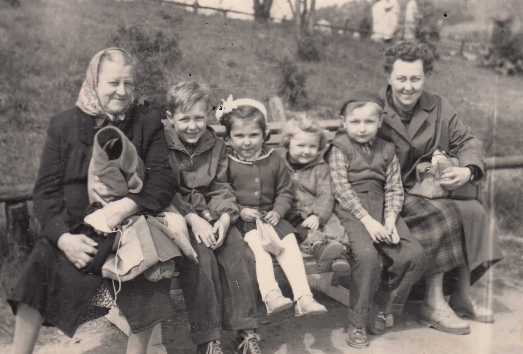 Současné foto - zástupci 4.,5.,6 a 7. generace Petrof - zleva Zuzana Ceralová - Petrofová, její sestra Ivana Petrofová, syn Zuzany Ceralové Antonín, sedící Jan Petrof, za ním jeho manželka. Stojící za nimi současná CEO firmy, dcera Zuzany Petrofové Anna Petrof Prousková s manželem a dětmi.