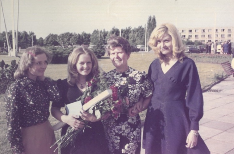 Eva Šestáková (druhá zleva), její maminka (třetí zleva) a kamarádky z promocí, 1968