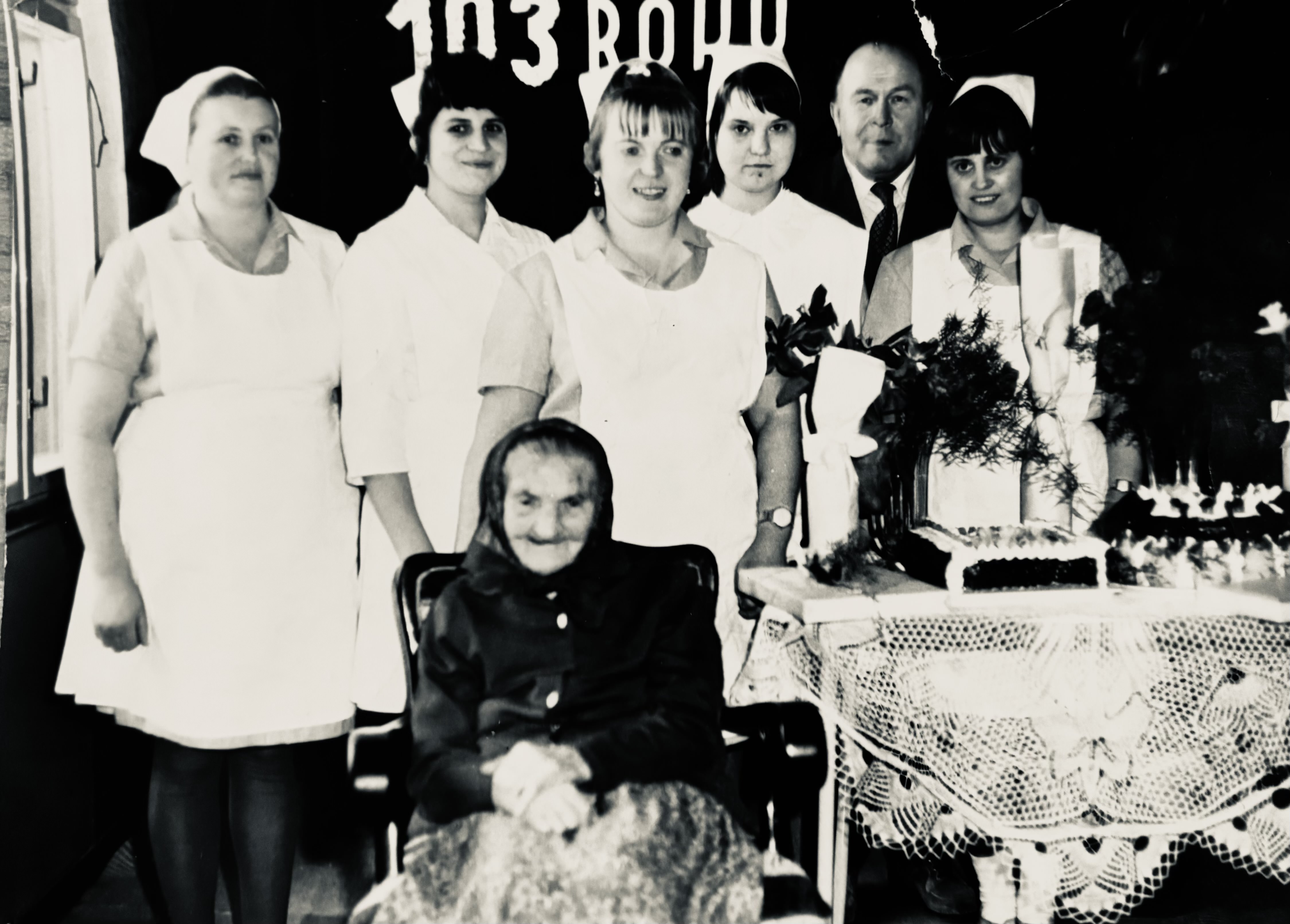 • Řádové sestry z domova důchodců s jubilantkou