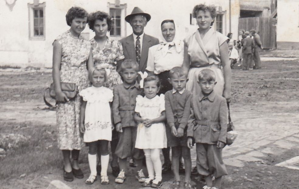 Jaroslav Janešík (první řada, druhý zleva) s rodinou, 1959