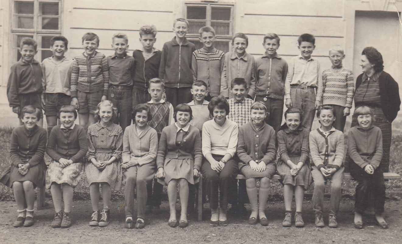Jaroslav Janešík (druhá řada, první zleva), pátá třída, Borovany, 1962
