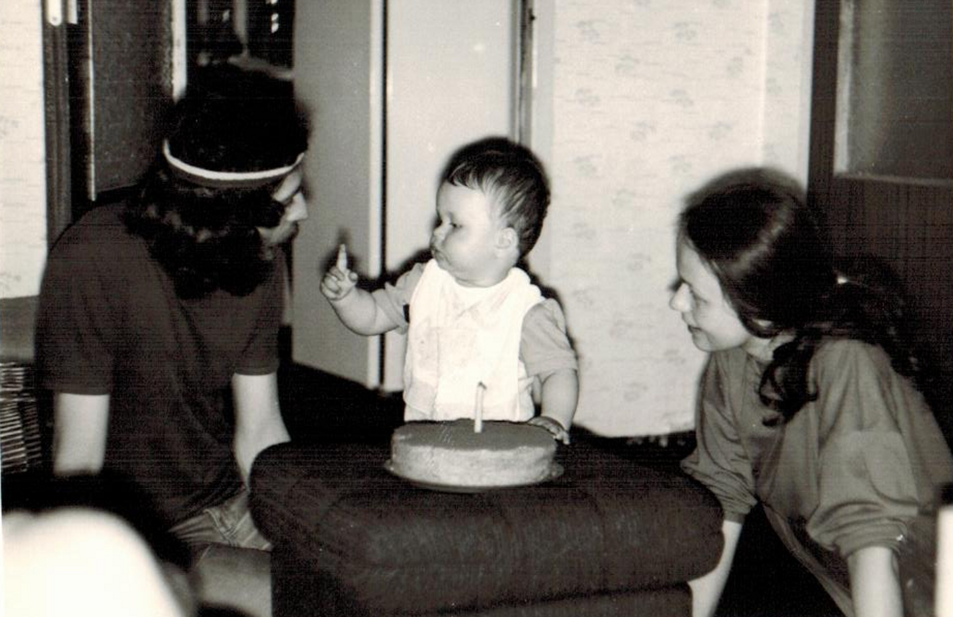 Jaroslav Janešík (druhý zleva) s bratrem Rudolfem a sestrou Marií na borovanské pouti, 1959