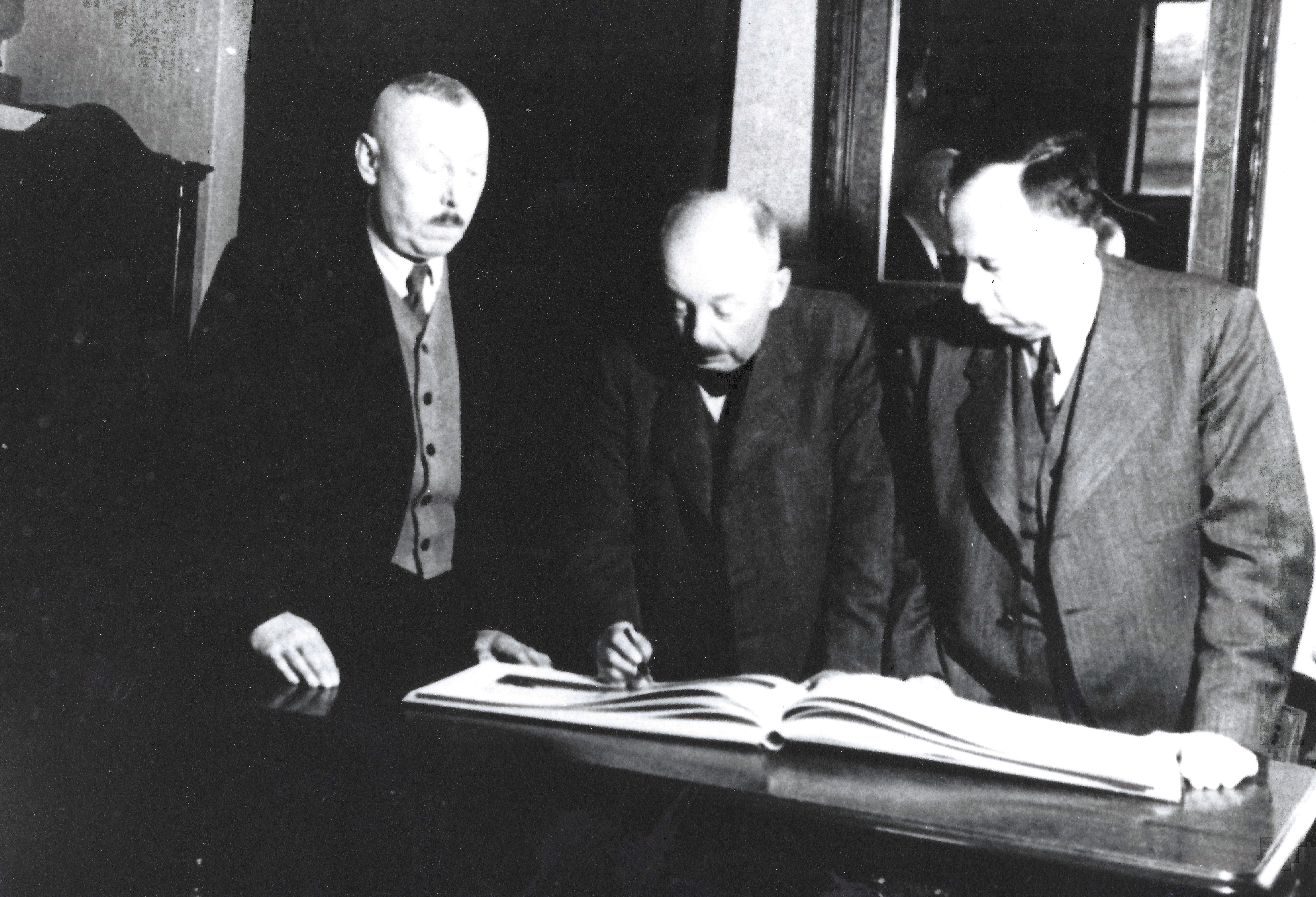 Shromáždění firmy Petrof v dubnu 1914. Firma slavila 50. let od založení a také vyrobení 30 000. klavíru. Ten si zakoupil následník trůnu František Ferdinand d'Este pro zámek Konopiště. Dlouho si ho neužil. 28.6. byl zabit v Sarajevu a začala 2. světová válka. V samotném středu fotografie manželé Petrofovi. Vpravo stojící ve druhé řadě zas Antonínem Petrofem slavný starosta Hradce Králové František Ulrich