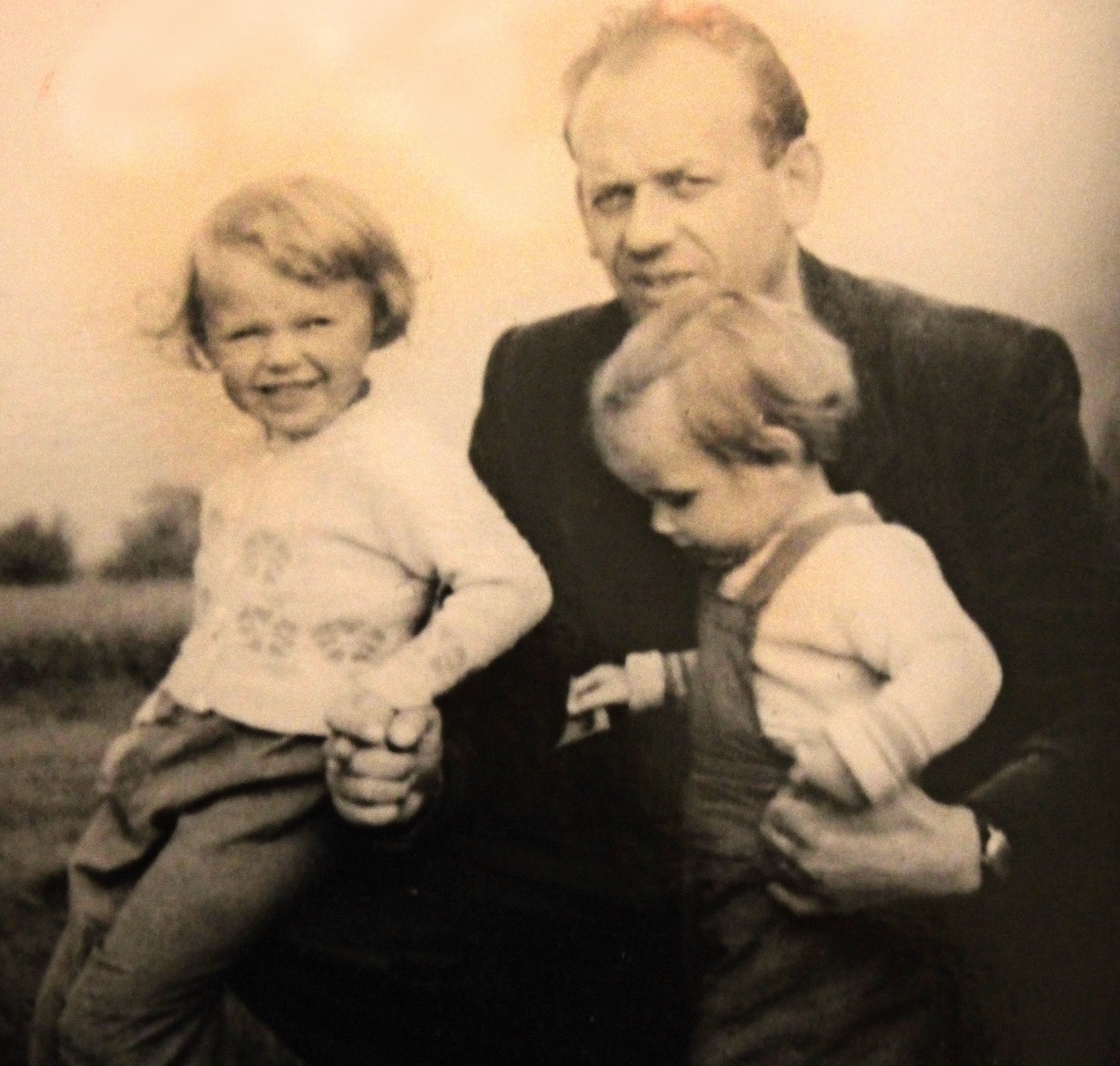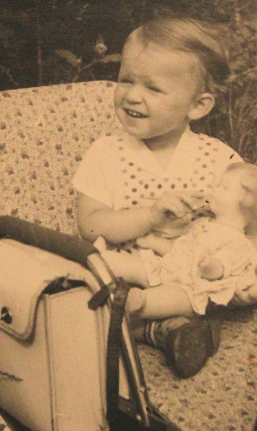 Fotografie rodiny manžela pamětnice, kterou poslali otci Erichovi st. na frontu, kde padl. Na snímku je matka Hildegard Geissler se svými syny Erichem a Lotharem