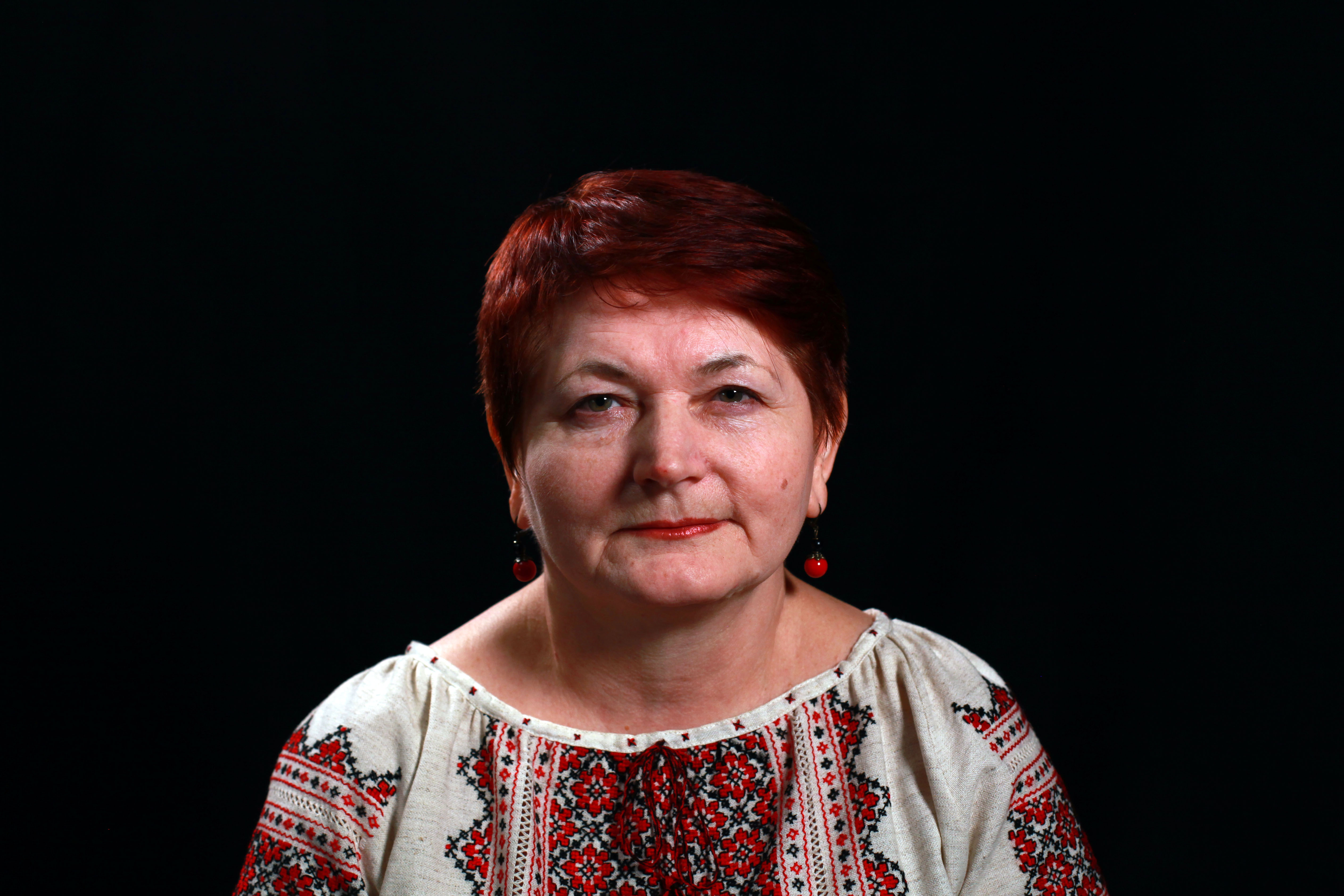 „No, víte, my už jsme tehdy viděli, že oni stáli [tam], kde je naše milice, policie; tam stáli ti Rusové. Rusové tam byli, protože já umím rusky velmi dobře. A vykračovali si se zbraněmi. <…> Každý den po práci jsem chodila přímo kolem té policie. Dívala jsem se, jestli tam visí naše vlajka nebo ne. A pokaždé jsem sledovala, jak tam tamti kráčejí se zbraněmi sem a tam. Očividně jim <…> dali zbraně, a [oni] pocítili svou sílu. Že to byli Rusové, mohu říct s jistotou, protože jsem s nimi mluvila, když jsem šla. Mluvila jsem s nimi, když jsem chodila kolem. Přišla jsem domů a řekla to synovi… A on říká: ‚Mami, zbláznila ses? On má zbraň, může na tebe vystřelit, a konec.‘ Já jsem je tak moc chtěla provokovat, víte, že to ani nedokážu říct. A vzpomínám si na naši Marynu ze Slovjansku, ta taky říkala: ‚Já jsem to měla stejně,‘ říká ‚oblékala jsem si vyšyvanku [vyšívaná ukrajinská košile], sedala na kolo a jezdila po náměstí.‘ Tam, kde byli; umíte si to představit? To byl takový protest.“