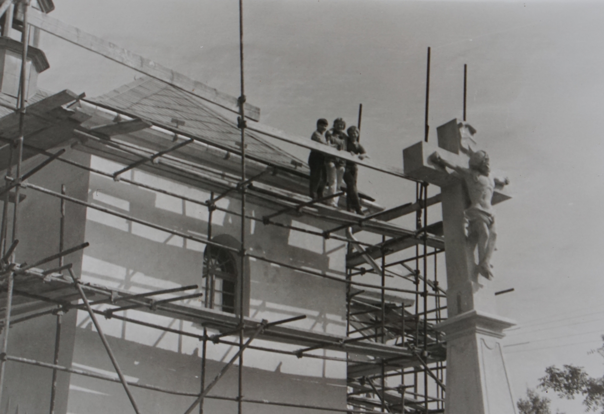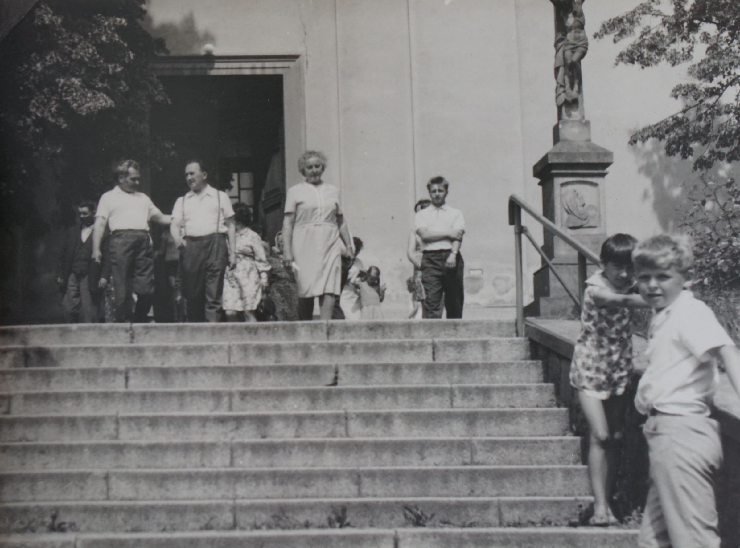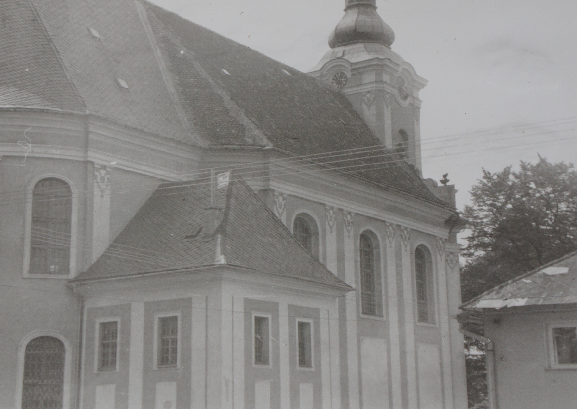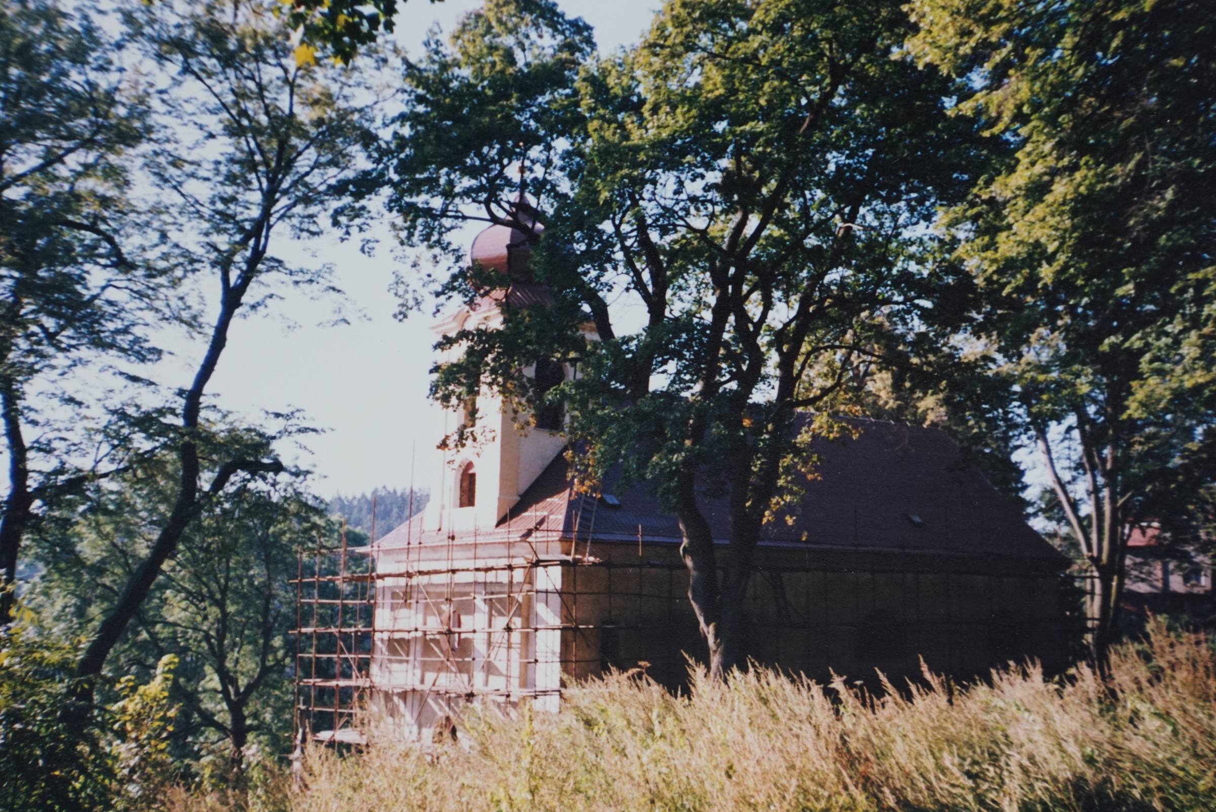 Svěcení opraveného kostela v Domašově nad Bystřicí, před oltářem biskup Josef Hrdlička a po jeho levici pamětník Antonín Pospíšil, který tento kostel opravoval a byl zde farářem v letech 1992-2005.
