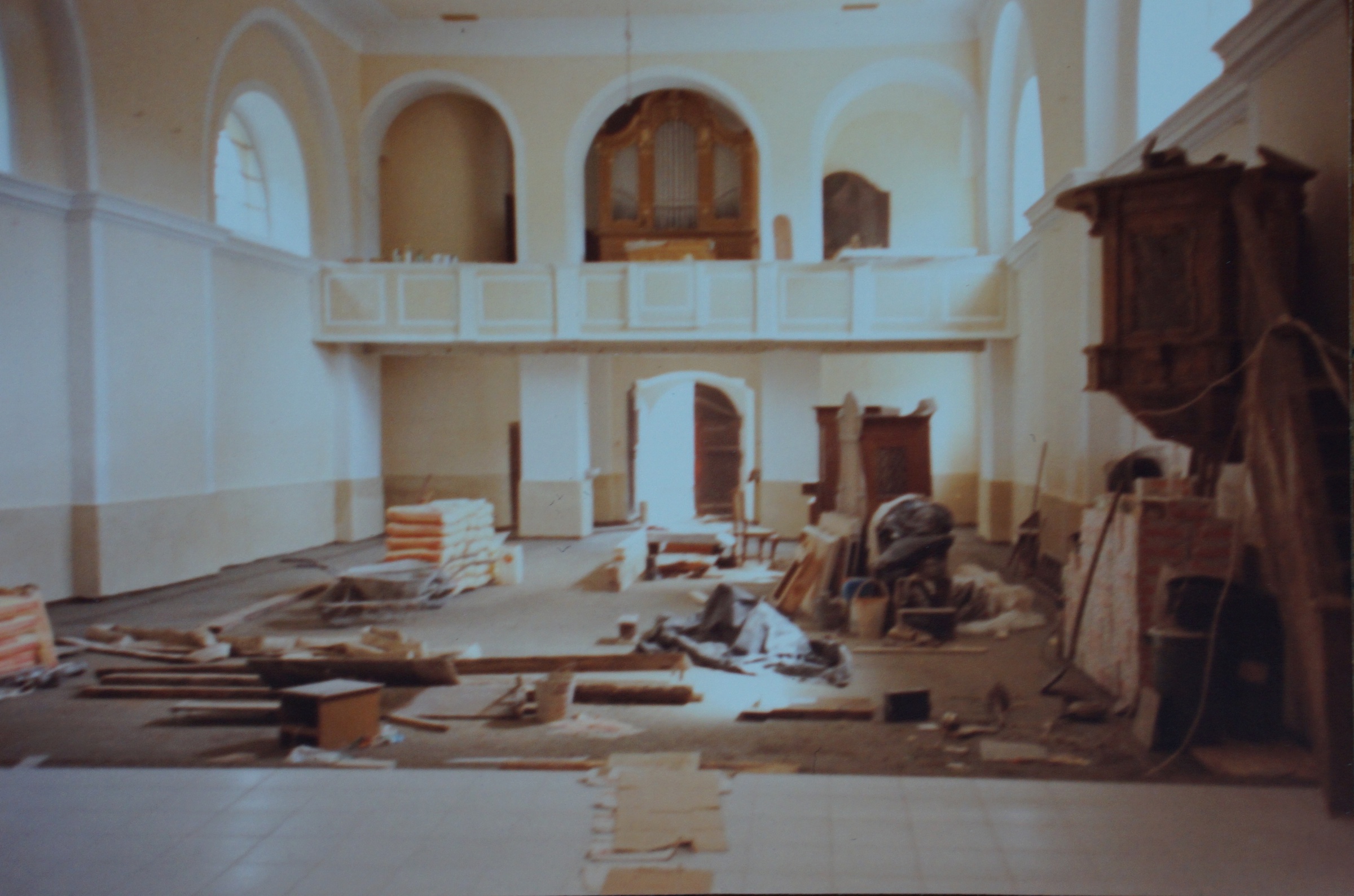 Interiér opraveného kostela v Domašově nad Bystřicí. Tento kostel opravoval Antonín Pospíšil v době, kdy byl v této farnosti farářem (1992-2005).