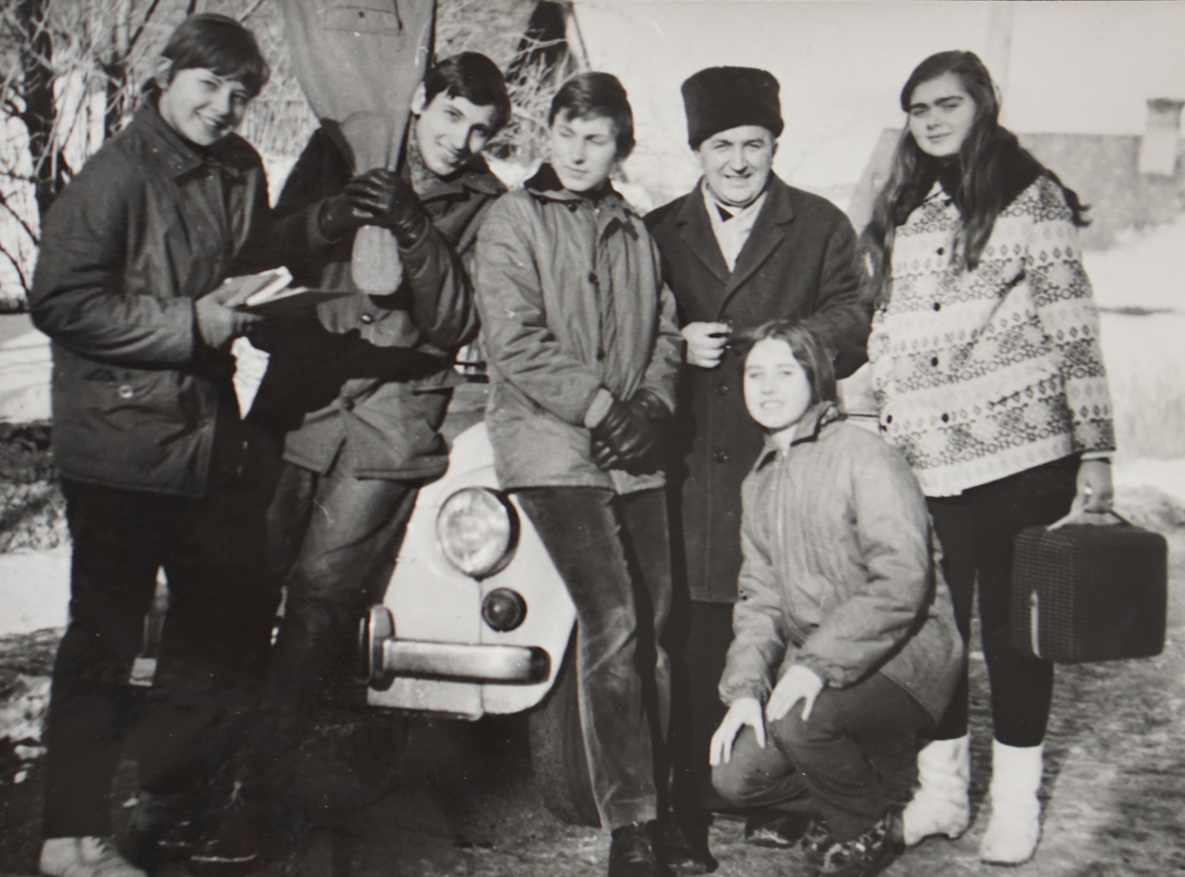 Pamětník Antonín Pospíšil dole vpravo s Antonínem Kolářem dole vlevo na výletě se skauty z Hranic, které založili a vedli krátkou dobu od roku 1968.