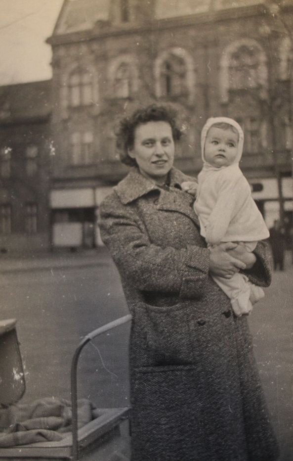 "Tam [v domě na Mariánskohorské ulici] byli Němci, pár Čechů tam taky bylo, tak napůl asi, a za našimi zdmi bydleli nějací Hudkovi a ti měli syna, který byl u SS, a on zrovna přišel z té vojny na dovolenou. A protože můj tatínek měl na stěně rádio a nepočítal s tím, že on se vrátí na tu dovolenku... No a on nás chtěl udat. Jenomže jeho maminka ho prosila, ať to nedělá, protože jsme dobří sousedé, že k nám chodí šít taky. On mermomocí chtěl, že to půjde hlásit a ona ho nakonec přemluvila, tak to neudělal. No a pak už tatínek neposlouchal to rádio, chodili jsme pak do Přívozu k jednomu známému poslouchat Volá Londýn."