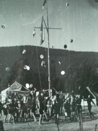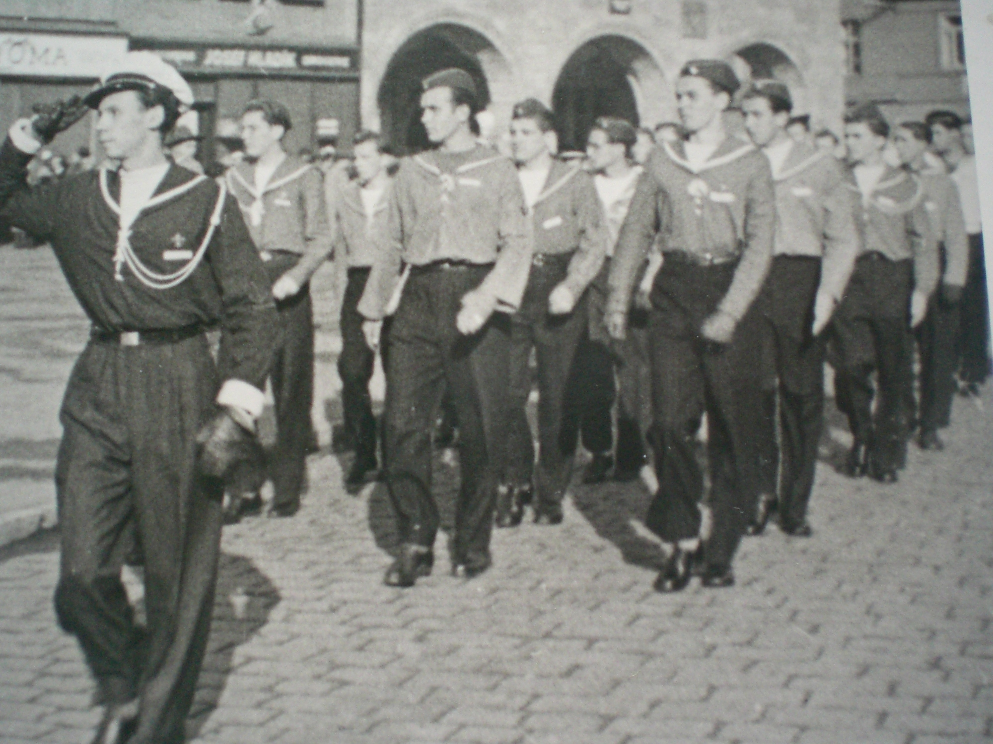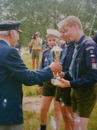 „Já jsem v té době studoval. Namotal jsem se v únoru 1948 do manifestace u ministra Kopeckého na Hradě, kdy jsme pochodovali nahoru s pokřikem: ,Hej ministře Kopecký, dej nám knihy vědecký!‘ Oni nás posbírali a všechny nás vyházeli ze školy. Já jsem měl jediné štěstí, že jsem měl dokončenou první státnici, ale jinak to byl šmitec. V té době nám taky samozřejmě zakázali skauting. Takže jsme se sice ještě párkrát sešli v té Tortuze, protože jsme si řekli, že se na to nemůžeme jen tak dívat. Jenže některé nás vyřídili velice rychle. Mě nasadili k technickému praporu do Pardubic, takže jsem šel podbíjet koleje.“