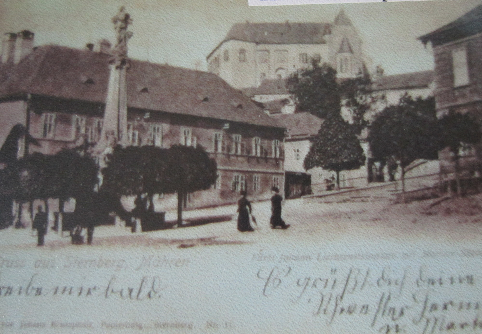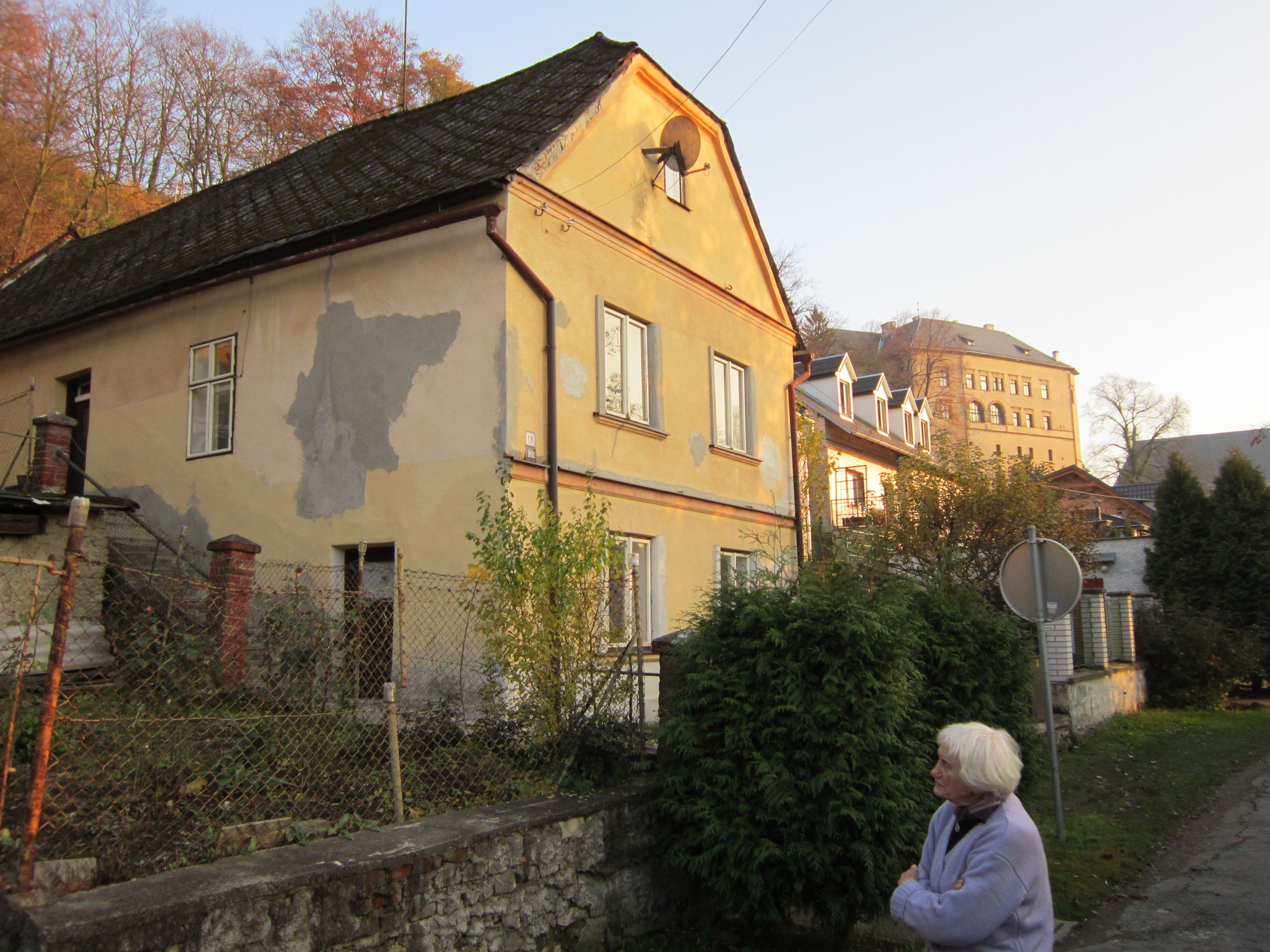 „Maminka šla do města a paní Gesslerová seděla na chodníku před jejím barákem. Bydlela tam, jak se teď prodávají boty, tak vedle v tom baráku. Maminka šla do města a ona seděla venku, dvě kabely, a brečela. Maminka říká: ,Frau Gessler, co je? Co se stalo?‘ Ona říká: ,Mě vyhodili a s taškama tady sedím.‘ Její mladí, to byl syn Max, co mu ten obchod patřil, a jeho žena, kteří měli holčičku Věru. Za ní jsem si vždycky chodila hrát. Ti šli zpátky do Ostravy, kde měli rodiče mlýn, a ti všichni přišli do koncentráku. A ten Max Gessler, ten syn od paní Gesslerové, co byl po válce u nás, ten šel bojovat do Ruska. Byl ruským důstojníkem. Ta paní Gesslerová u nás byla jeden a půl roku. Paní Brachová, která byla taky Židovka, ta se schovala tady u nás u té paní Gesslerové. Představte si, my jsme to nevěděli. V noci vždycky spala dole s ní v posteli, brzo ráno se vždycky schovala tady na kopci. Ten soused ji viděl, šel na gestapo a udal maminku, že tady schovává Židovku. To byla tenkrát hrůza. A paní Gesslerová, ta vždycky: ,Paní Luxová, dejte mi jenom málo jídla. Ne tolik, kolik mi dáváte.‘ A najednou chtěla víc. Ta paní Brachová s ní jedla. To my jsme nevěděli. Bylo tak devět hodin večer, a najednou bouchání na dveře. Šla jsem s maminkou ven otevřít. Tam stáli tři. Kožený kabáty, klobouky. ,Gestapo! Vy jste paní Luxová?‘“