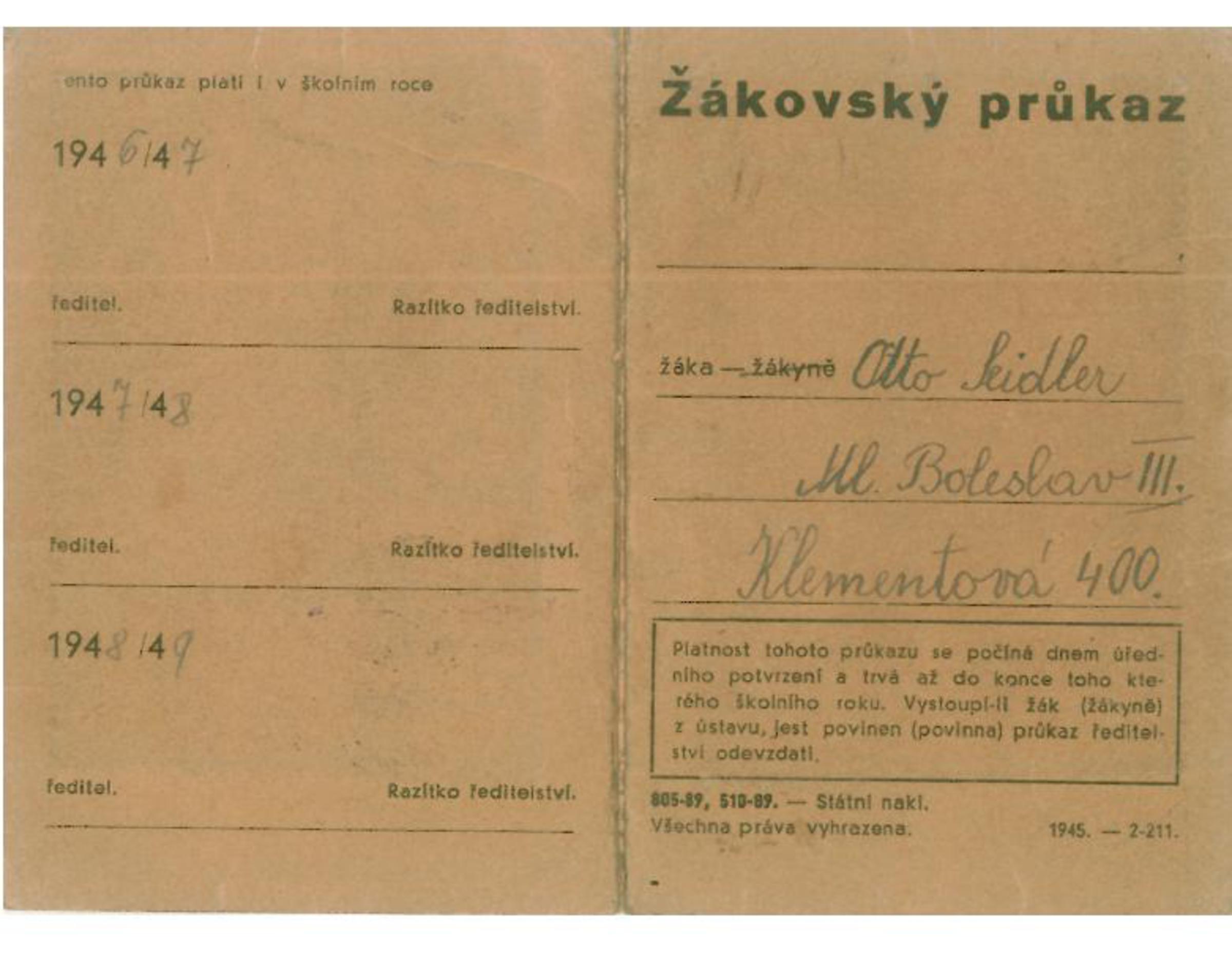 „Z Mladé Boleslavi byly vypraveny dva transporty po cirka 500 lidech. V jednom transportu jsme byli i my. Den před transportem, který byl 16. ledna, jsme museli se zavazadly, směli jsme mít každý 50 kilo. Já už jsem byl jenom s matkou, poněvadž otec už zemřel, zahynul v Osvětimi. Tak jsme museli přejít do školy Tomáše Garrigua Masaryka, kde nás uložili v tělocvičně na zem.“