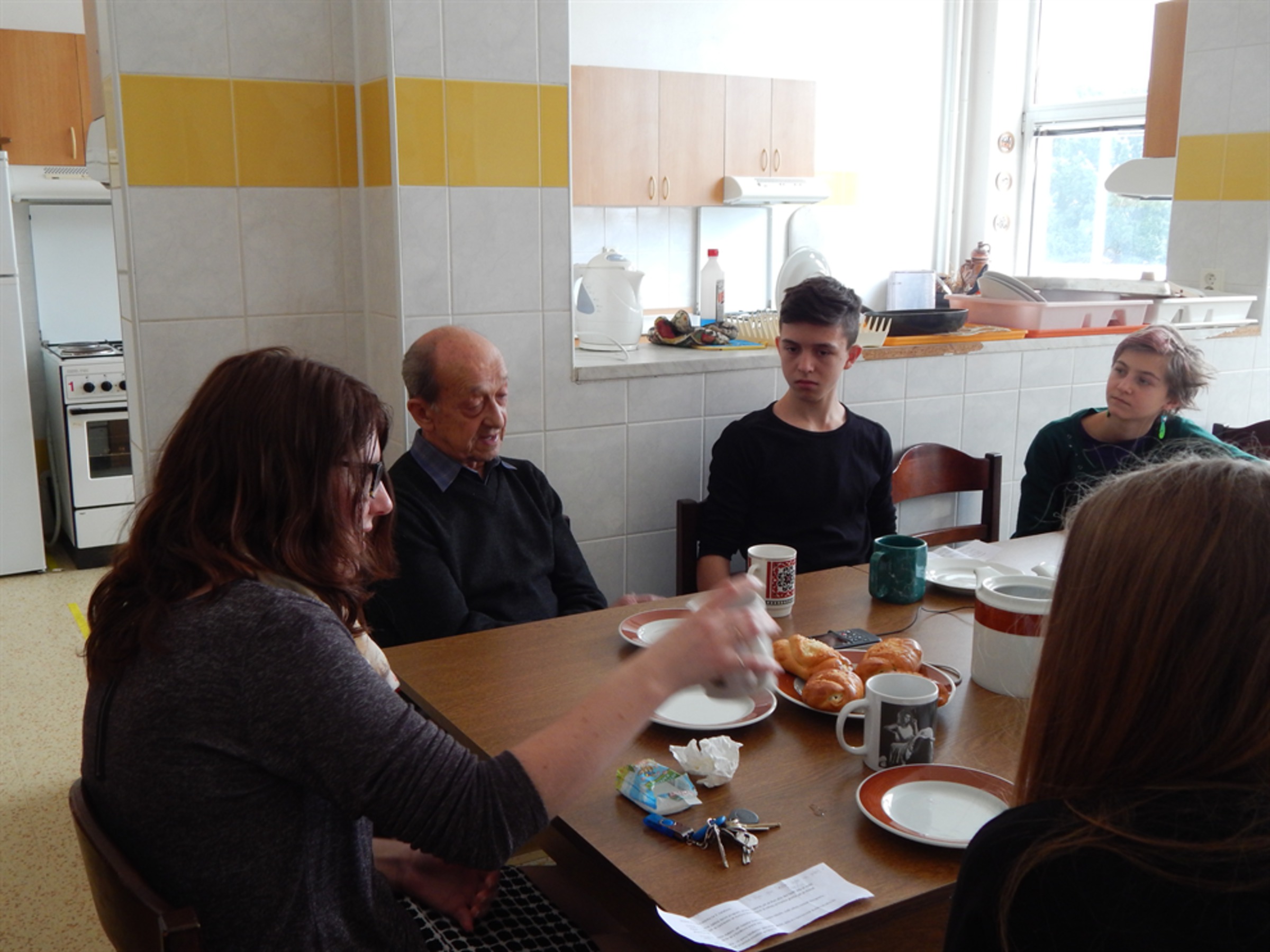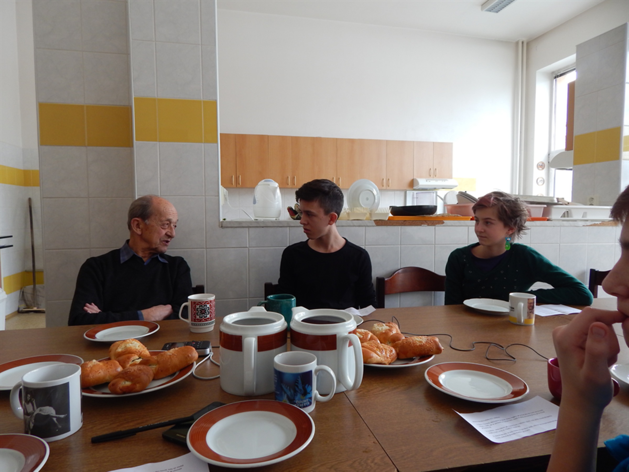 Tazatel: „To bylo na Podolci v Mladé Boleslavi?“ – „Na Podolci. Tam jsme museli přečkat do rána, abychom až půjdeme ráno transportem na hlavní nádraží, nebudili pozornost. Ráno 16. jsme odešli na hlavní nádraží, kde už byl připraven vlak. Byl to osobní vlak, byl leden, čili zima. Některá zavazadla jsme unesli, jiná nám spolupracovníci přivezli, protože bychom to, pochopitelně… 50 kilo… neodnesli. Takže vlakem jsme pak jeli do Bohušovic, poněvadž do Terezína ještě vlaky nejezdily. V Bohušovicích jsme museli vystoupit, vzít si to, co jsme unesli. Mrzlo, byla zasněžená cesta, a asi dva nebo tři kilometry do Terezína dojít.“