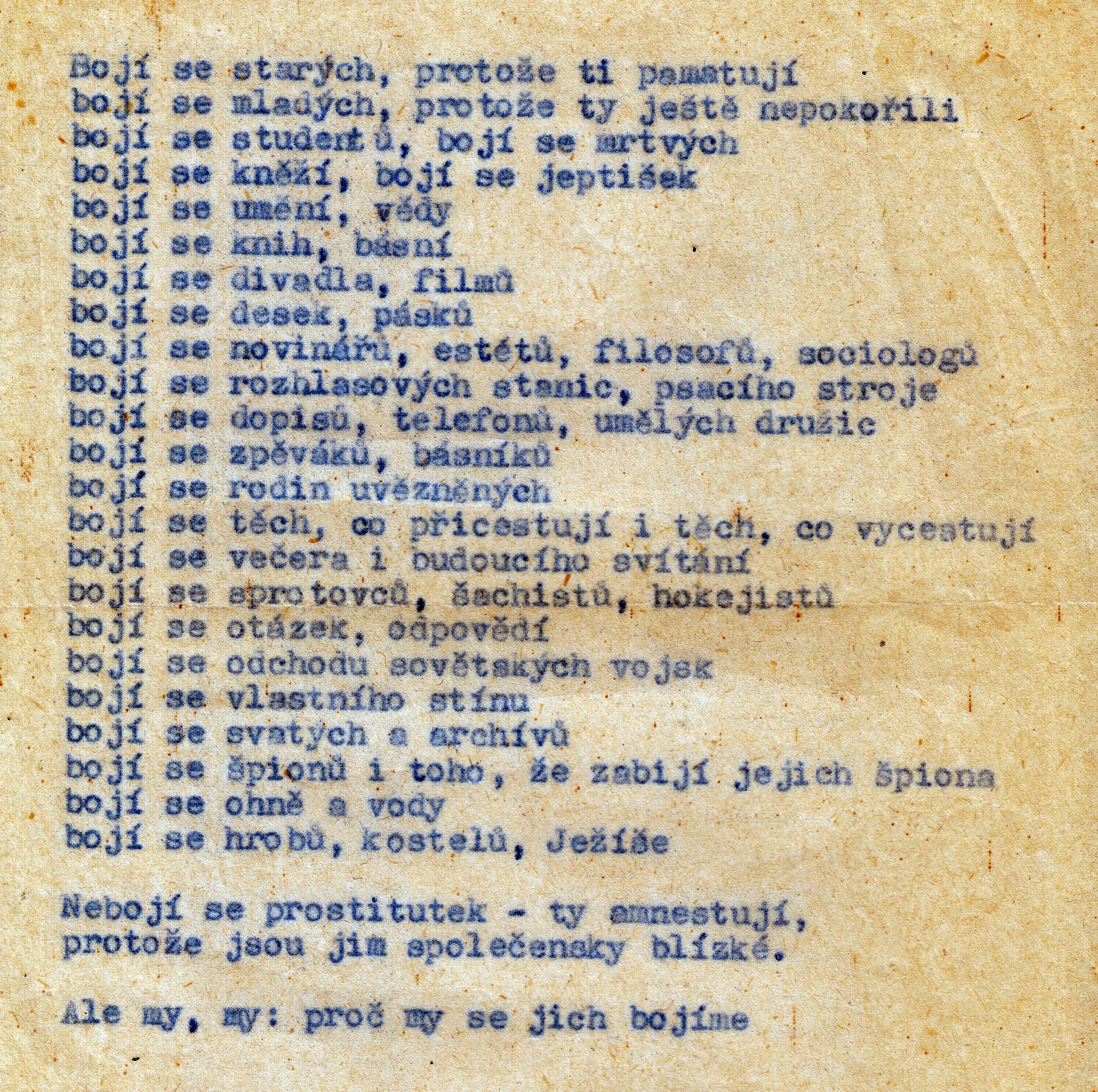 • „Přišly hrozné věci. Začala vysílat rozhlasová stanice Vltava. Začaly vycházet Zprávy. To byl okupační plátek, který byl hrozný. Ta nejotřesnější, nejbrutálnější sovětská a východoněmecká propaganda. Špatná čeština. Mizerná grafická úprava. Měli toho natištěnou strašnou spoustu. Byli jsme šokováni, že se mezi spoluobčany našli kolaboranti, kteří ty Zprávy roznášeli do domů. Byli to staří komouši. Strkali to do schránek. Dávali to lidem. Když jsme to viděli, strhli jsme povyk. ‚Podívejte se na ně! Na udavače! Na donašeče! Na kolaboranty, kteří roznášejí Zprávy!‘“