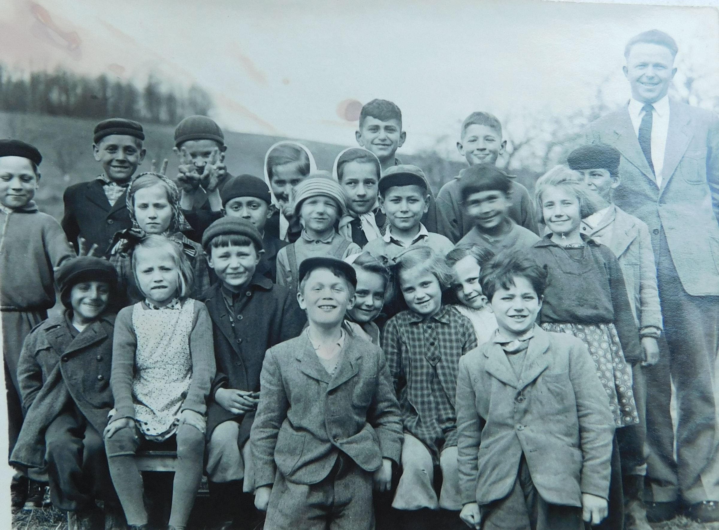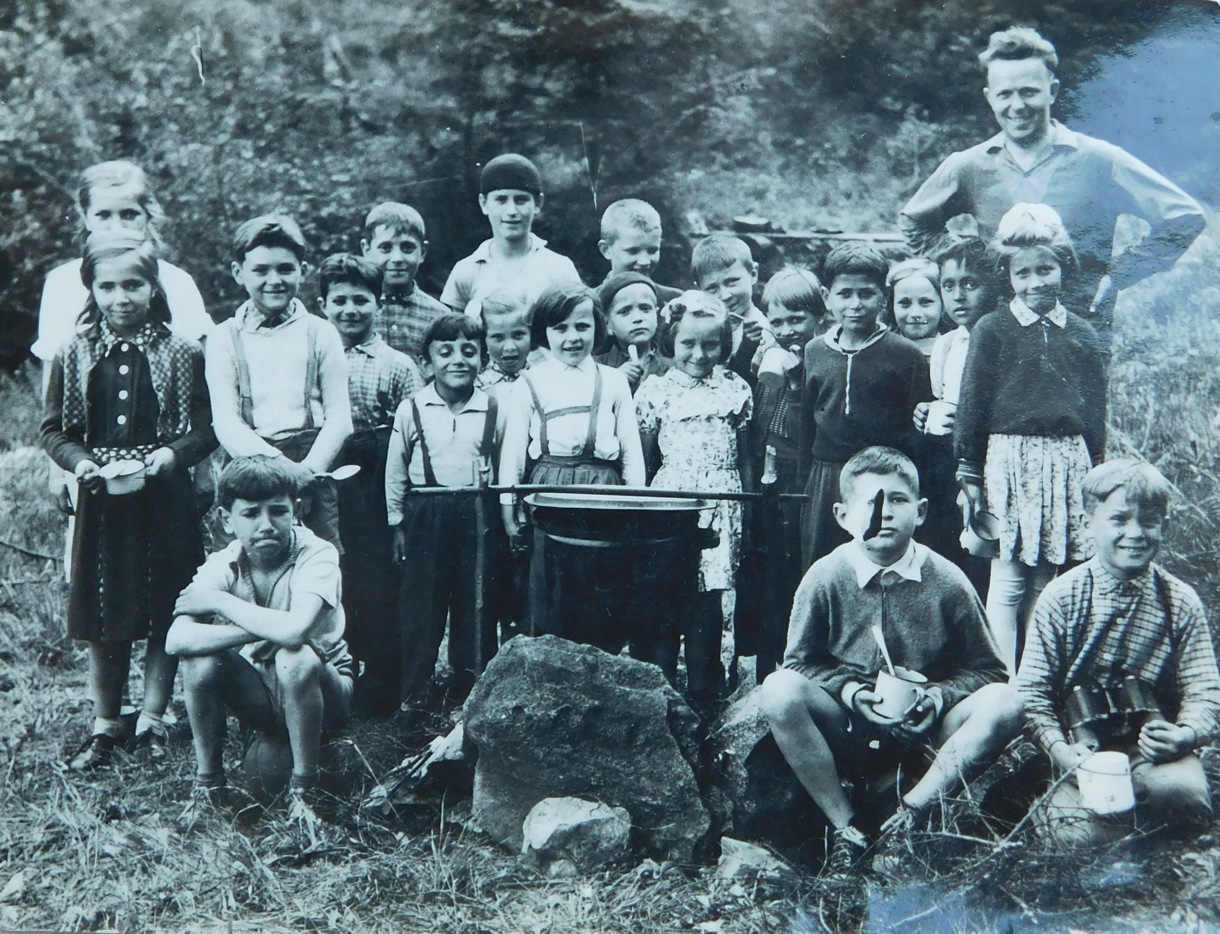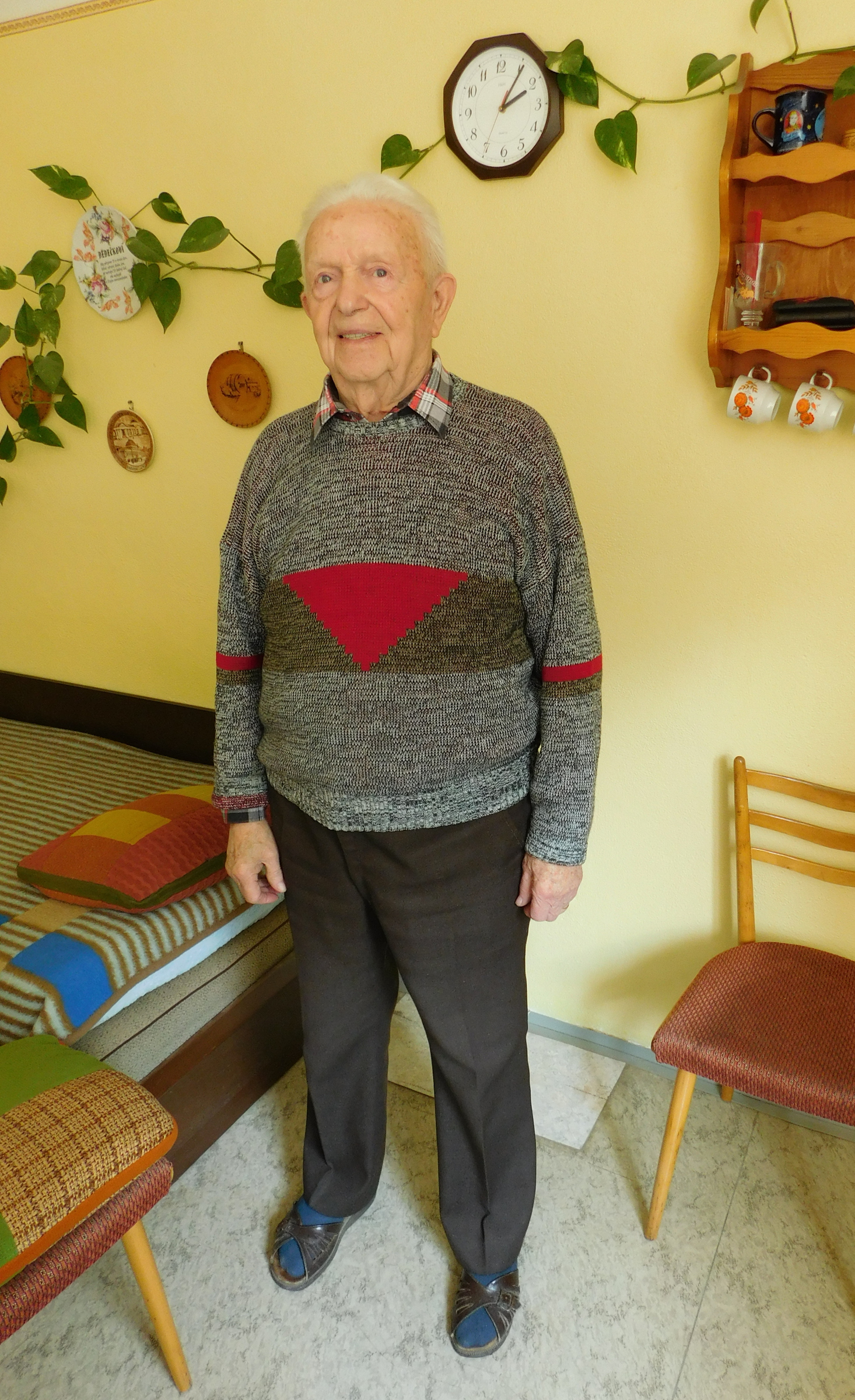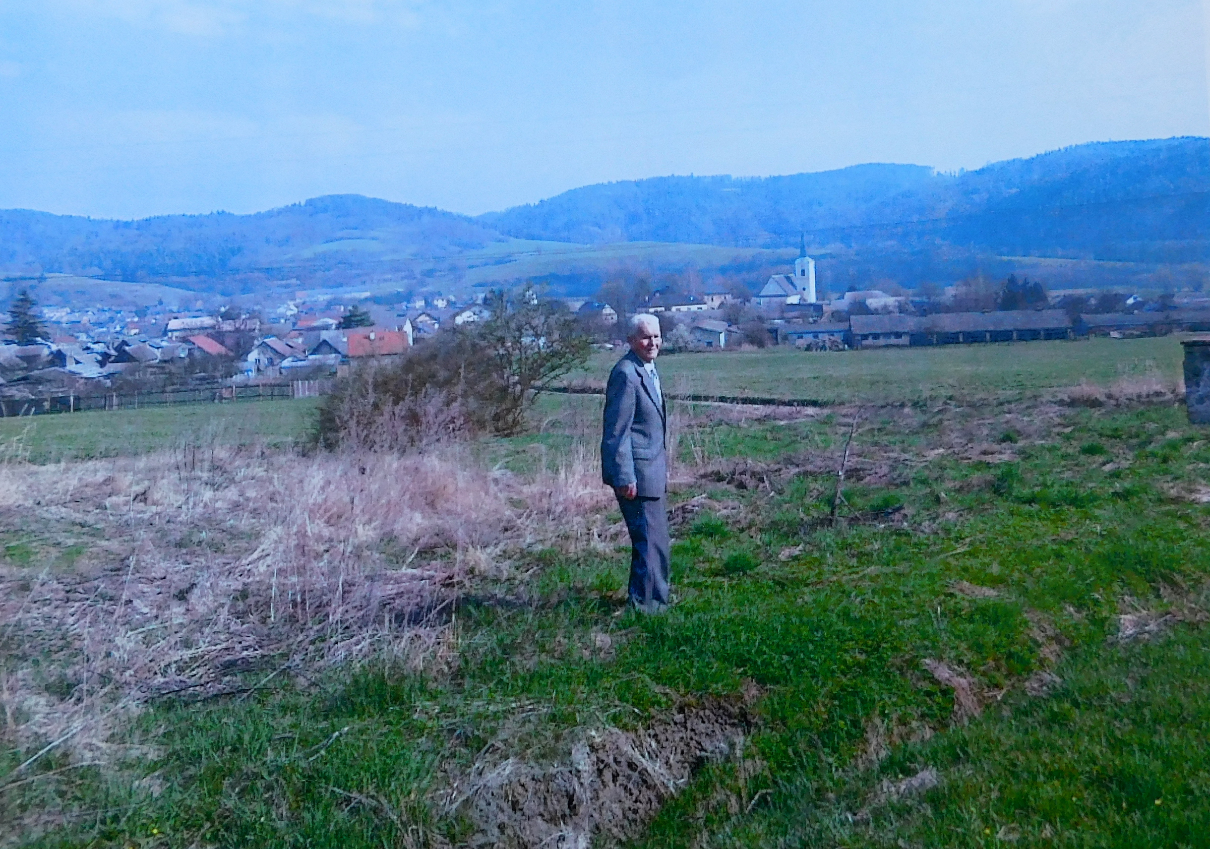 „Byla tam paní Bäckerová, která měla za manžela velitele četníků. Měla dceru Lindu a syna Bobíka. Nebyla zlá. Otec uměl německy, protože se vyučil ve Vídni. Říkal, že až dají povel, tak nás během pěti minut postřílí. Rostla tam hruška, tak jsem se snažil za ni alespoň částečně dostat. Měli jsme strach, protože tam postupně přiváděli další a další. Přimlouvala se Němka Bäckerová a zapojil se do toho také místní farář. Tak z toho sešlo, ale že vezmou každého desátého. Stáli jsme a oni rozpočítávali. Já byl sedmý a otec osmý. Měli jsme kliku, tak nás poslali domů.“