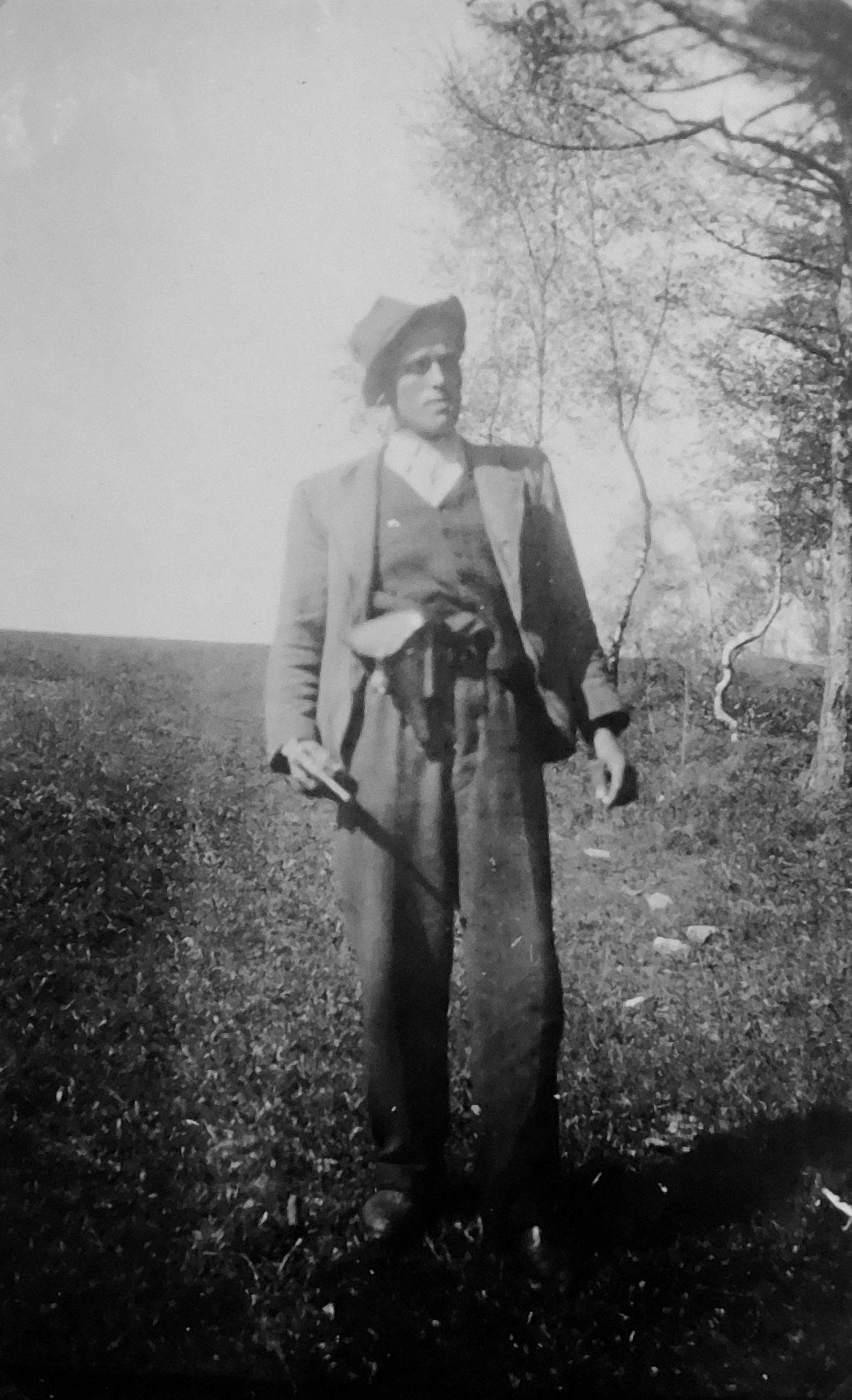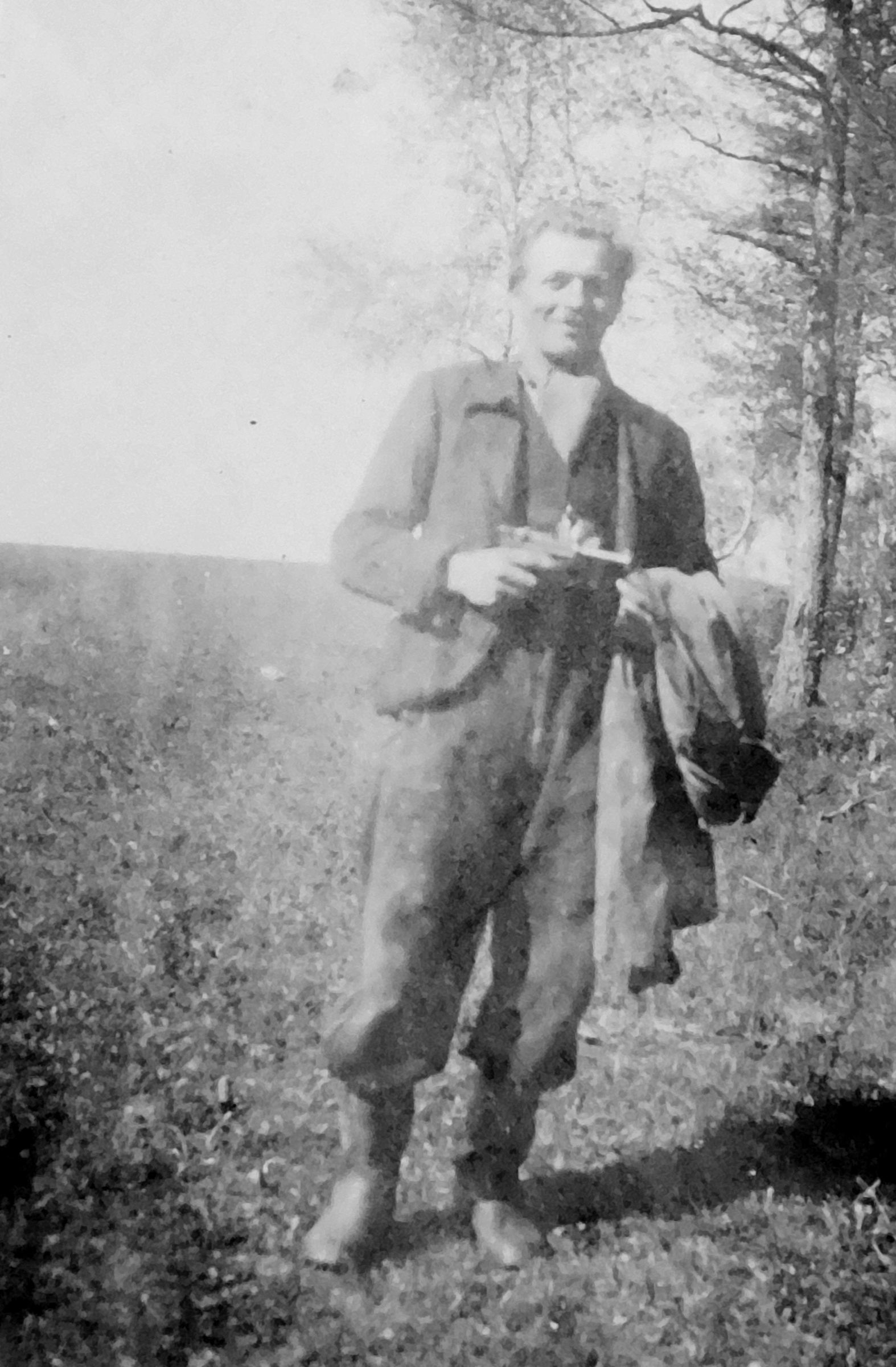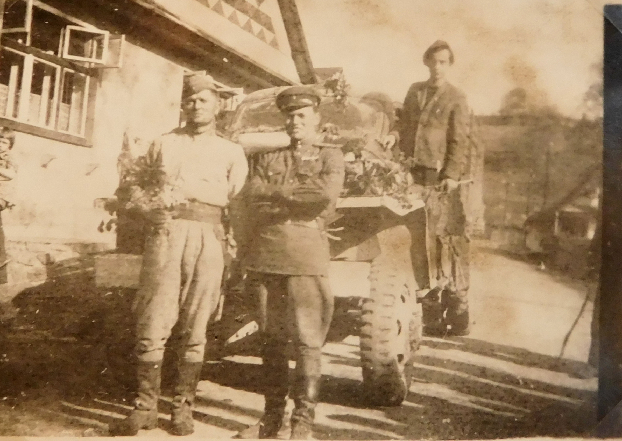 „Partyzáni v neděli odpoledne 6. května sešli do obce. Byli tři nebo čtyři. Od Hostic přijelo auto s německými vojáky a chtěli se ubytovat ve Štědrákově Lhotě. Za nimi jel ještě motocykl, a jak partyzáni viděli, že jsou to Němci, začali po nich střílet. Stalo se to kousek od našeho domu, prakticky u Vršných. Byl jsem u toho s partyzány. Jak začali střílet, tak auto začalo couvat a partyzáni vyběhli na kopec na Starou pec, odkud bylo vidět na silnici, a tak stříleli dál. Auto zůstalo nepohyblivé stát pod prvním statkem a Němci vyběhli do lesa a utíkali zpátky do Hostic, kam se vrátil i motocykl. Z Hostic pak Němci do Lhoty poslali obrněnku. Ještě než obrněnka dojela, tak jsem šel s partyzány do auta, kde partyzáni posbírali všechny zbraně. Uviděl jsem tam fotoaparát, tak jsem si ho vzal.“