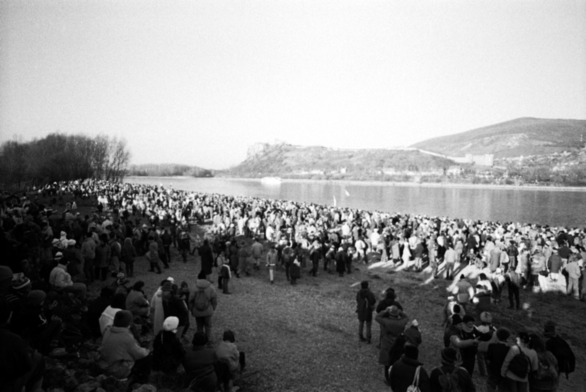 • “The idea was that after freeing the customs, Bratislava citizens would walk to the other side of Danube, opposite to Devín Castle, to the Hainburg side of the river, and they would greet the Hainburg’s mayor. The second group of Bratislava citizens would be at Devín Castle. There would be a boat sailing on Danube, where the loudspeaker system would be installed, loud enough to be heard on both sides of the river. On the boat there would be Karel Kryl playing to both Slovakia as well as Austria. This idea seemed to me the best way how to appeal to both riversides as Kryl worked in emigration in Free Europe, whereas he still stayed in Czechoslovakia and Slovakia present in his songs. Both groups on the riversides and people at Devín Castle would have microphones connected by transmitters with the loudspeaker system on the boat, where would be Kryl, and everything they would say would be heard on both sides. It would be such a first bridge of understanding. Even though the realization wasn’t easy, enthusiasm of people was immense. At first, when it was announced, there was a great shock in official spheres. However, as soon as it spread out among Bratislava citizens, everyone awaited December 10, 1989. More times Martin Bútora and I went to negotiate to the Border Guard’s Headquarters, which was on the way to Devín next to a quarry. We could feel how they gradually receded at the headquarters and then we only solved the operating issues. So the main problem of carrying out the event or not was solved from our side. Of course, we, the inexperienced enthusiastic revolutionaries, didn’t realize the fact that we interfered in competences of our Border Guard, but at the same time we also were about to open borders into foreign state which was during the past 40 years considered to be a war enemy. Without visa and elementary diplomatic actions. The period in which we lived was so amazingly, even though hectically, but positively oriented, that after dealing with our Austrian partners, including the mayor of Hainburg, they agreed on everything. Otherwise there were risks of problems not only from our Border Guard, but also from the side of Austrian customs guard.”