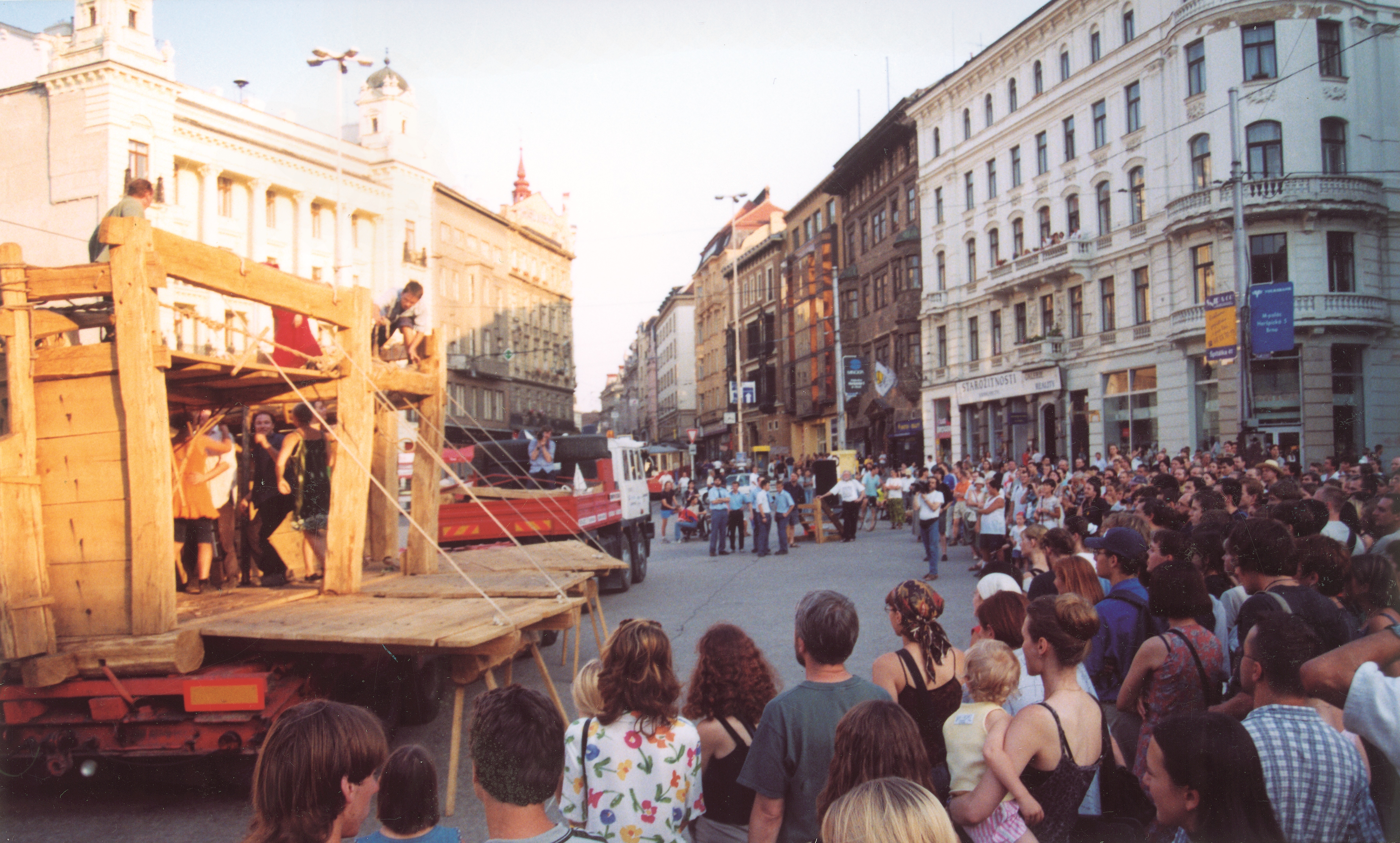 „[…] v pondělí v půl desáté, v deset hodin vzniklo Občanské fórum výtvarníků a Občanské fórum výtvarníků mělo najednou k dispozici celý barák. Okamžitě začala práce: vybírání peněz na studenty, tištění plakátů… Rychle jsme zabrali i všechny ostatní výstavní síně v Praze a to byla obrovská výhoda oproti divadlům, [protože] výstavní síně jsou v naprosté většině případů u chodníku, mají velká výkladní okna a třeba taková Špálovka se stala obrovským informačním centrem pro běžné lidi. Výtvarníci měli kontakty v tiskárnách a sami hned vyrobili plakáty, které měly ne amatérskou, ale dokonce i profesionální úroveň. To všechno se rozjelo úplně neuvěřitelným tempem ten první den.“