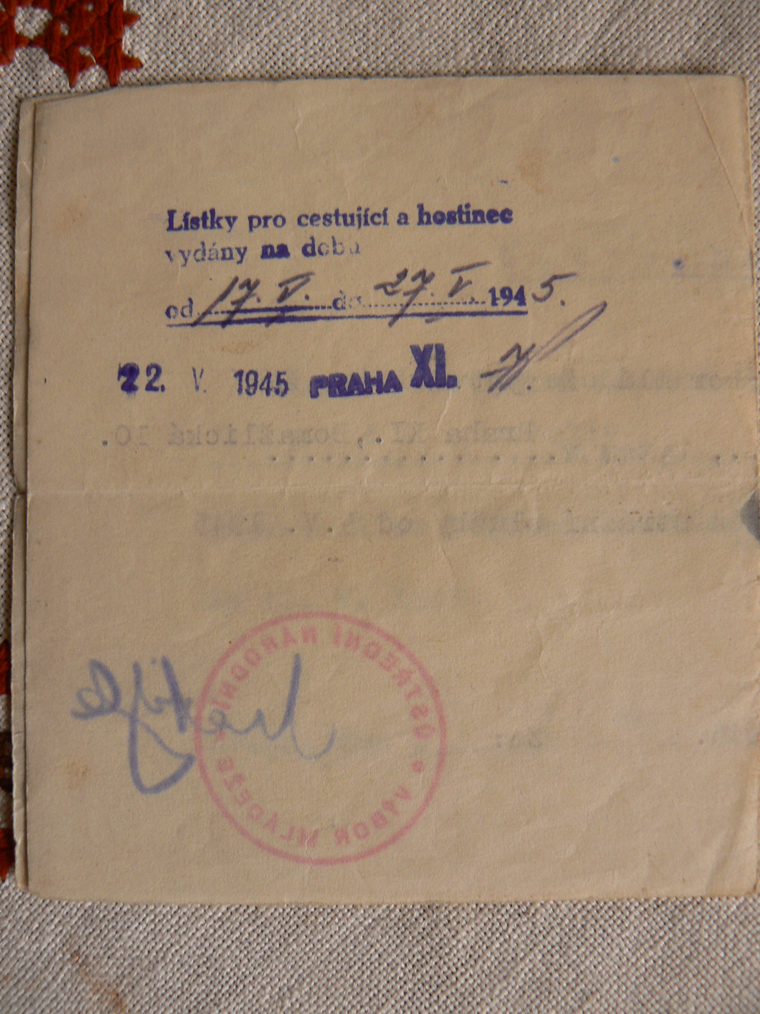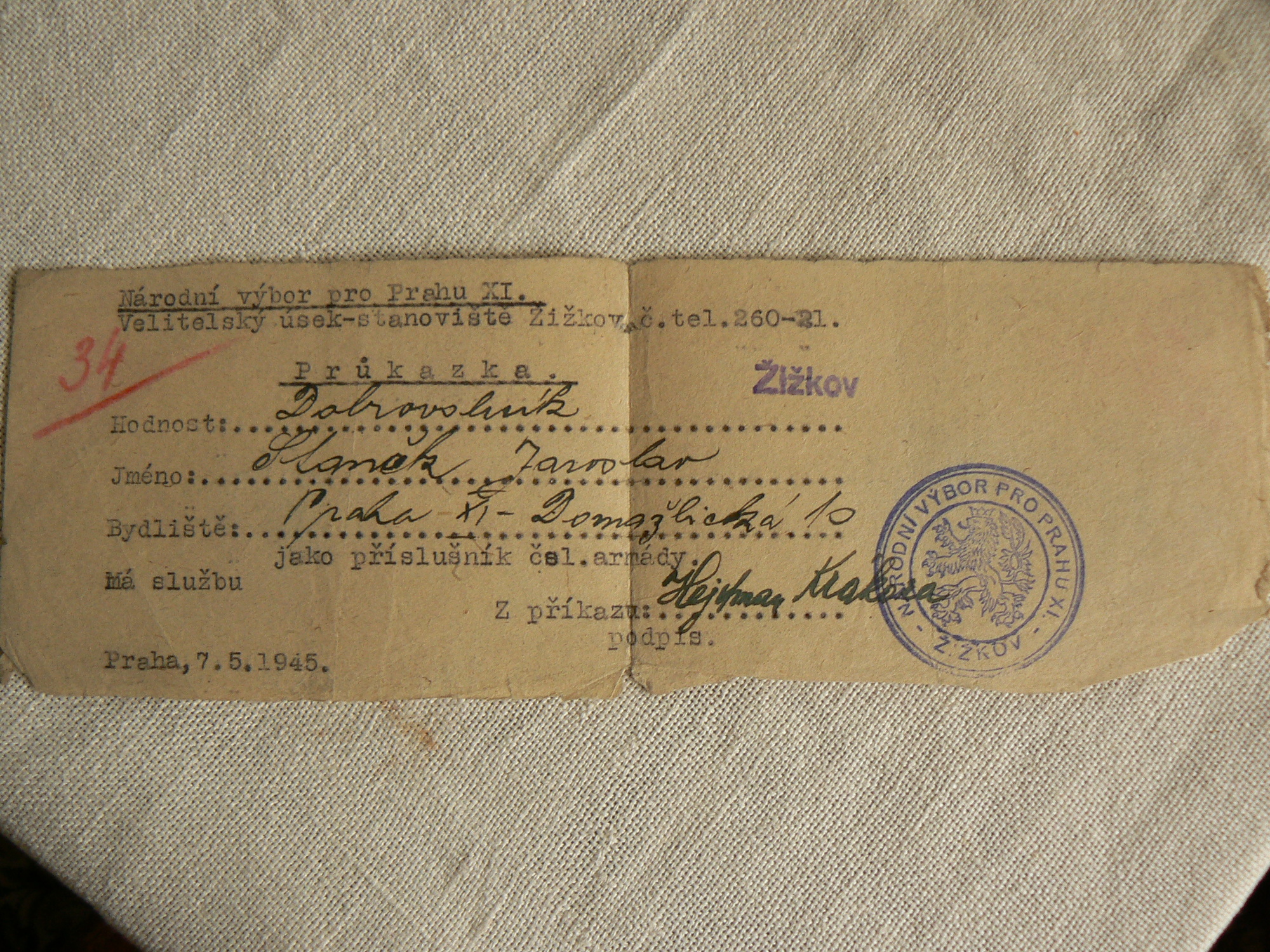 „Jeden podvečer jsme jako skauti strávili u ohně nedaleko Pražačky s ruskými vojáky. Byli tam ubytovaní. Přinesli jsme kytaru a já starou mandolínu. Rusové zpívali tak nádherně, měl jsem pocit, že jsou smutní. Tak jsem tomu vojákovi, který tak krásně hrál na moji mandolínu, řekl, aby si ji nechal. On mi moc děkoval, nějak ho to dojalo a řekl, abych počkal, že mi něco přinese. Přinesl mi z té školy německou tornu, stanový dílec, polní láhev a řemen.“