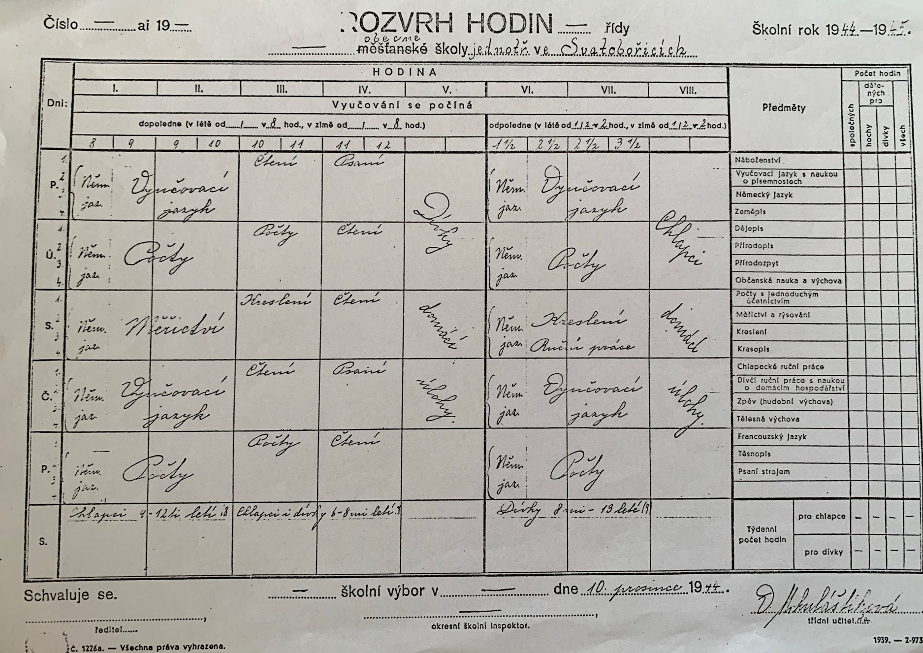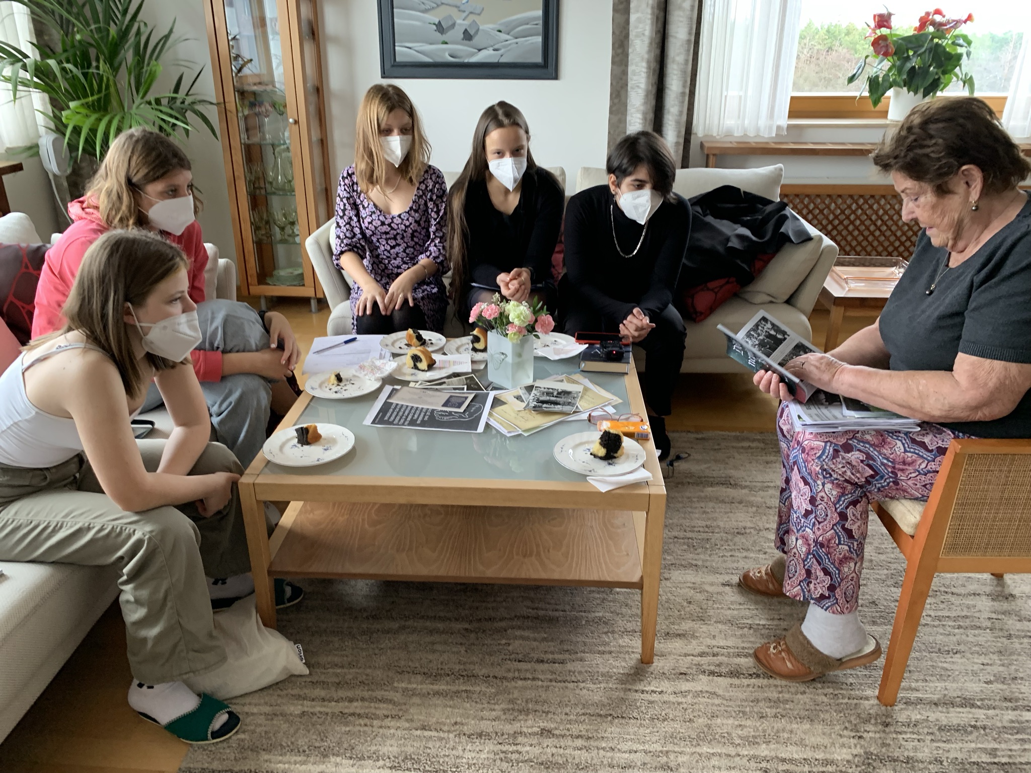 • „Ve Svatobořicích jsme byli v odděleném baráku – říkalo se tomu kinderheim – a teoreticky k nám nikdo nesměl. Prakticky tam byl v té době velitelem tábora nějaký Němec jménem Schuster a ten nakonec povolil, že se děti mohly učit. Bylo to základní učivo – čeština, počty... Paní učitelka učila starší děvčata i francouzsky. Právě se tam ukázalo, jak to bylo špatné na té Jenerálce, že tam se děti učit nesměly. Zvlášť ty, co začínaly, v podstatě začínaly znovu. Ale já jsem se tam nějakým záhadným způsobem naučila číst. Takže když jsem pak přijela po válce do toho Kaznějova k rodině té babičky Vyhnisů, tak děda byl už doma, četl noviny. Já jsem říkala: ‚Dědo, já si budu číst s tebou.‘ A on mi řekl: ‚Vždyť neumíš.‘ A já jsem řekla: ‚Umím!‘ Takže jsem pak šla v září v šesti letech do první třídy a uměla jsem číst.“