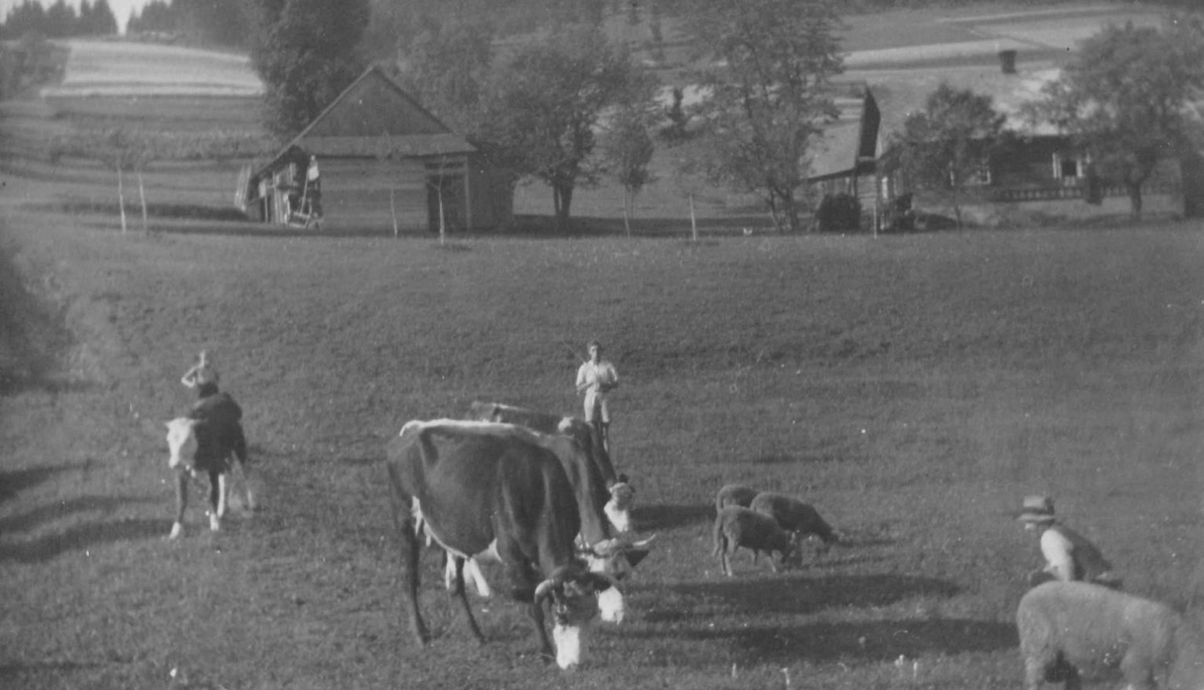 „Tady to si pamatuju jak dnes. S dědou jsme pásli krávy na otavách, už se nepáslo nahoře, jen kolem chalup. A aby nešly na sousedovo, museli jsme jim bránit. Bylo po ránu a najednou se začalo střílet, bylo to slyšet. Děda pravil: ‚Ej, něco sa děje.‘ A potom víc a víc se střílelo a začali i jezdit zezdola financi [němečtí celníci]. Němci si povolali posily a ti, co stříleli, těch bylo hodně. [Partyzáni] byli na tahu a kdesi se srazili s hlídkou. Ta utekla, financové tam zalehli a už stříleli. Je tam taková kaplička na kopečku a od té stříleli [partyzáni]. Němci přijeli autem, vyskákali z něj a nechali ho tak a to jim rozstříleli. I motorku. Měli i psa velikého a i toho jim zastřelili. Němci šli potokem, aby se kryli. Bylo tam chrastí, vrby a křoviny, jenomže ti byli vysoko a dobře na ně viděli a stříleli. Myslím, že dva zabili nebo kolik a poranili. Ale oni [partyzáni] také dostali.“