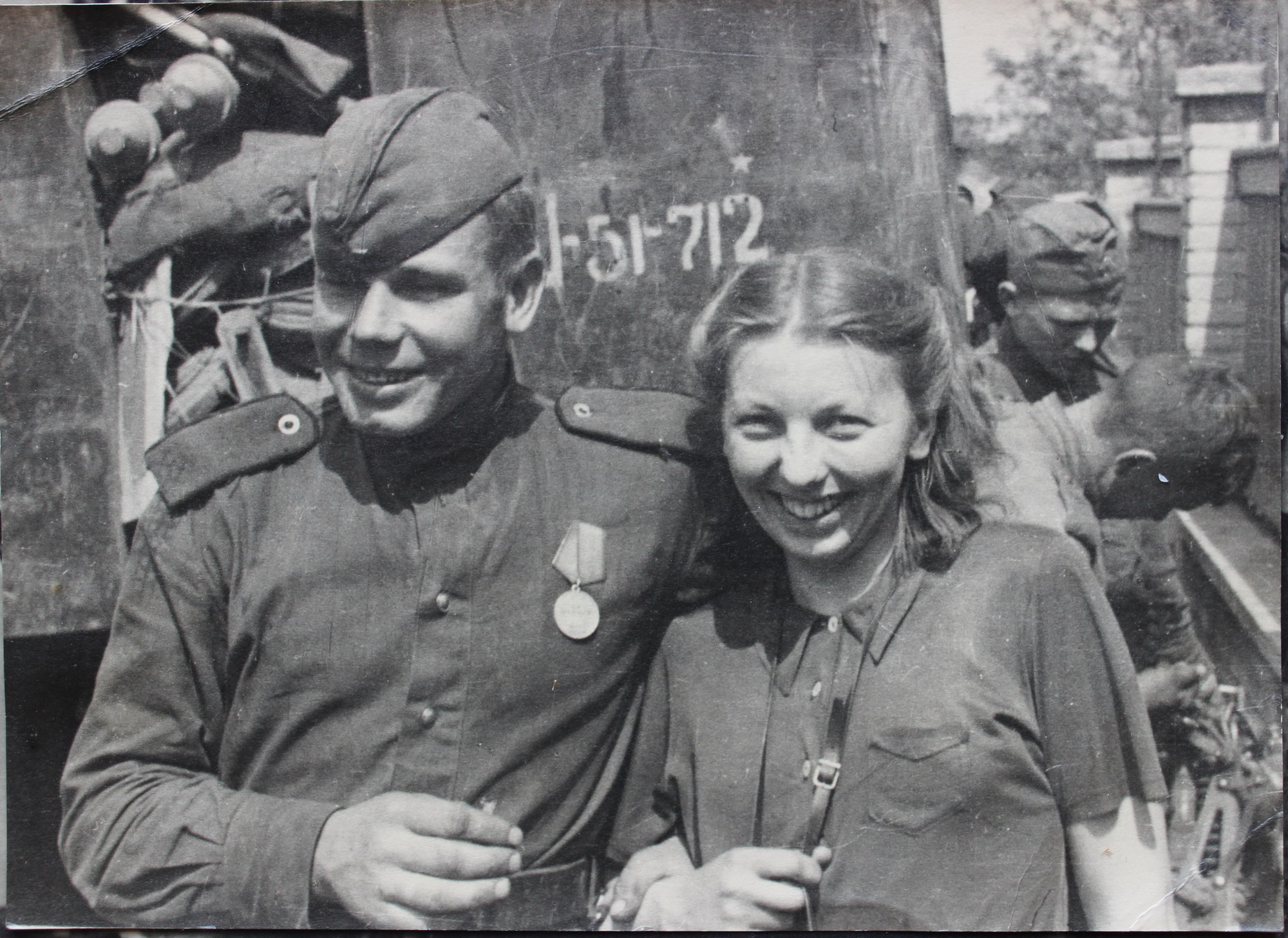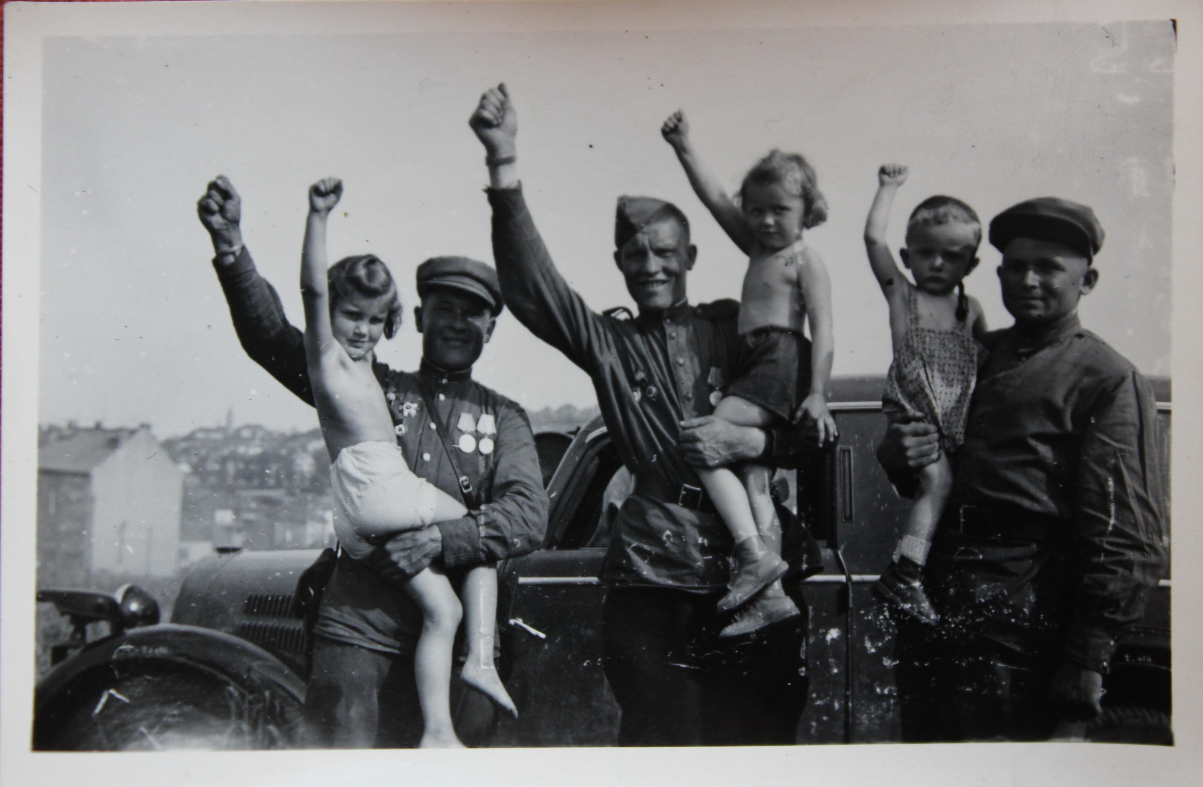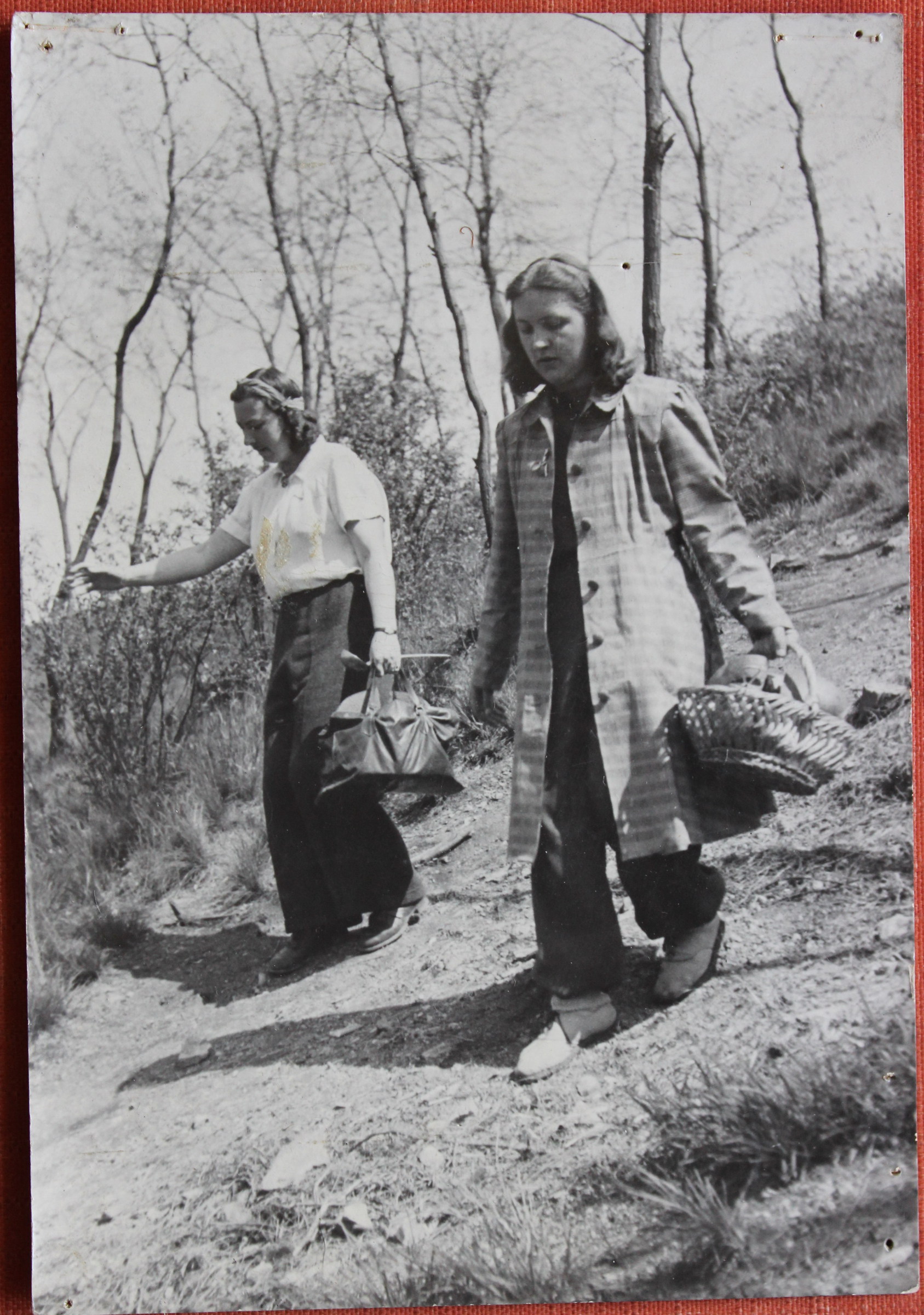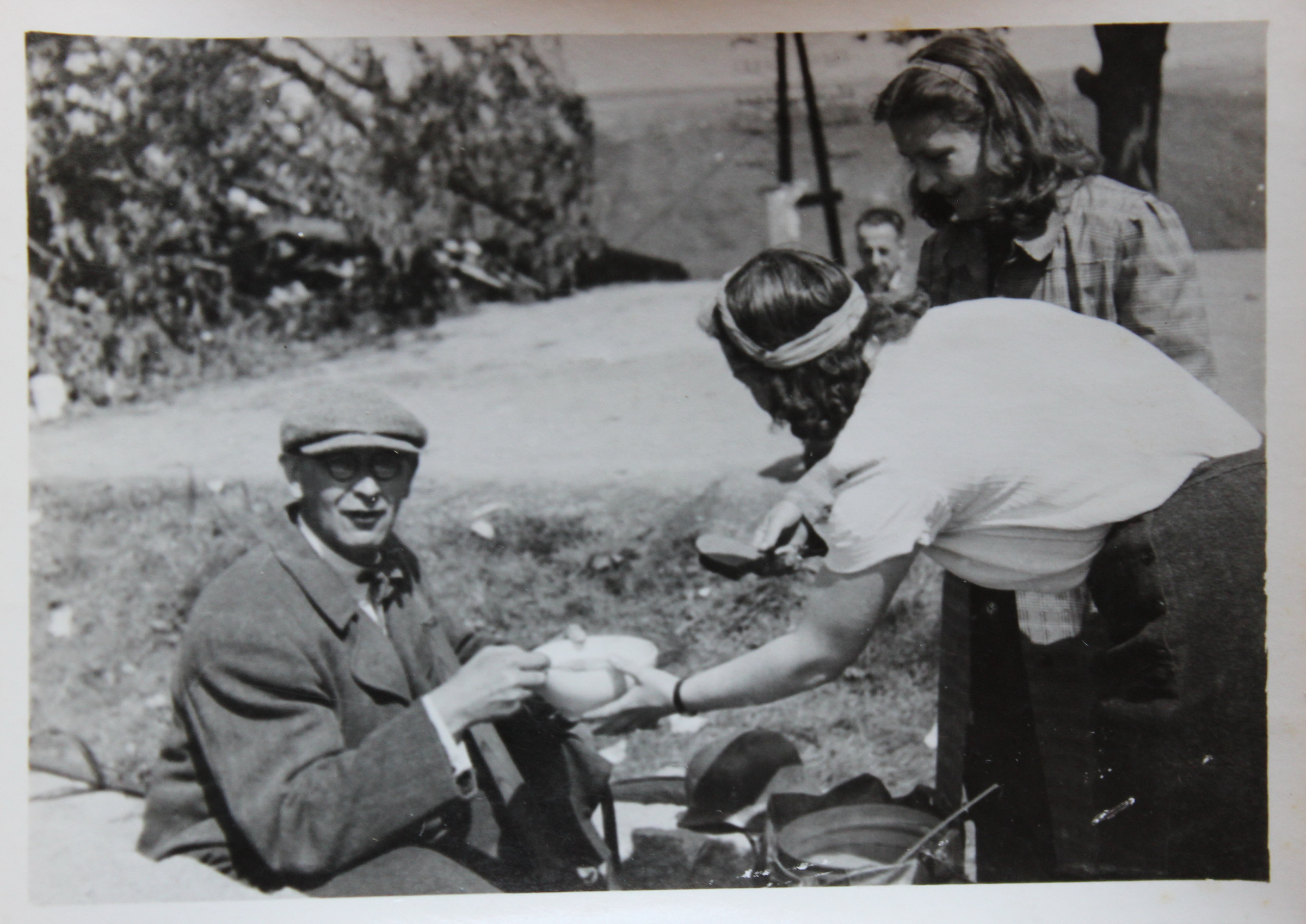 „V koši nese jim jídlo, a to je tam na tu Horoměřickou, já jsem si to tam připsala, kam to nesou. Tam byla barikáda, protože se báli Němců, kteří byli ubytovaní tady dole, co je tam takový zámeček (Jenerálka). Chystali se do Prahy. To už byly špatné zkušenosti s tím, co tady prováděli Němci. Teď si nevzpomenu, kde všude… Hnali lidi před tanky. Tak tam měla ta barikáda zabránit Němcům, co tam byli ubytovaní, ke vstupu do města. (Tu fotku jste pořídila vy, nebo otec?) (…) Jak jsem říkala, my jsme fotografovali všichni tři. Já, manžel a otec.“