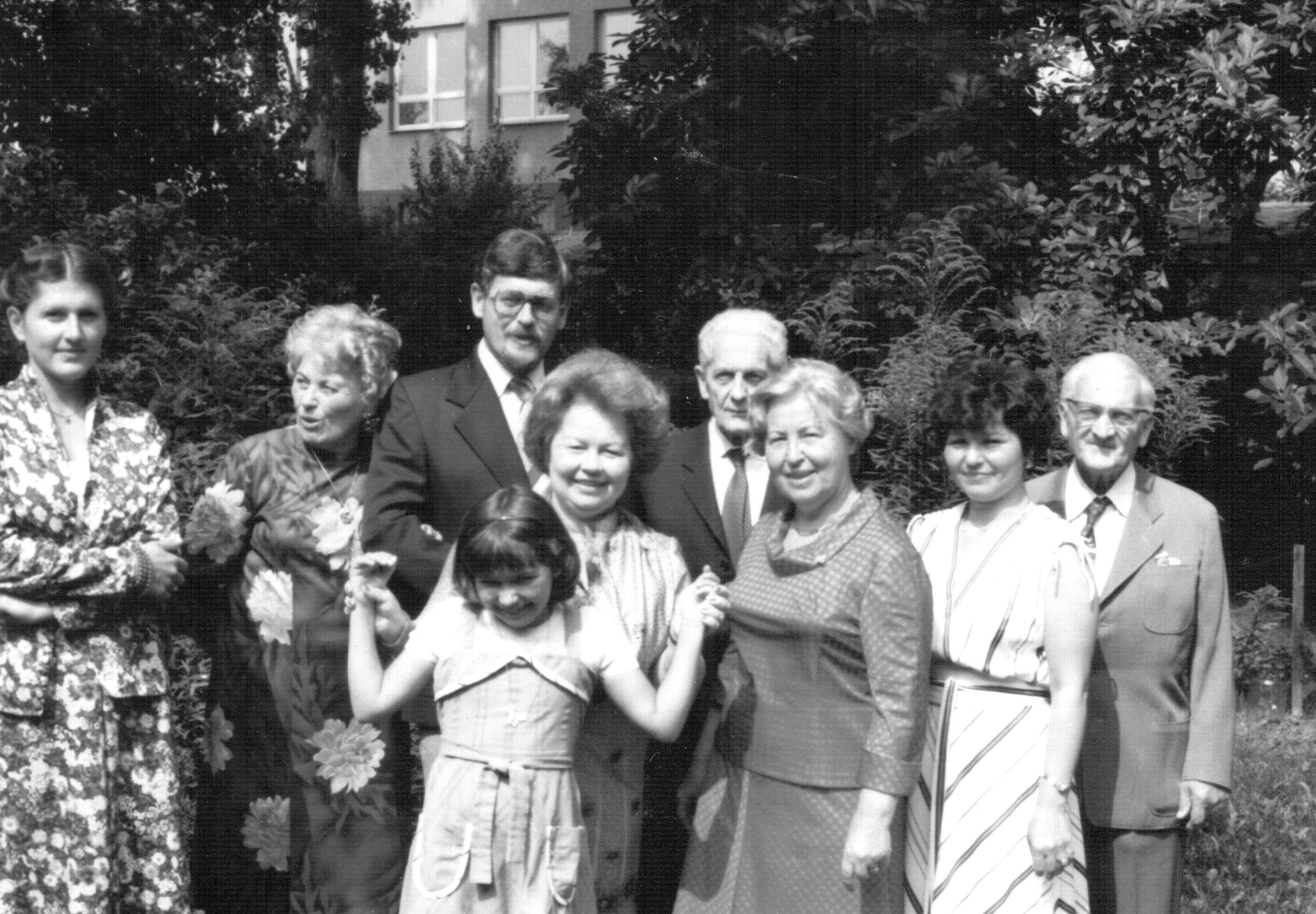 Doma na zahradě – v zadní řadě zleva sestra Aranka, matka Květoslava, Ladislav Šupka, otec Ladislav, manželka Marcela, strýc Bohumil Šupka, vpředu tchyně Irma Harnachová s dcerou Kateřinou a teta Emilie Šupková (1980).