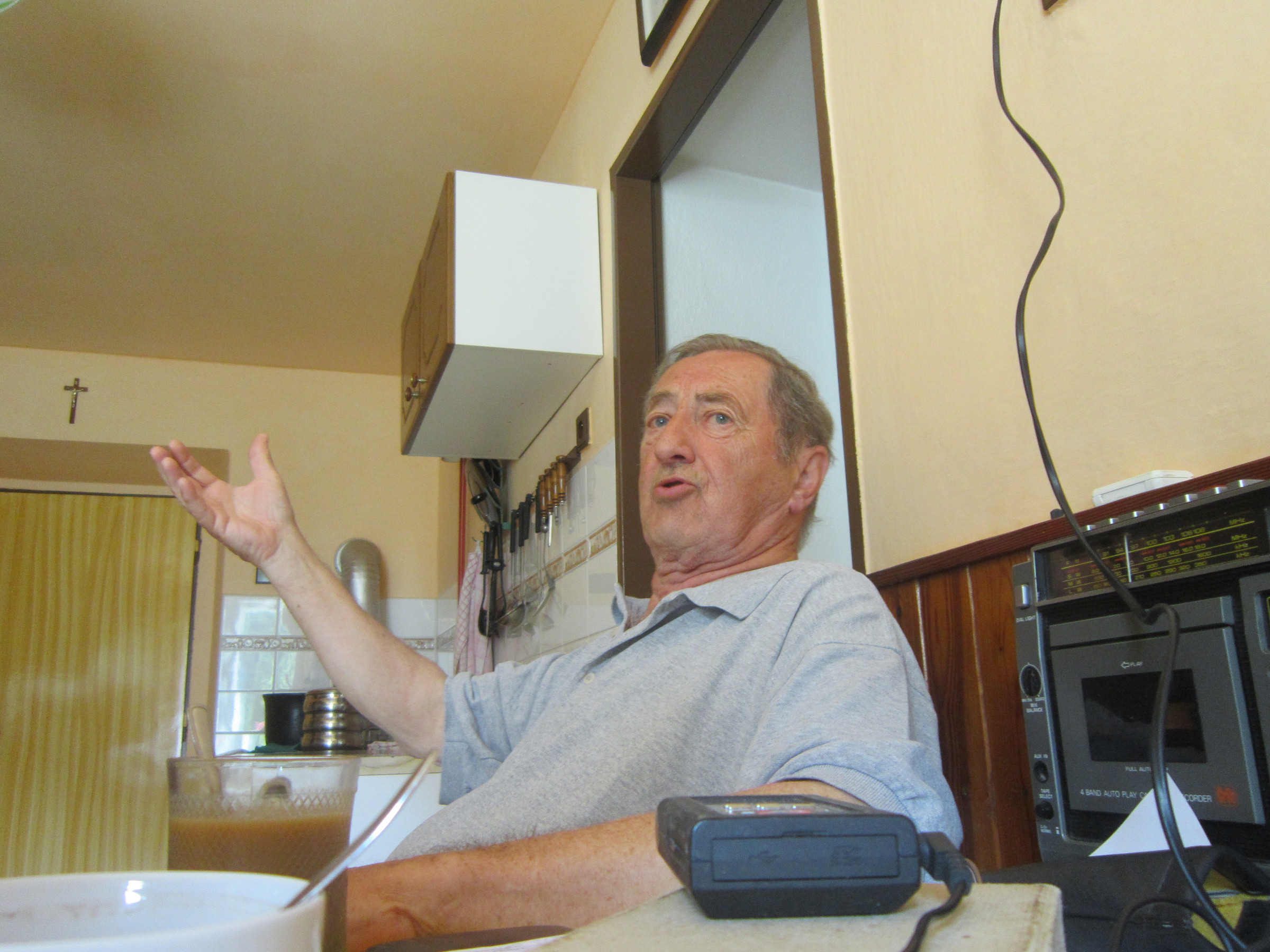 • „Babička se těsně před vánočními svátky roku ’44 vydala za synem Rudolfem do Wroclawi. Jela vlakem vrchem přes Gluchołazy. Tehdy už měla pětašedesát let. Vzala mu civil, aby dezertoval a vrátil se s ní domů. Teď odskočím. Mluvil jsem tady s nějakým Čechem z Šumvaldu, který byl v Německu na práci. Dělal topiče na lokomotivě a jezdil mezi Berlínem a Wroclawí. Říkal, že tam potom byly obrovský boje, jak začali Sověti útočit na Odru. On měl strach. Tak jistě, všude kontroly a jako zběh by dostal smrt. Ale babička říkala, že celá řada lidí projela a nekontrolovali je. Tak nepořídila a vrátila se bez něho domů, protože jí říkal, že už má jet, že za chvíli začnou vyhazovat mosty a už se domů nedostane. Tak to ještě stihla a vrátila se domů. My jsme to potom honili přes Červený kříž. Nikdo nic nevypátral. Je nezvěstný. Při tom marastu ve Wroclawi zřejmě přišel o život.“