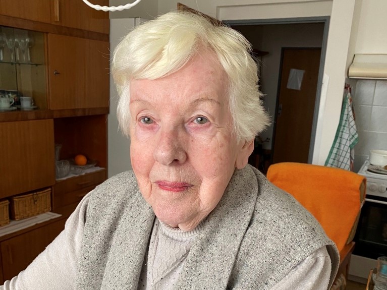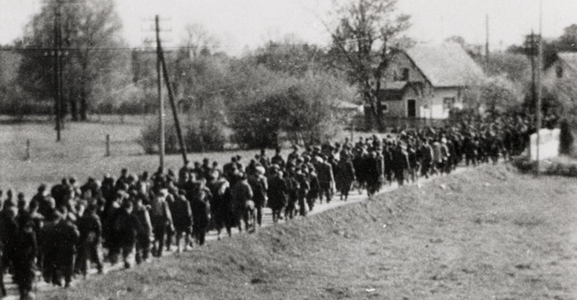 "Bylo mi něco přes osm let. Když tam chodívaly vždycky večer pochody smrti, jak jsme tomu říkali. Maminka si zjistila, že to jsou většinou vyhladovělí lidi, tak koupila – to dělali většinou i vedle ti lidi – bochník chleba a krájela vždycky nějaký ten krajíček chleba, těm zbědovaným lidem to dávala. To byli hrozně zbědovaní lidi. Kdybyste viděli – ty jejich cáry pruhované na nich visely, propadlé lícní kosti jste viděli a velké oči a zbědované lidi. Strašně zbědované. Hladové. Bylo vidět, že je i mučili, že je i kopali. I za naší zahrádkou tam jednoho ukopali, to byl snad Polák taky, žadonil o krajíček chleba, tak ho tam ukopali. To všechno jsem slyšela jenom v krámě u dědečka, když se chodili lidi stříhat a holit, tak tam se o tom povídalo. Jinak přede mnou nic takového neřekli, já jsem byla jako v bavlnce."