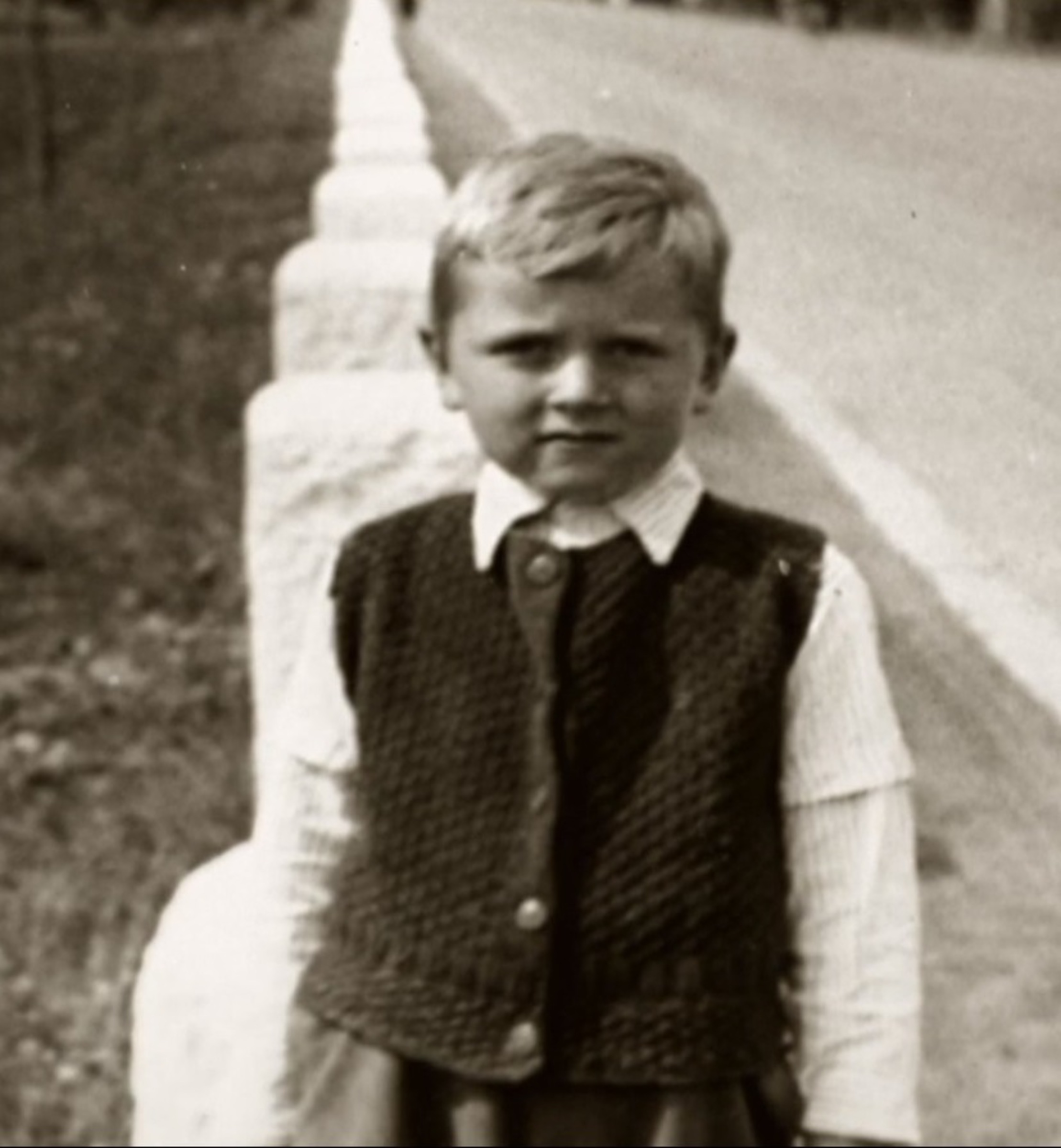 • "A já jsem k pěti letům dostal koloběžku, byl jsem se projet po silnici, na které jsme si jinak i hráli, běhali jsme po ní, prostě tam nic nehrozilo, jenom na Hitlerovy narozeniny, což bylo tuším 20. dubna, vždycky jel jeden autobus do Zbraslavi na počest Hitlera. A já jsem si tam projížděl na koloběžce a proto, že náš dům, ten kde jsme bydleli v pronájmu, stál hned vedle silnice, tak jsem bez ohlédnutí do něj zajel, jenže za mnou zaskřípaly brzdy a zastavil se německý vojenský terénní vůz, který jel rovně a nepočítal s tím. Já jsem samozřejmě nedal znamení, že budu odbočovat, a on prudce zastavil a někdo na mě začal německy křičet - nějaký důstojník a ještě tam seděl, jak jsem viděl, vyšší důstojník vedle něj, on ho vezl a začal na mně něco německy křičet a já jsem samozřejmě německy nerozuměl, ale tatínek byl na zahrádce toho domu a německy mluvil, takže slyšel, co se děje a vyšel ven a ten důstojník, jak mě otec pak přeložil, na mě křičel: ty parchante, kvůli tobě se mohl zranit německý důstojník a mého otce na té ulici zfackoval."