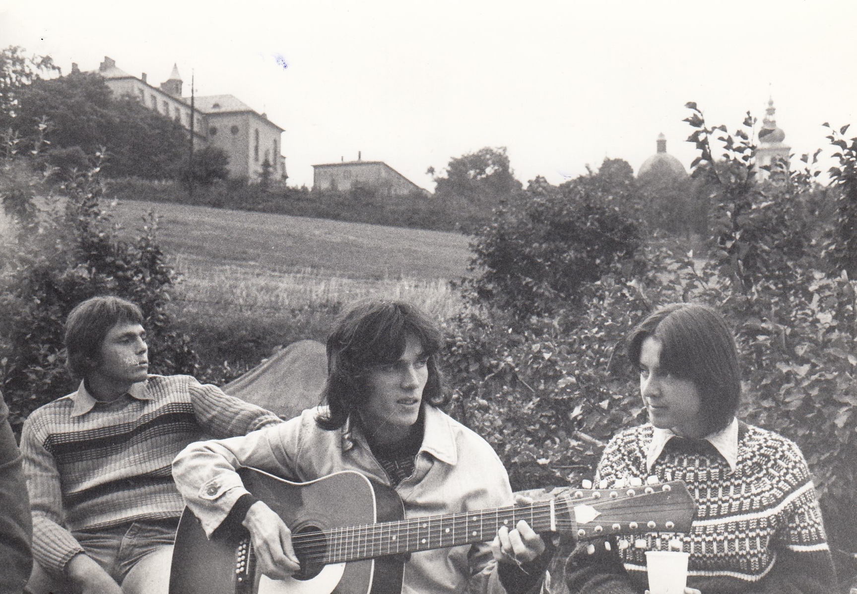 „Když bylo odhalení té sochy – ale to je fakt, lhát nemůžu, jak je Pán Bůh nade mnou a místní zákon ve mně, nebo to je naopak – opravdu jsem vlezl... Táta byl dobrý v tom, že mně dělal třeba [věci] na praky. Protože my jsme byli fakt kluci. Já jsem sice, když tamhle lezl k sousedům v zahradě, ujela mu noha a řekl: ,Kurva,´ tak jsem dal ruce takhle a řekl jsem: ,Odpusť mu to.´ Tak jako že takhle to bylo dvojí. Hra a jakési charakterní vědomí, vědomí o tom, co se má, co se nemá. No tak šuspraky nám, letecká guma se tomu říkalo, to jsme si udělali sami a táta mi dal kůži a kuličkami jsme metali, kuličkami hliněnými, kterými se hrálo do důlku. Já jsem si stoupl na půdu za komín, a když tam zpívali – kolem toho paní učitelka, tedy soudružka učitelka Myšková se svým pěveckým sborem žáků v těch pionýrských šátcích –, tak jsem párkrát... odboj, prostě byl odboj. Do toho hloučku jsem pustil pár těch kuliček a bylo fajn, jak se všichni pohnuli. A tak jsem odbojoval."