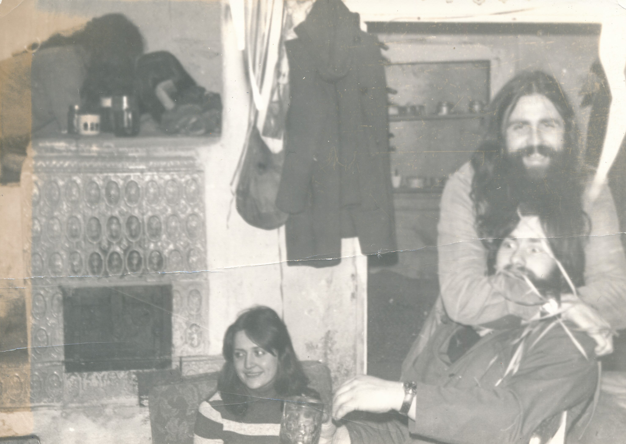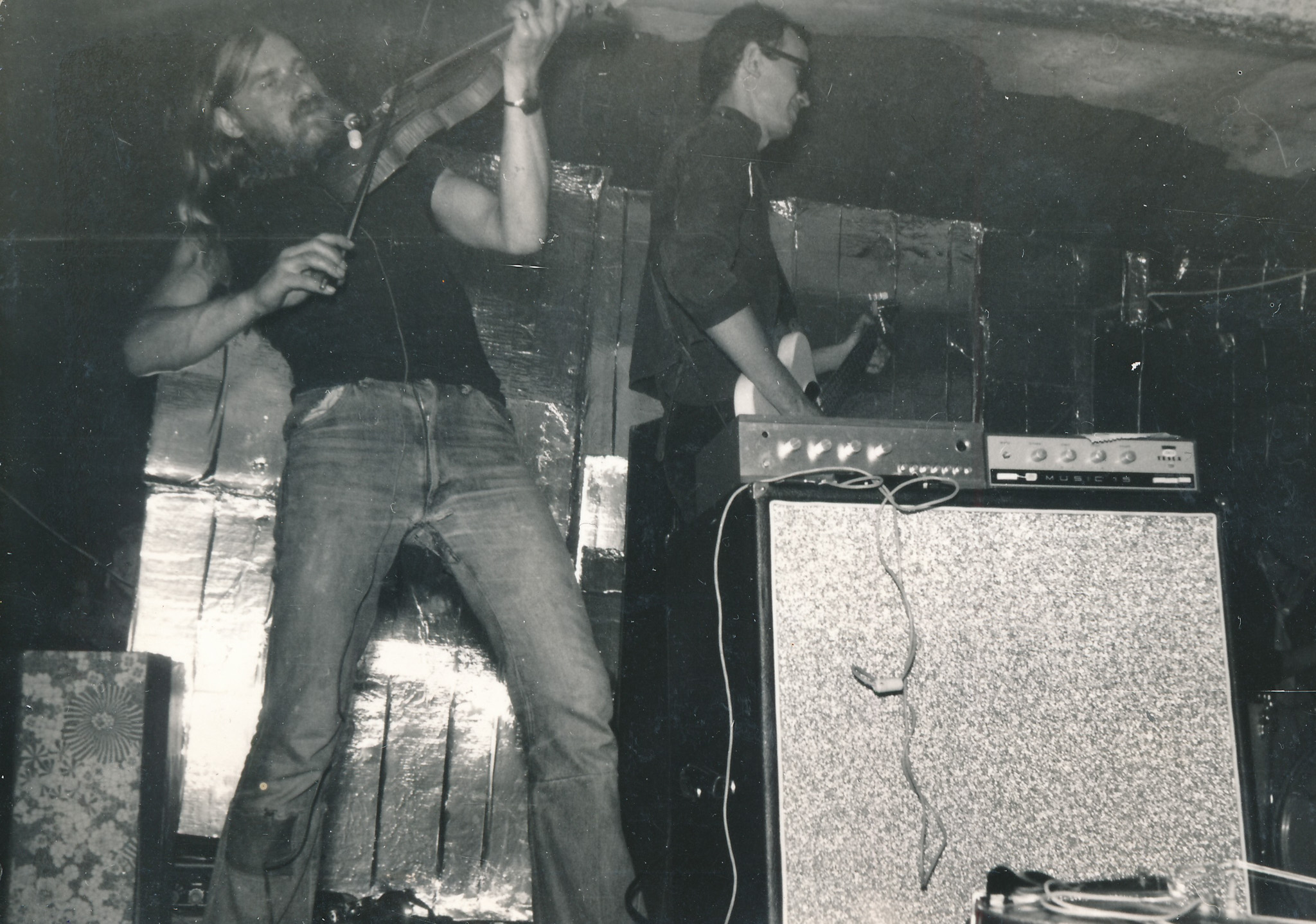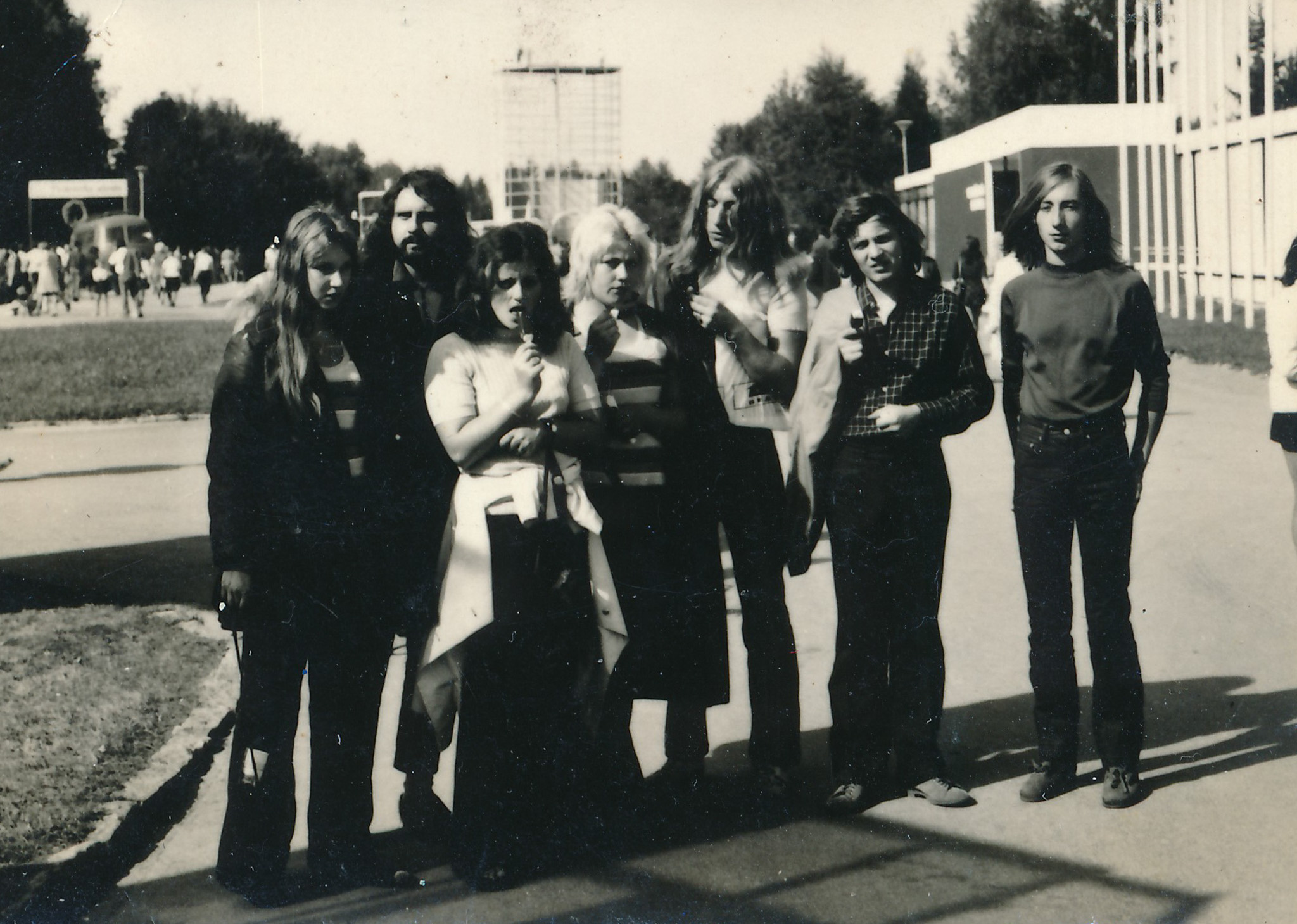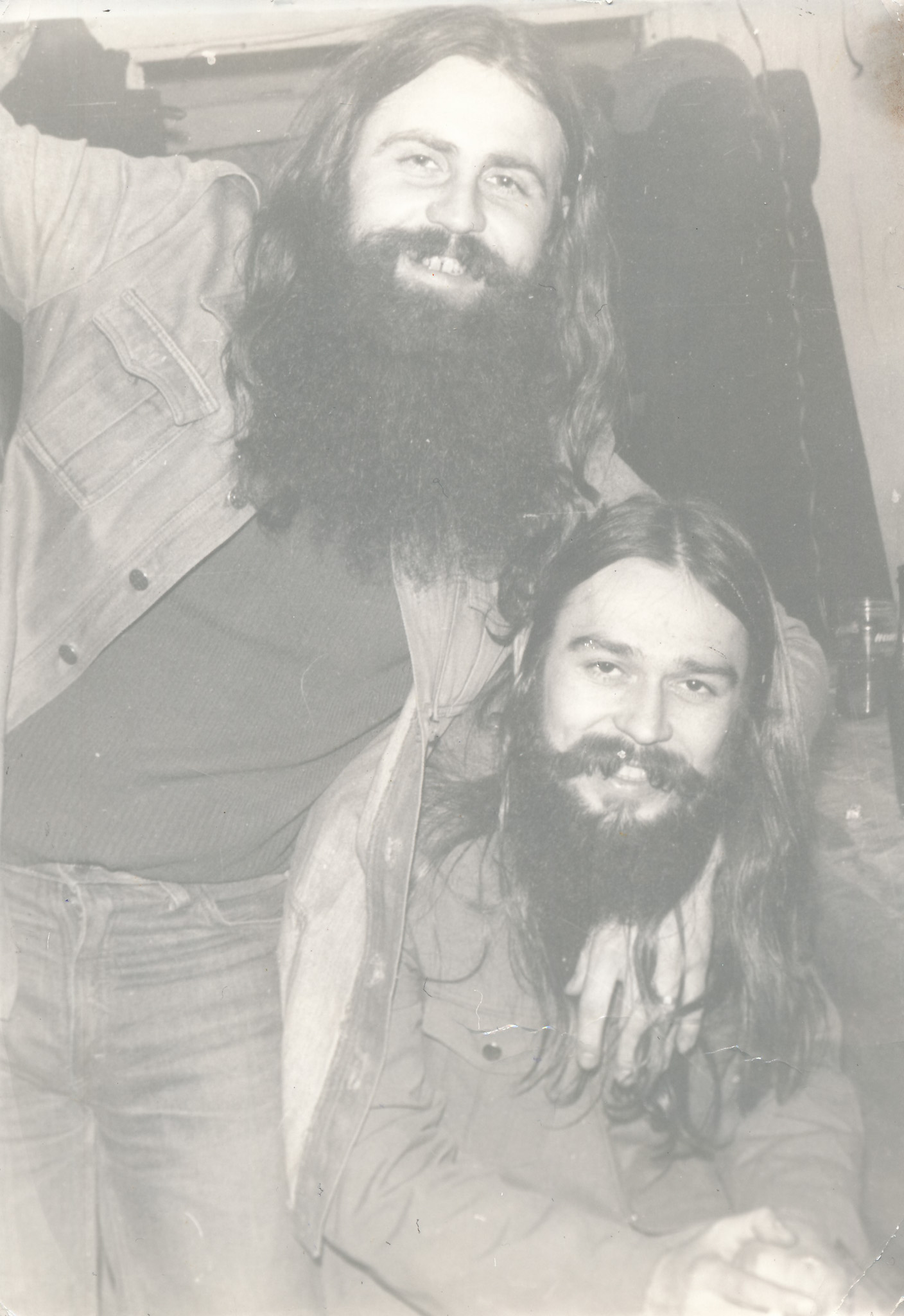 Vlastimil Vincenec (zprava) s krátkými vlasy, krátce po koncertu Na Americe, kde ho VB ostříhala, 1974