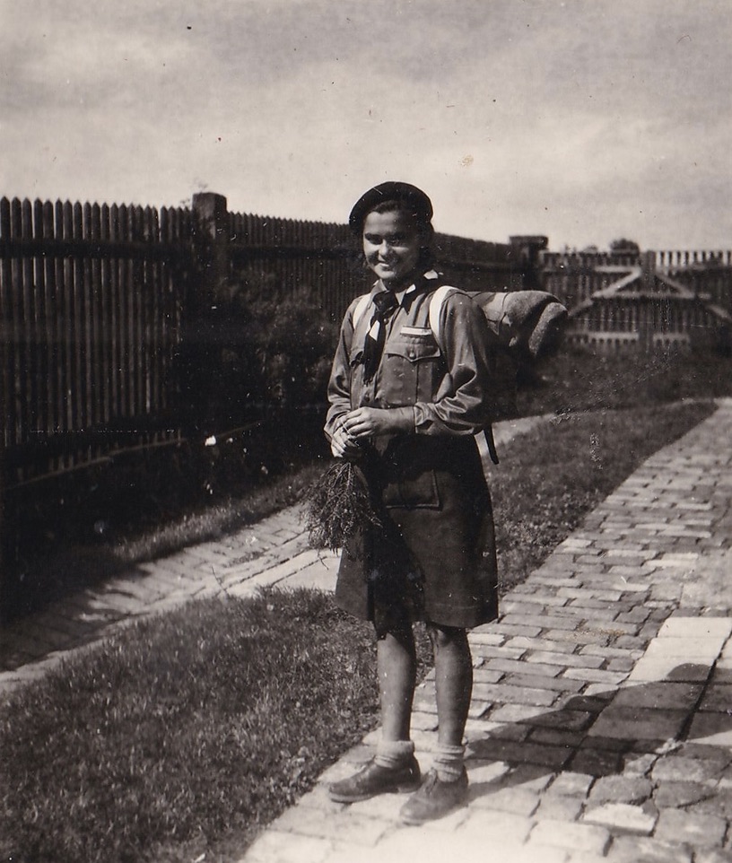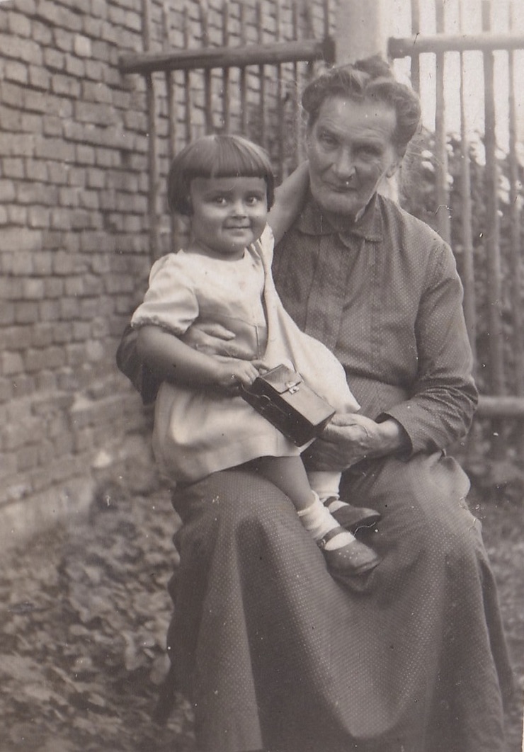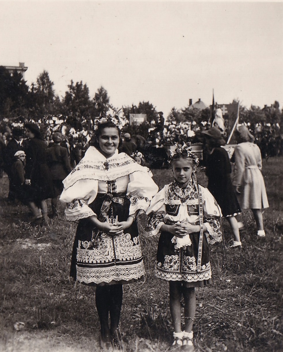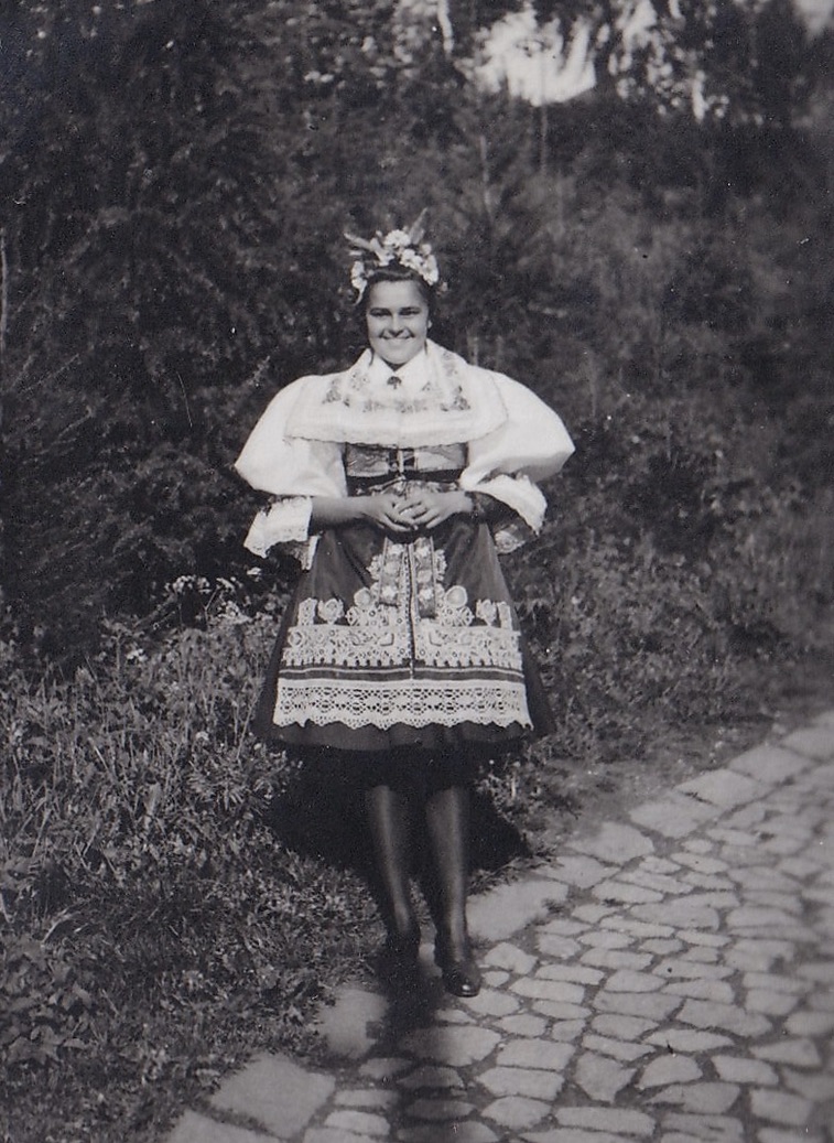 „Ke konci války jsem vyšívala kyjovský kroj. Maminka měla knížku, kde byl kyjovský kroj a podle toho jsme měly vzorky. Černě jsem vyšívala rukávy i ten ohromný límec. Na kordylku jsme přišívaly lesklé kamínky. Dříve se prodávaly červené sukně, na kterých byla ta jablíčka už vytištěná, ale já ji neměla, protože ve válce takové věci nebyly. Jenomže můj děda pracoval na radnici a tam mu dali jeden červený německý prapor. Tak maminka vypárala ten hákový kříž, vyprala to a já jsem na ten červený prapor vyšila ta jablíčka, co měla být na kroji.“