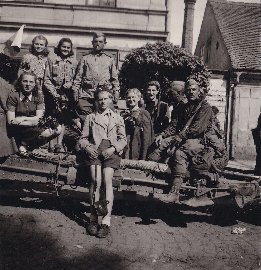 „Já jsem šla a kolem mě jezdily německá auta. Nad nimi jsem poprvé viděla helikoptéru. Říkám: ‚Bože, co se děje?‘ A potom mi taťka říkal: ‚No jo, to jel do Velichovek Ferdinand Schörner.‘ A potom, když byl konec války, tak jsem šla zase ze školy a zase kolem mě jezdily auťáky směrem na Velichovky. Jely kolem nás, já jsem se koukala a říkám si: ‚Pro Krista Pána, co je tohle zase za národ?‘ Měli takové hnědé uniformy, jiné čepice, a mávali na mě. Pak přišel taťka a říkal, že to byli Američani, co jeli zatknout generála Schörnera do Lázní Velichovek. Ale on už tam, potvora, nebyl.“