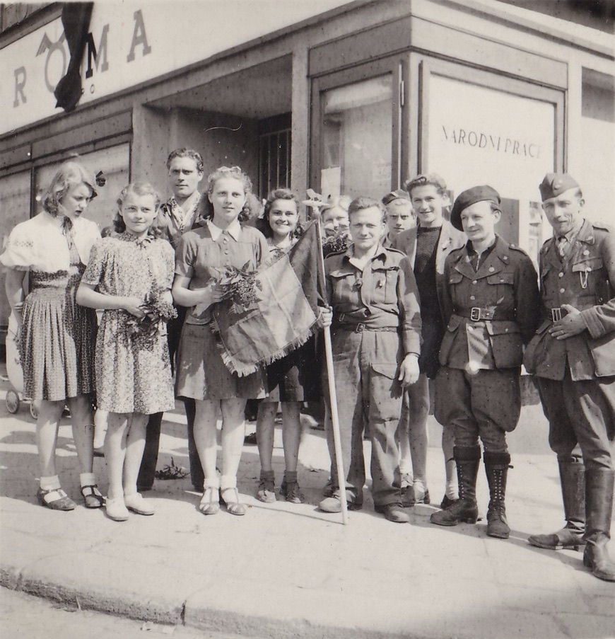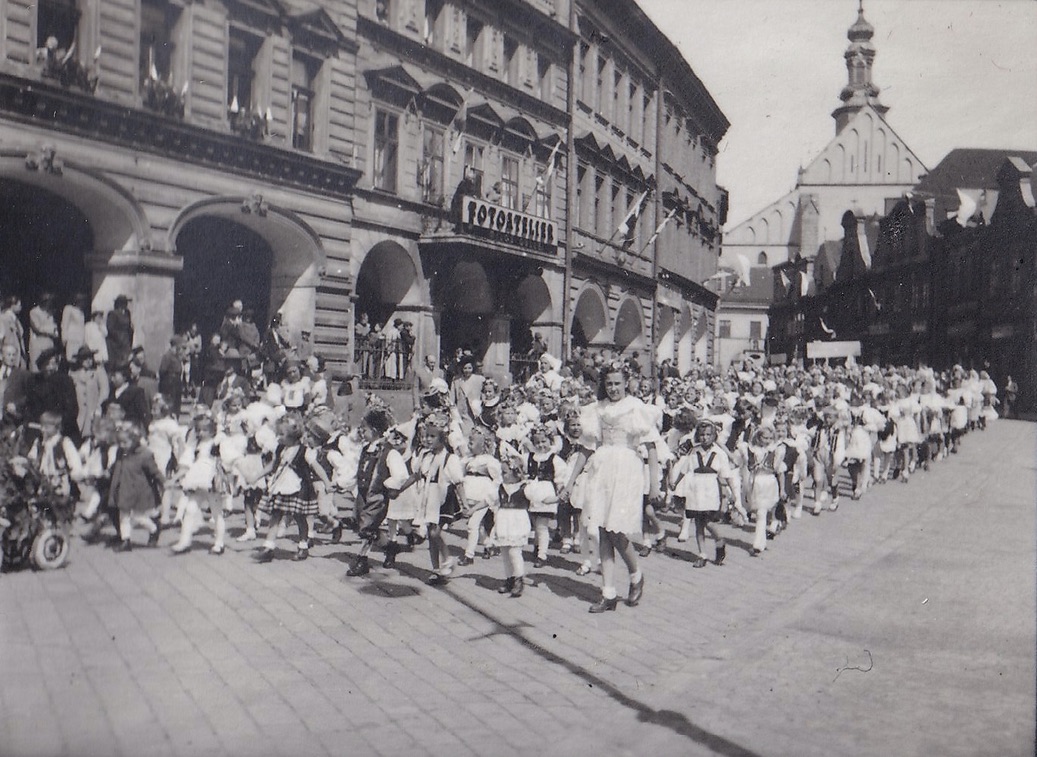 „Šla jsem do práce, dcerce bylo asi devět let. Říkala jsem jí, že nikam nesmí. Tak ona byla doma. Náš šéf nám řekl, že kdo má děti, ať pro ně zajdou. Ať si vezmou nějakou hru nebo karty a že tu budou s námi až do večera. Tak jsem běžela domů pro dcerku – a teď jsem šla a potkala jsem syna. Řekla jsem mu, ať vezme doma tašky a jde koupit něco k jídlu vedle do krámu. Vzala jsem Věru, došly jsme až k poště a zrovna někdo volal, ať se schováme. Tak jsme honem skočily za poštu a před poštou tam zastřelili paní Livečkovou. Utíkaly jsme pak kolem divadla, pak ke kostelu a jen jsme slyšely, jak za námi zase střílí. Doběhly jsme do kanceláře, děti už si začaly hrát, ale já jsem myslela pořád na Petra, aby se mu nic nestalo. Asi za půl hodiny se otevřely dveře a stál tam Petr celý špinavý a uválený. Říkal: ‚Mamko, já jsem poprvé zažil, co je to k zemi.‘ Zrovna začali střílet, když byl u divadla, tak lehnul za auto, zůstal ležet a zrovna před ním zastřelili nějakého pána. Přiběhl, takhle se klepal, tak jsem s ním šla na toaletu a trochu jsem jej očistila. Napil se vody a říkal, že si musí trochu odpočinout. Tak se asi za hodinu sebral a šel na nákup.“