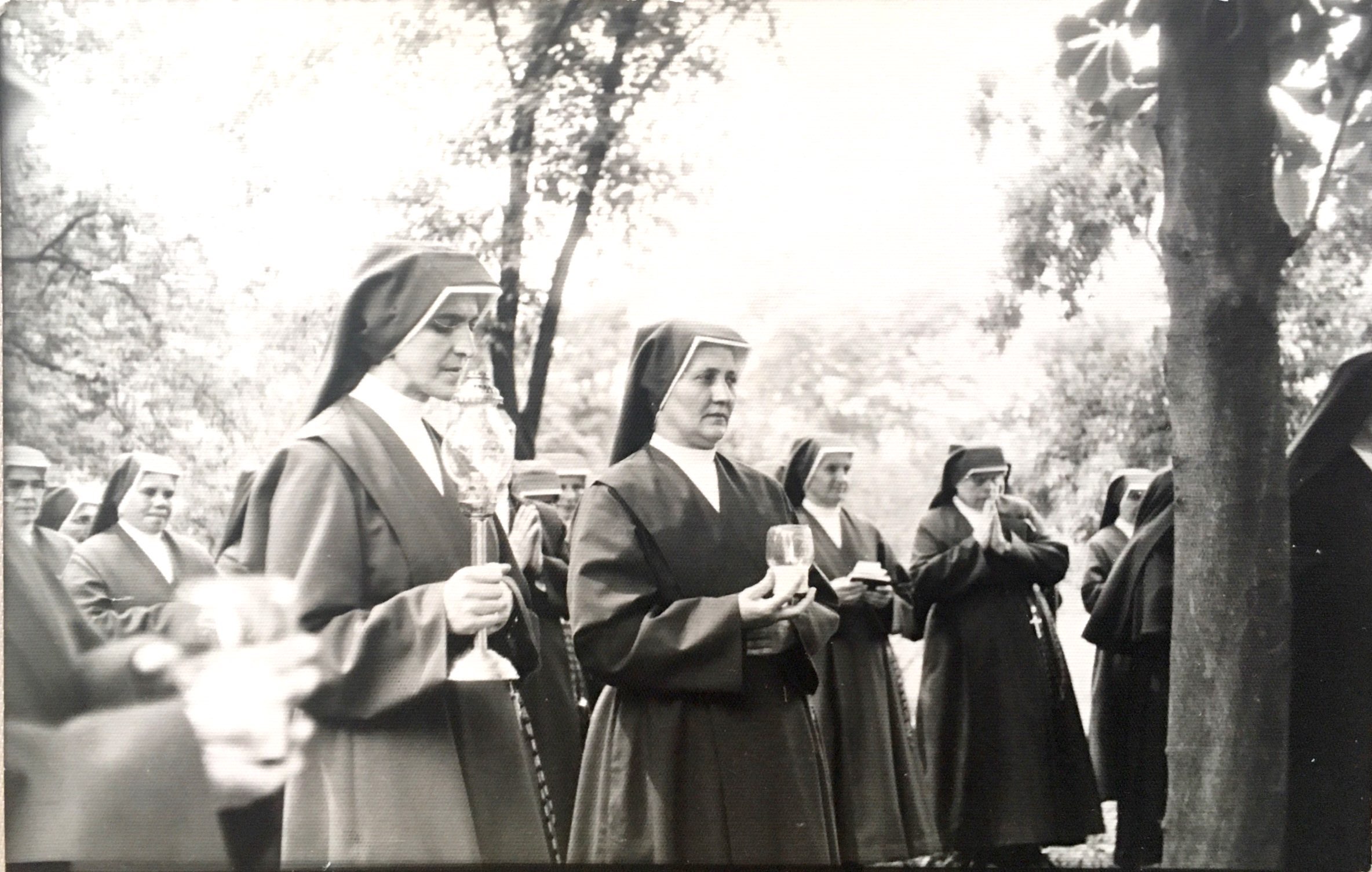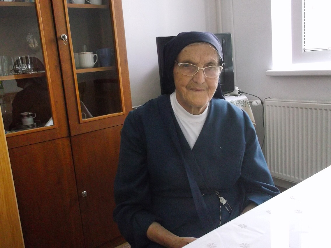 Mária Vrbová, by religious name sister Nonnata, was born on the 7th of January 1930 in Krásny Dub, (part of the village Horná Súča) near the Slovak-Moravian borders. She was raised by her grandparents, as her parents lived in the Protectorate of Bohemia and Moravia after the separation, where they also died. She attended elementary school in Horná Súča and got her higher education later in Žilina and Trnava. At 17 years old she made the decision to become a nun. At 18 years old she applied for entering the community of The Company of the Daughters of Charity of Saint Vincent de Paul. Less than a year later she began attending their seminar. After entering the community she moved to Martin to finish her nursing school and to work as a nurse in the local hospital. After finishing the seminar, she was sent to Bratislava to work in the hospital in the operating room as a nurse. When the whispers began of the orders possibly being dissolved and the nuns being removed from hospitals, the community moved her into a psychiatric hospital in Pezinok, where the removal was not to be a threat for a while. She remained there until 1962, when she was deported along with the other nuns into Kláštor pod Znievom. There she worked in agriculture on local fields, where she developed a strong asthma. After a while the nuns went under the wings of the Catholic Charity. Many were moved into Bohemia to work in homes for the eldery. Sister Nonnata was not able to go due to her health issues, so she stayed in the Slovak land. She was moved into a charity home in Močenok, where she was doing administrative work until 1992. Then she was once again able to work in healthcare, and she did so in Rajec. Today she is spending her retirement years in Belušské Slatiny in the community of the Daughters of Charity of Saint Vincent de Paul.