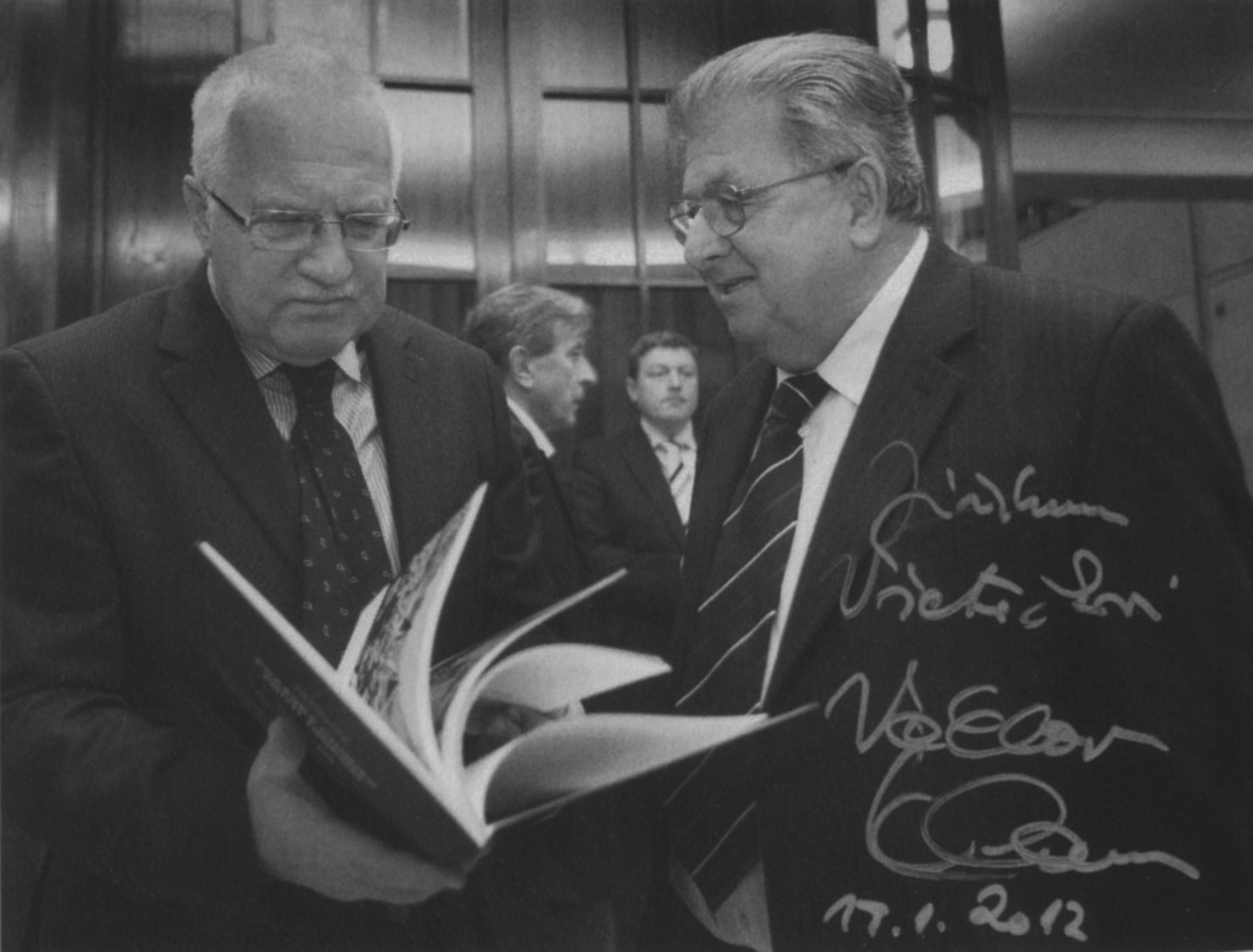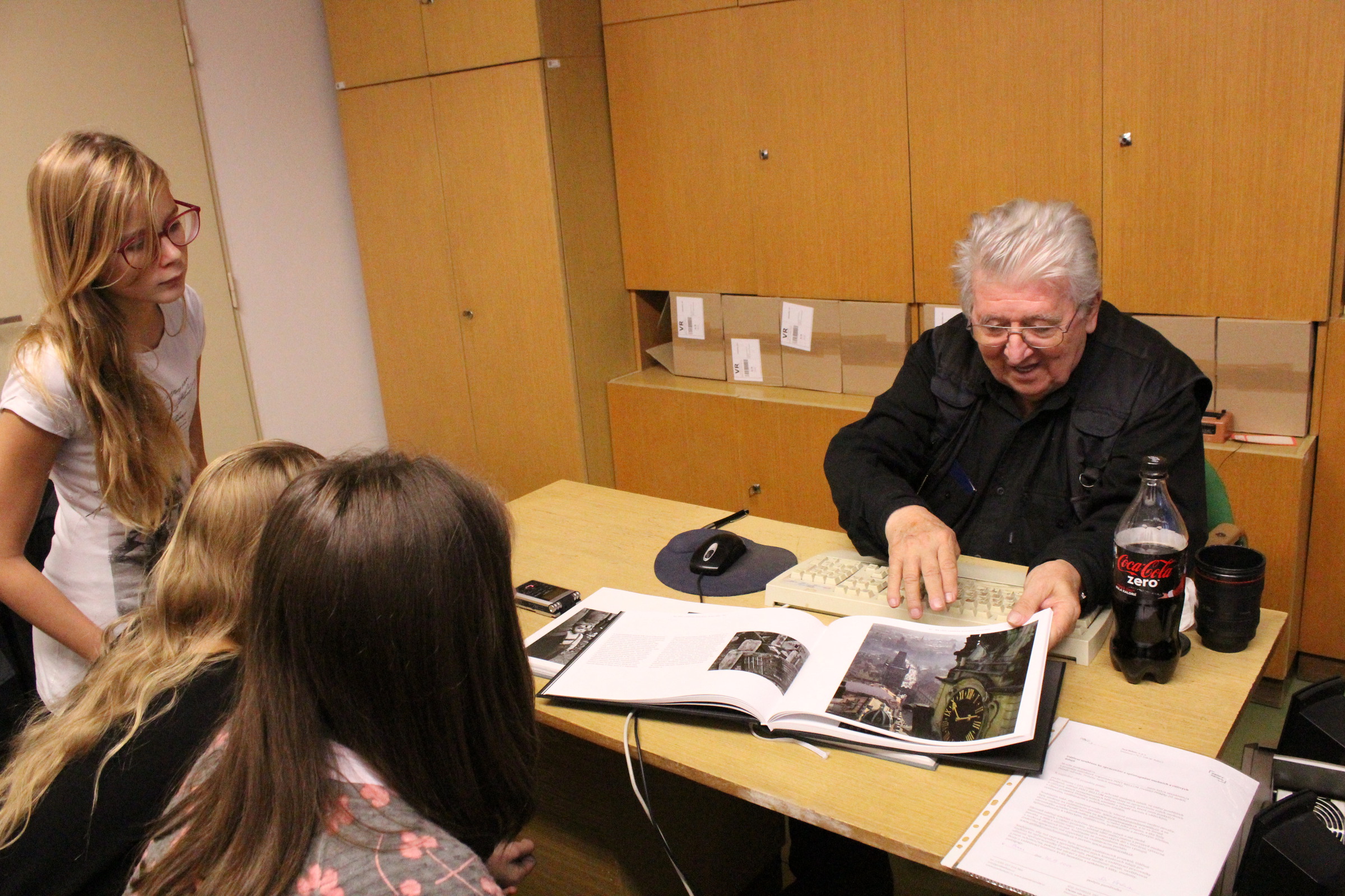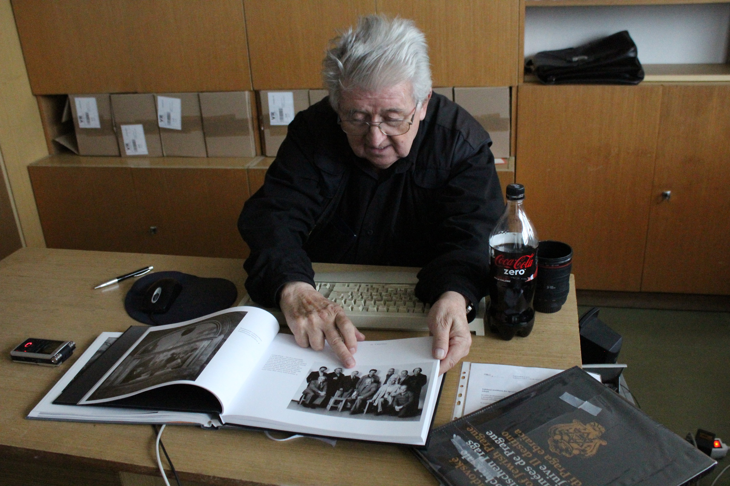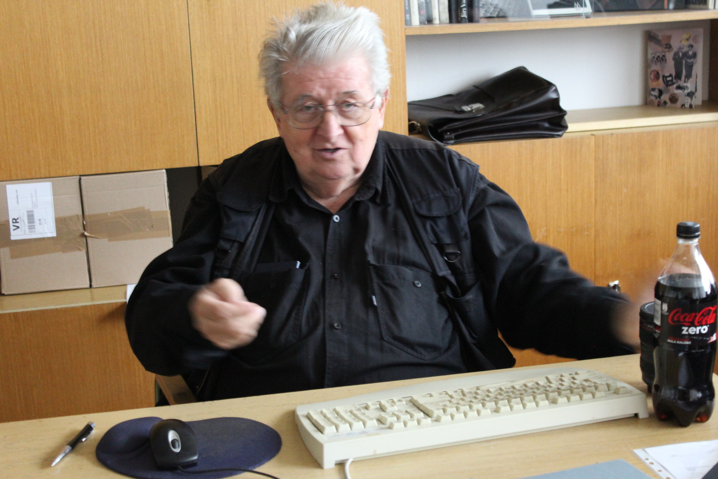 • (Po vydání knihy Komenský: Labyrint světa a ráj srdce v SRN v roce 1972) „mi před Vánoci poslali dva výtisky. Jeden byl pro mě a jeden pro profesora Patočku. Měli poslat ještě další výtisky, ale ty jsem nedostal. Proto jsem jim psal, že nic nepřišlo, aby poslali další. Že se někde ztratily. No tak mi poslali další. Opět se ztratily. A místo toho mě pozvali do ,kachlíkárny‘ na Letnou (pozn. úřadovna StB), kde je měli. A začalo velké vyslýchání. Chtěli mi dokázat, že to byla protistátní literatura. A já jim to vyvracel. Kniha je psána staročeštinou a staroněmčinou. Korekturu dělali profesor Patočka a profesor Schaller, jako odborníci na Komenského a filologii. To je nezajímalo, protože si to vysvětlovali po svém. Třeba na fotografii, kde je jako vyjádřeno v textu, že je krásné někam jít a nedojít. Tak k tomuto nádhernému textu jsem dal fotku zasněžené Letenské pláně. Tam jsem si sám udělal stopy a dopředu, aby se tam nedalo jít, tak tam byl ostnatý drát. Jejich interpretace byla: ,To je naše hranice a emigranti utíkají přes hranice.‘ Takto jsme procházeli knihu, ale někde jim to nebylo možné vysvětlit. ,Jeden dělá to a jiný jiné. Ale všickni, věci neužitečné a na tak slavnou vyvýšenost svou nepřipadající.‘ U tohoto textu je fotka dvou mužů v průvodu k 1. máji, kteří hrají šachy a zároveň nesou prapory. Byla to hrozná situace. Šlo to ještě do dalších krajností: ,Tady je válka a to jsou sovětští vojáci, to mluvíte o našich přátelích?‘ A já říkám: ,To jsou vojáci s výrazem. A jak víte, že jsou to ruští vojáci? Já to nepoznám.‘ ,To se pozná přece, to se pozná podle helmy.‘ ,Anebo tady, a to budeme psát do protokolu, že to jsou hořící Vinohrady.‘ A já jsem to vysvětloval: ,Ano, hořící Vinohrady. Výřez je udělán tak, aby nebylo možné identifikovat ani dobu, ani místo vzniku. A je to o tom, že ve válce je to hrozný, že tam mnoho lidí zahyne. Vám se to líbí, soudruzi?‘ Výslech trval osm hodin a jemně mi naznačovali, že tam můžou dát papír, který měl červený pruh, a to znamenalo vazbu. Naštěstí mě do vazby nedali. Ale některý věci jsem jim neukecal. Nakonec se kniha v zahraničí prodávala. Mně zakázali si s profesorem Schallerem vůbec dopisovat. Stačil jsem mu jen napsat, že jsem na fakultě a že si s ním už nesmím dopisovat. A on odepsal, že má také potíže, že má hlídanou korespondenci.“